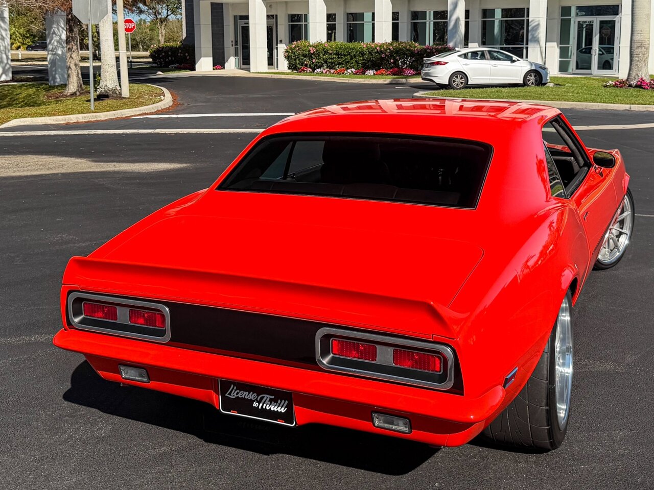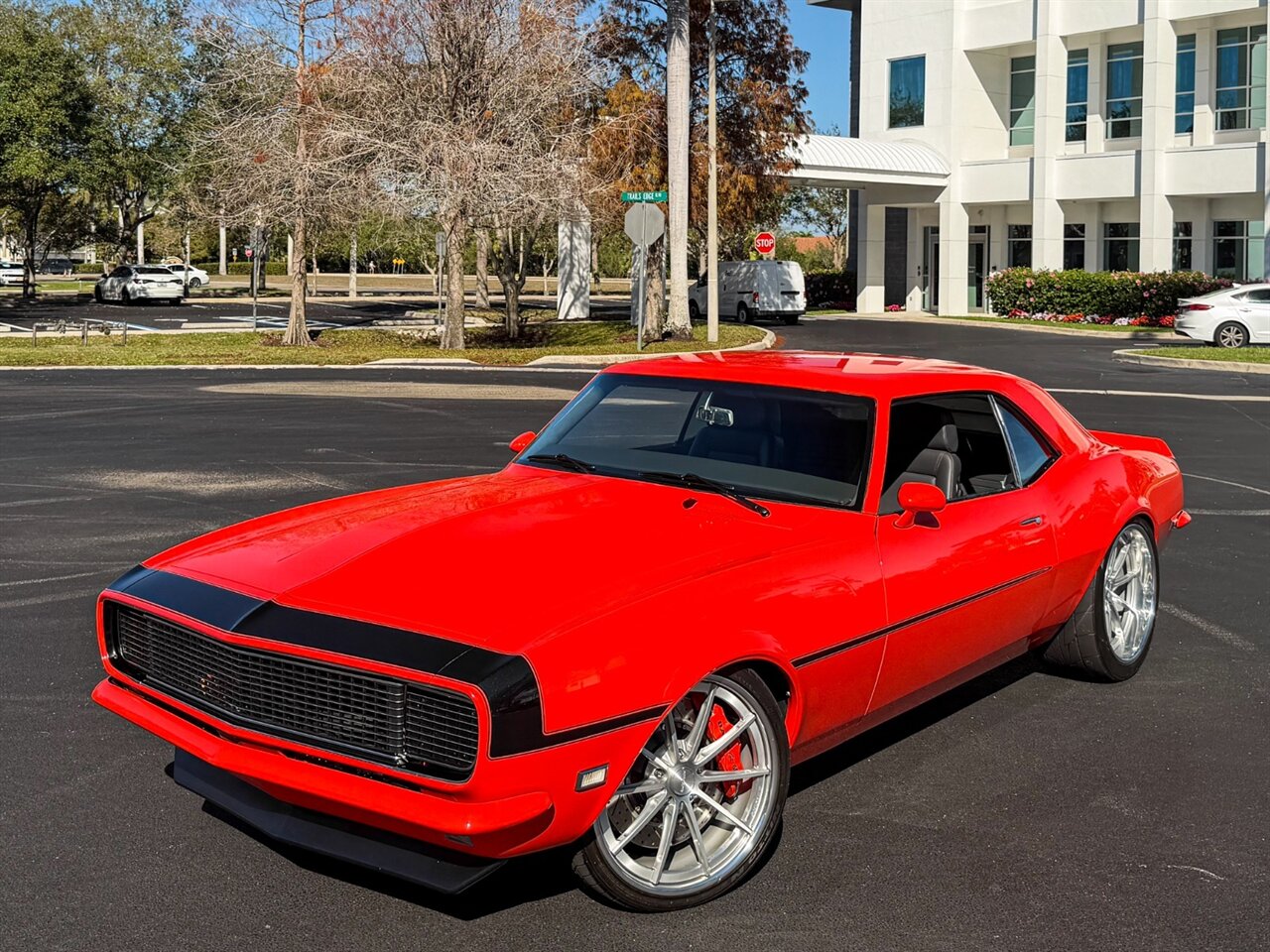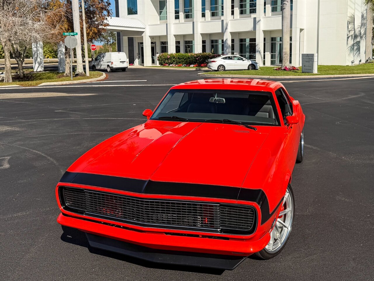 1968 Chevrolet Camaro Resto-Mod. High Gloss Orange Exterior with Grey Interior. Features Include: 6.2-liter LT4 Supercharged V8 Engine, Producing 650 Horsepower and 650 lb-ft of Torque, Tremac 6060 6-Speed, 20" Forgeline Wheels in a Polished Finish with Backspacing Designed Just For the Build, Nitto Tires, 6-Piston Baer Breaks up Front, Inboard Baer Brakes in Rear Powder Coated to Match Front Brakes, Electric Maneuvering Front Hood, Heidts Front Suspension, Heidts Rear IRS Suspension and Subframe Connectors, Carbon Fiber Front Inner Fenders, Shaved Drip Rails, Shaved Door Handles, Shaved Front and Rear Windshield Trim with Steel Added to Fit Factory Glass, Custom Paint Match Sport Mirrors, Elevated Fuel Tank, Body Colored Front and Rear Bumpers Cut, Electric Hideaway Headlights, Camaro Factory Style Cowl Induction Hood, SS Style Hockey Stripe in Chevrolet Carbon Flash Metallic, Camaro Factory Style Front and Rear Spoilers, LED Headlights, LED Sequential Taillights With Billet Housings, Suspension Powder Coated with Fixed Parts in Grey and Moving Suspension Parts in Silver, Air Conditioning, Battery Cutoff Switch, Remote Control Central Door Locking and Trunk Release, Separate Manual Pulls Hidden that can Open Hood and Trunk, Lithium Gel Style Battery Recently Replaced, Custom Grey Interior with Recaro Seats Made For the Car w/ Orange Stitching, Back up Camera, AM/FM Stereo Head Unit, Center Console Storage, . Priced at only $249,995.00. Financing and leasing available. We ship worldwide. We pay top dollar for lightly used sports cars, Call or text our Product Specialist today at 239-522-2262 or email us at sales@gcmworks.com. Fees and Taxes: $1199.00 Doc Fee on all Purchases. Out of state buyers are responsible for all state, county, city taxes and fees, as well as title/registration fees in the state that the vehicle will be registered.