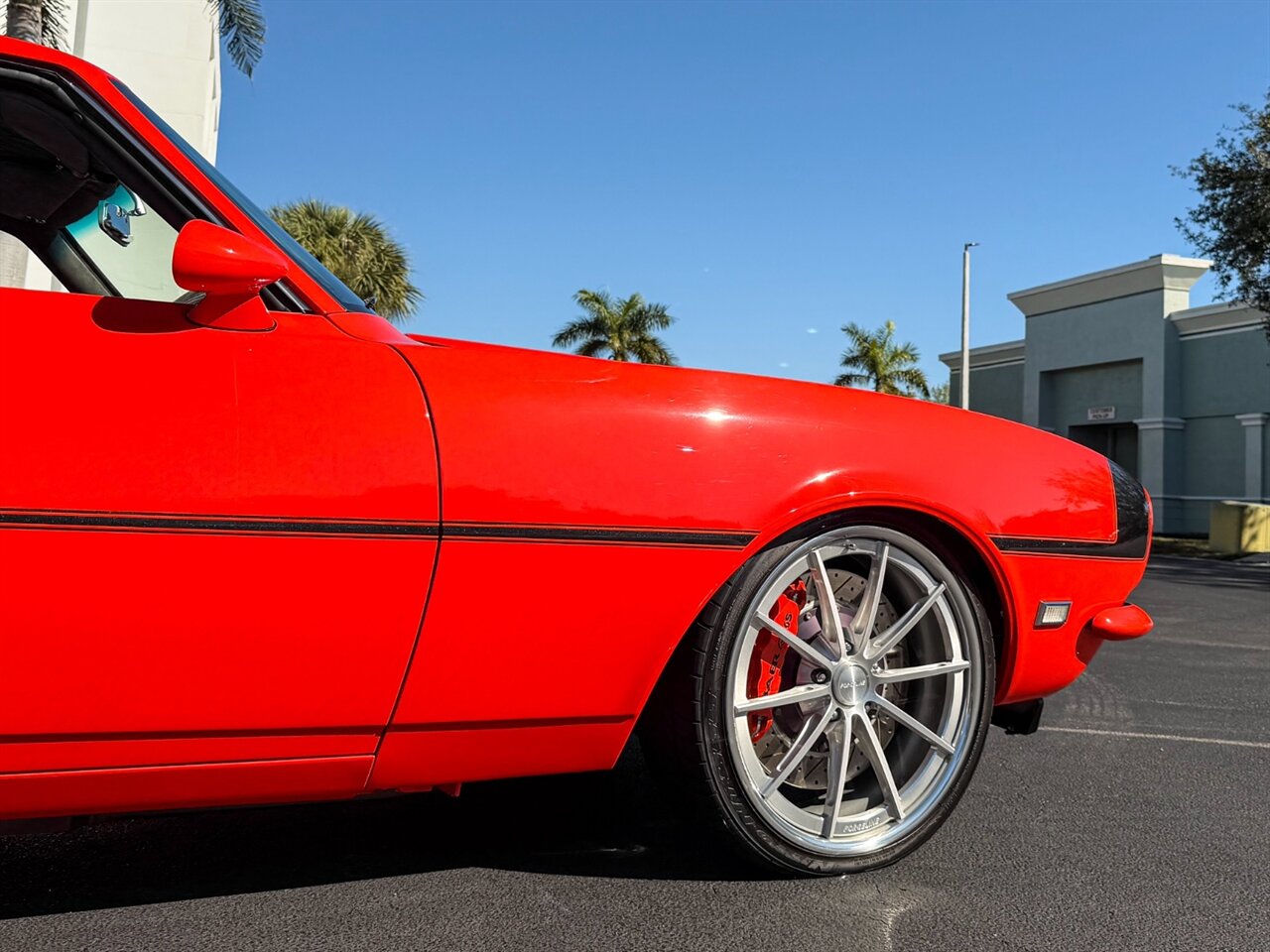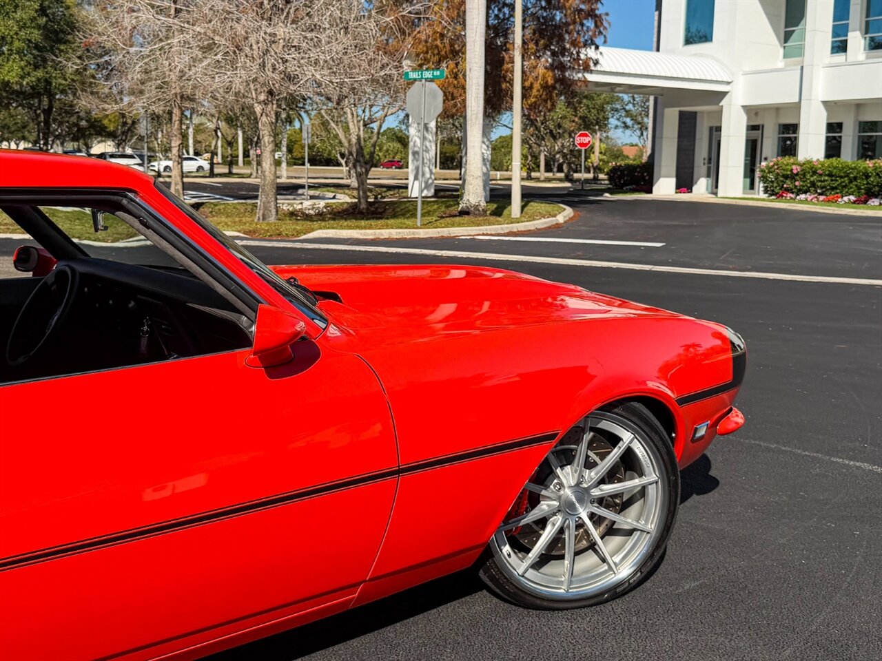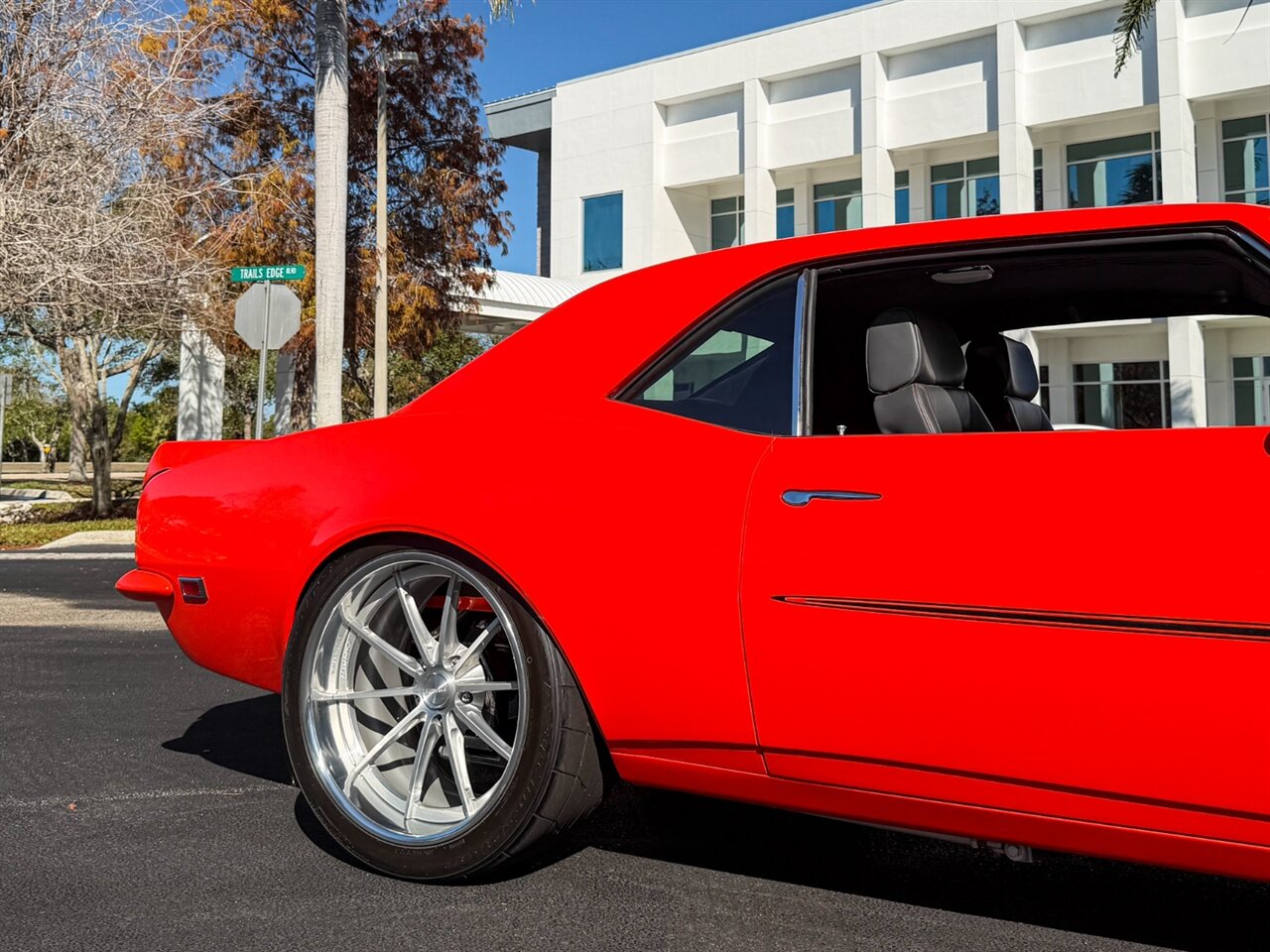 1968 Chevrolet Camaro Resto-Mod. High Gloss Orange Exterior with Grey Interior. Features Include: 6.2-liter LT4 Supercharged V8 Engine, Producing 650 Horsepower and 650 lb-ft of Torque, Tremac 6060 6-Speed, 20" Forgeline Wheels in a Polished Finish with Backspacing Designed Just For the Build, Nitto Tires, 6-Piston Baer Breaks up Front, Inboard Baer Brakes in Rear Powder Coated to Match Front Brakes, Electric Maneuvering Front Hood, Heidts Front Suspension, Heidts Rear IRS Suspension and Subframe Connectors, Carbon Fiber Front Inner Fenders, Shaved Drip Rails, Shaved Door Handles, Shaved Front and Rear Windshield Trim with Steel Added to Fit Factory Glass, Custom Paint Match Sport Mirrors, Elevated Fuel Tank, Body Colored Front and Rear Bumpers Cut, Electric Hideaway Headlights, Camaro Factory Style Cowl Induction Hood, SS Style Hockey Stripe in Chevrolet Carbon Flash Metallic, Camaro Factory Style Front and Rear Spoilers, LED Headlights, LED Sequential Taillights With Billet Housings, Suspension Powder Coated with Fixed Parts in Grey and Moving Suspension Parts in Silver, Air Conditioning, Battery Cutoff Switch, Remote Control Central Door Locking and Trunk Release, Separate Manual Pulls Hidden that can Open Hood and Trunk, Lithium Gel Style Battery Recently Replaced, Custom Grey Interior with Recaro Seats Made For the Car w/ Orange Stitching, Back up Camera, AM/FM Stereo Head Unit, Center Console Storage, . Priced at only $249,995.00. Financing and leasing available. We ship worldwide. We pay top dollar for lightly used sports cars, Call or text our Product Specialist today at 239-522-2262 or email us at sales@gcmworks.com. Fees and Taxes: $1199.00 Doc Fee on all Purchases. Out of state buyers are responsible for all state, county, city taxes and fees, as well as title/registration fees in the state that the vehicle will be registered.