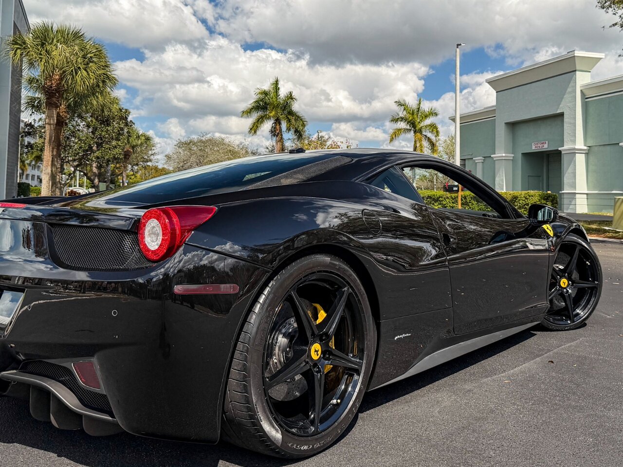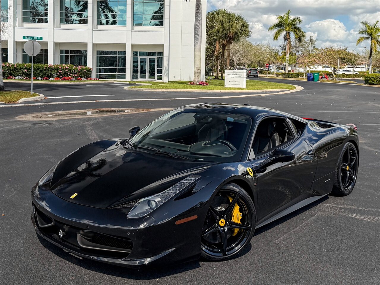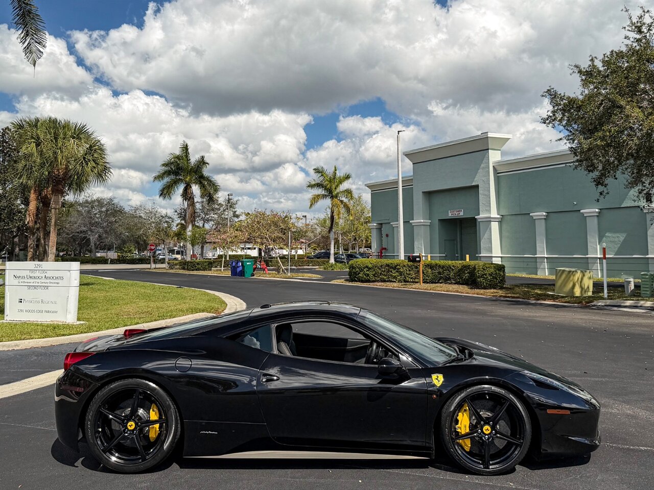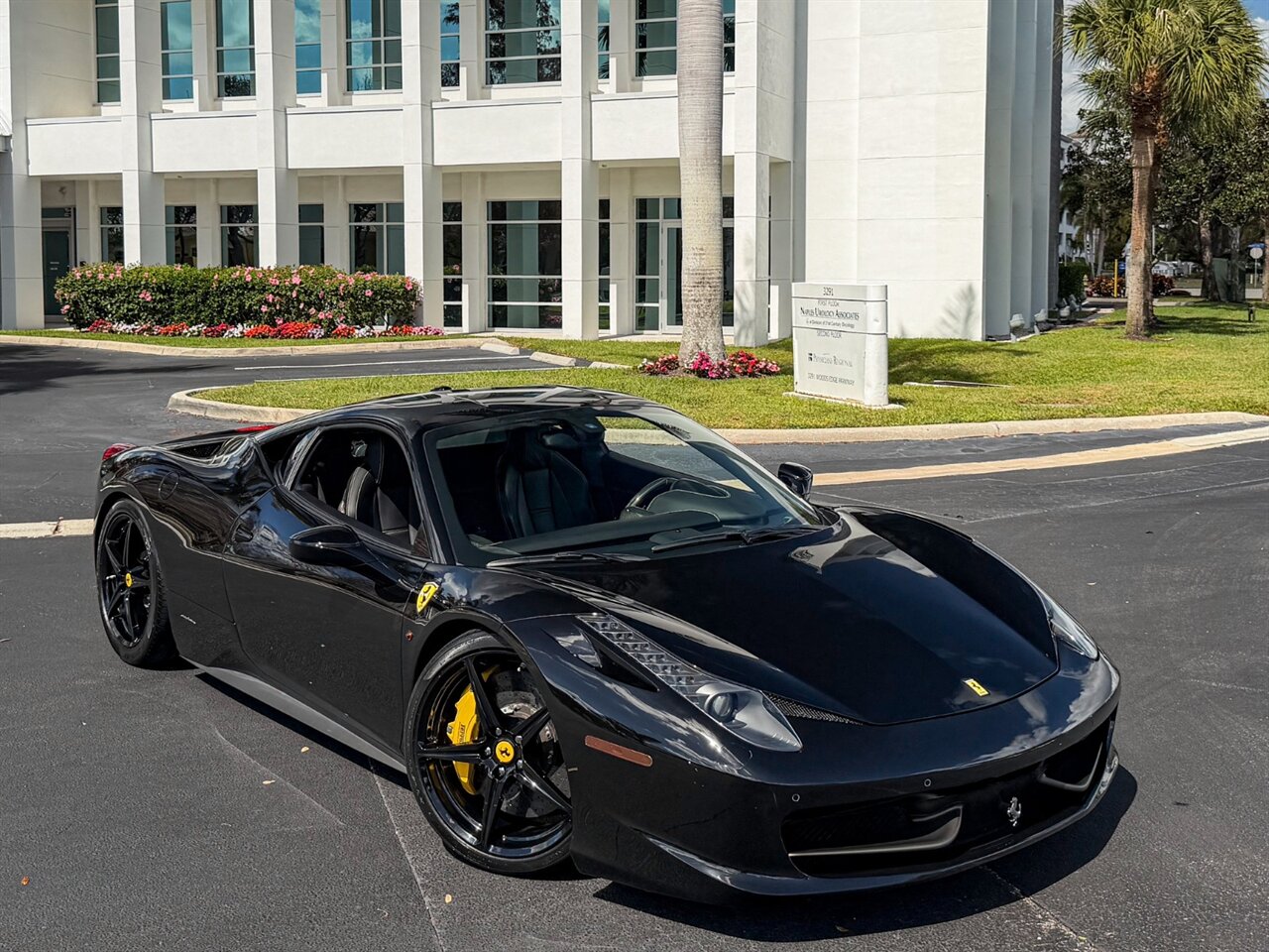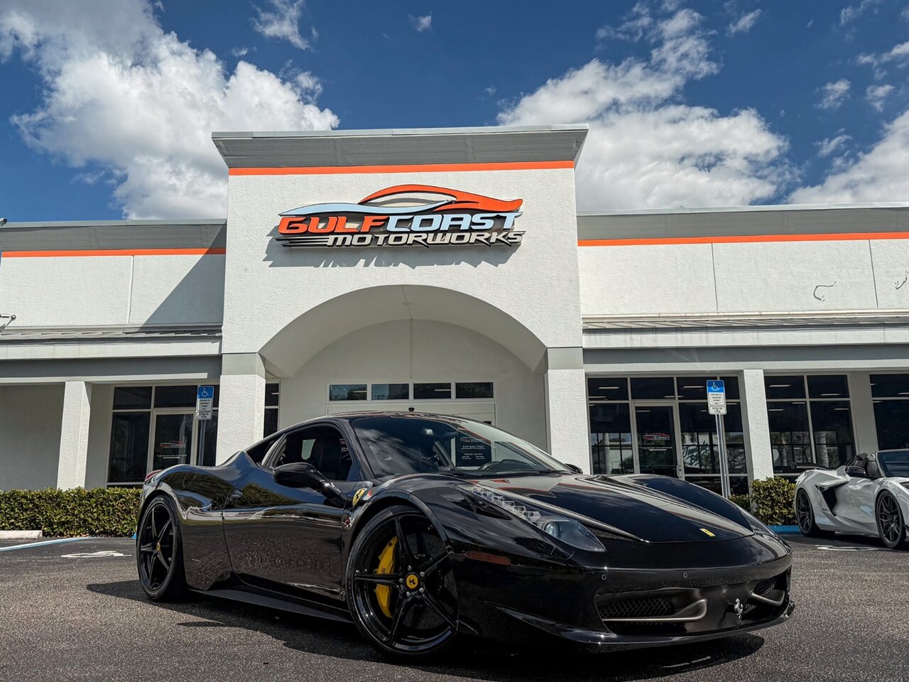 2010 Ferrari 458 Italia. Nero Exterior with Nero Leather Interior. Features Include: 560 Horsepower NA 4.5L V8 Engine, Seven-Speed F1 Dual Clutch Automatic Transmission, Electronic Limited Slip Differential, Magnetic Suspension Damping, Carbon Ceramic Brakes, Yellow Brake Calipers, 20" Staggered Five-Spoke Wheels in Black, Front Lift, Sports Exhaust, H&R Lowering Springs, Transparent Engine Bonnet, 'Scuderia Ferrari' Shields, Front and Rear Parking Sensors, Projector Beam AFS Headlights, LED Tail Lights, LED DRLs, Power Folding Outside Mirrors, LED/Carbon Fiber Steering Wheel, Carbon Fiber Shift Paddles, Carbon Fiber Interior Trim, Yellow Accent Stitching, Yellow Rev Counter, Heated Power Adjust Seats, Carbon Fiber Door Trim, Keyless Access, Push Button Start, Selectable Drive Modes, Back Up Camera, Dual Zone Automatic Climate Control, Smartphone Integration, Bluetooth, Navigation. Priced at only $259,995. Financing and leasing available. We ship worldwide. We pay top dollar for lightly used sports cars, Call or text our Product Specialist today at 239-522-2262 or email us at sales@gcmworks.com. Fees and Taxes: $1199.00 Doc Fee on all Purchases. Out of state buyers are responsible for all state, county, city taxes and fees, as well as title/registration fees in the state that the vehicle will be registered.