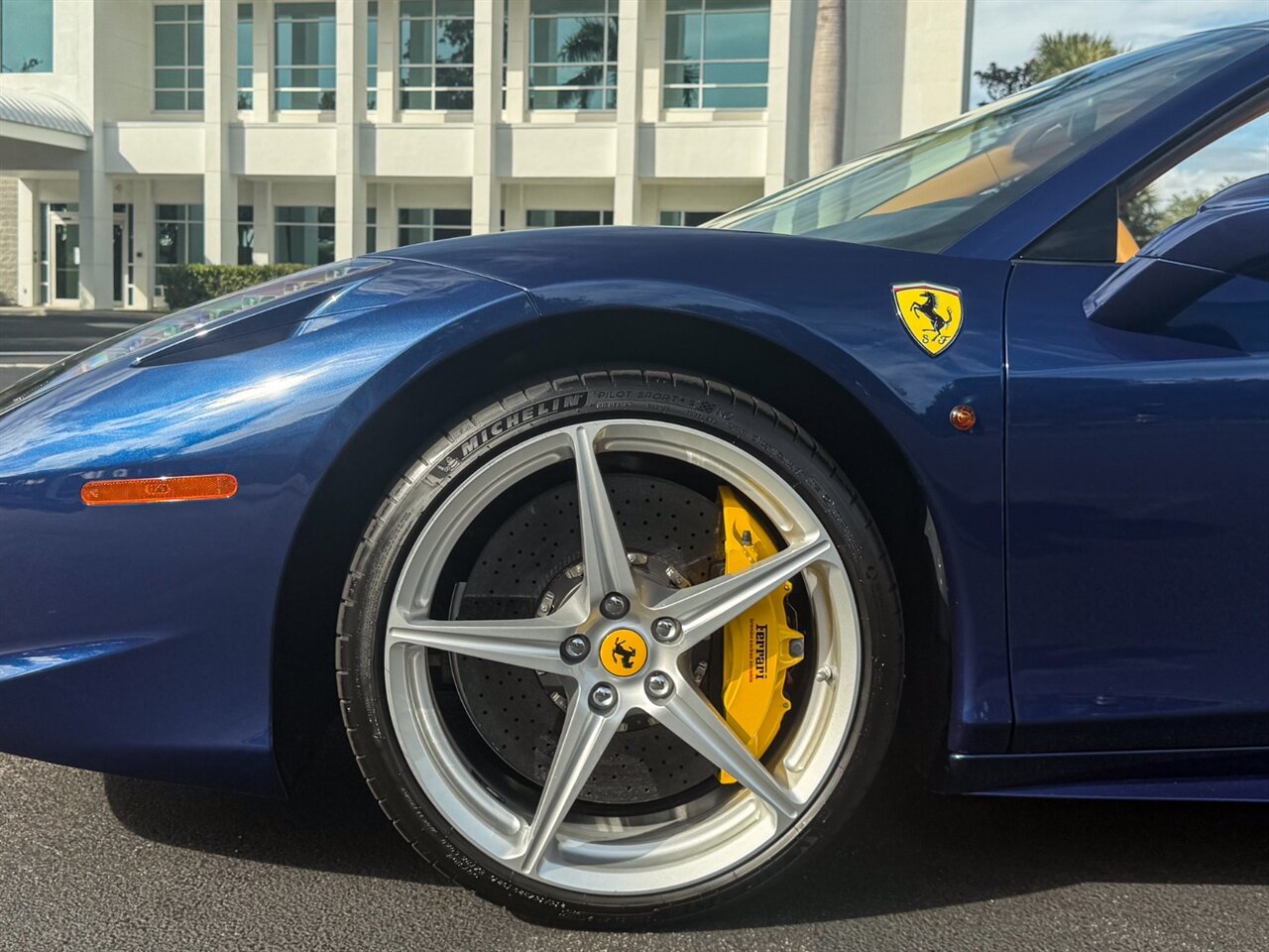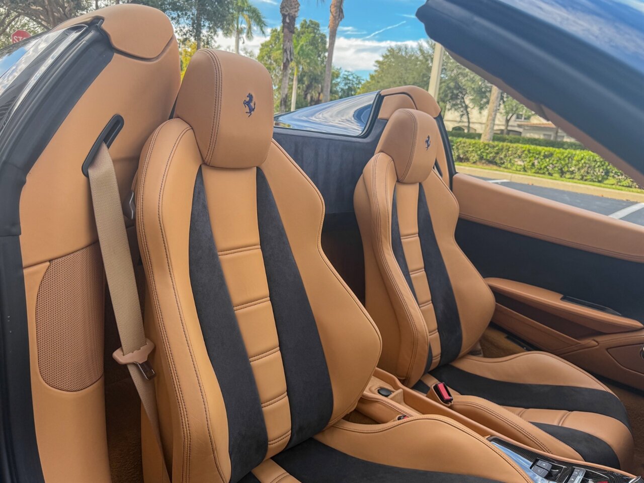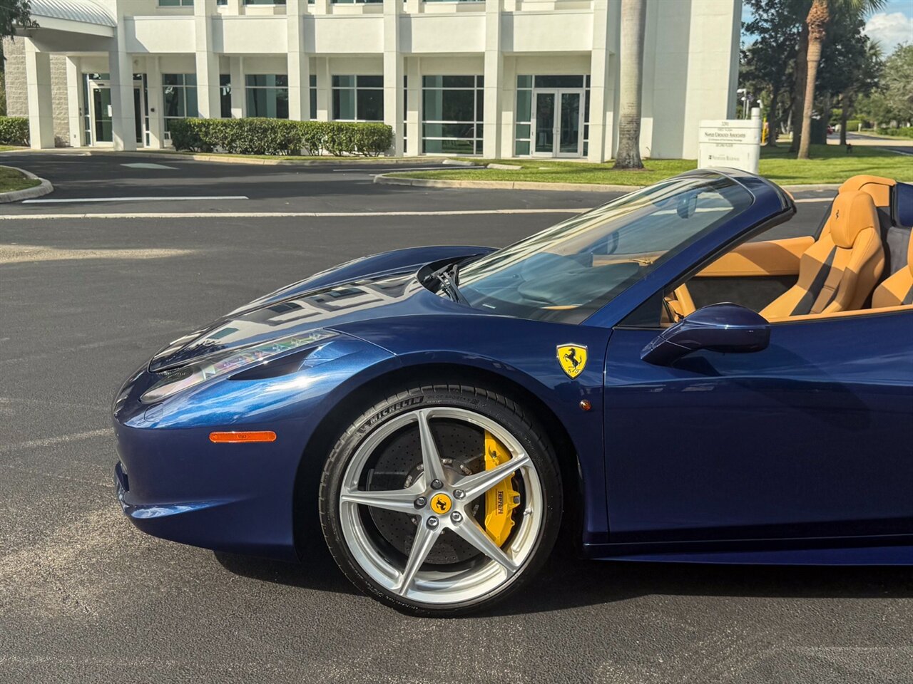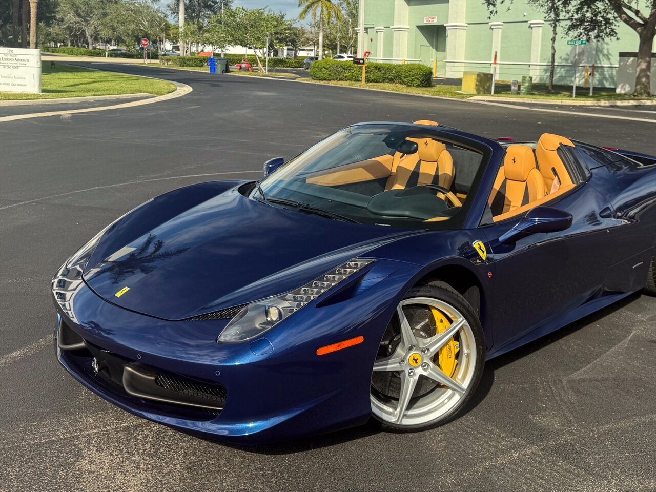 2014 Ferrari 458 Spider. Blu Tour De France Metallic Exterior with Beige Leather Interior w/ Blue Alcantara Inserts Interior. Features Include: 562 Horsepower 4.5L V8 Engine, 7 Speed Dual Clutch Transmission, 20" Forged Diamond Cut Sport Wheels, Yellow Brake Calipers, Carbon Ceramic Brakes, Scuderia Shields, Front Suspension Lifter, Powering Folding Mirrors, Parking Camera, Carbon Fiber Dash Inserts, Carbon Fiber Steering Wheel w/ L.E.D. Shift Lights, Carbon Fiber Shift Paddles, Carbon Fiber Gauge Surround, Carbon Fiber Central Bridge, Carbon Fiber B Pillars, Tan Leather Headliner, Full Electric Seats, Leather and Alcantara Interior, Horse Stitched On Headrests, Yellow Deviated Stitching, Yellow Leather Seat Piping, Full Optional Mirrors with Homelink, Satellite Radio, Navigation, Bluetooth. Priced at only $349,995.00. Financing available. We ship worldwide. We pay top dollar for lightly used sports cars! Call or text our Product Specialists today at 239-522-2262 or email us at sales@gcmworks.com.
