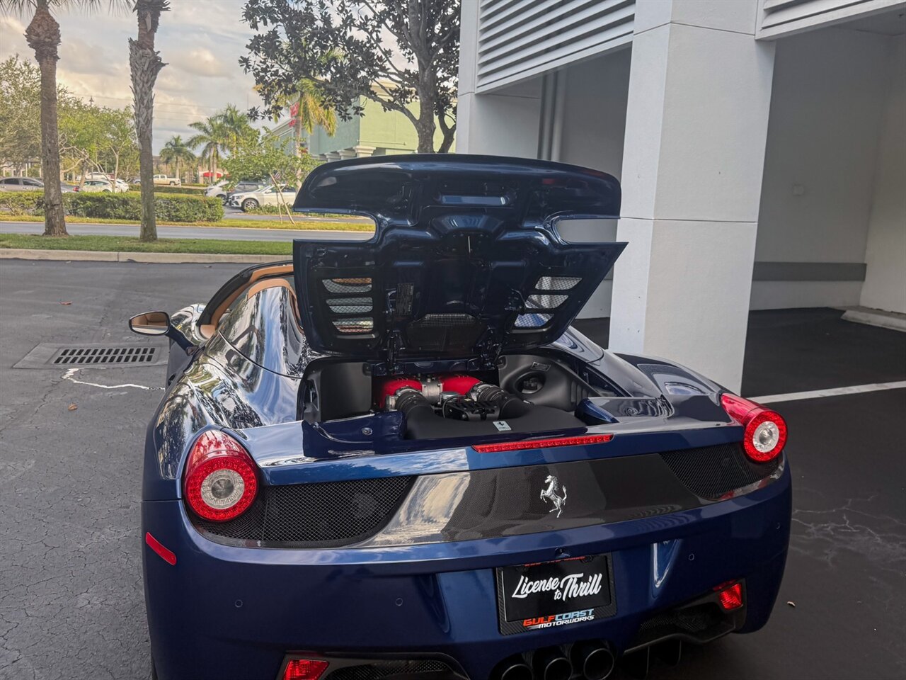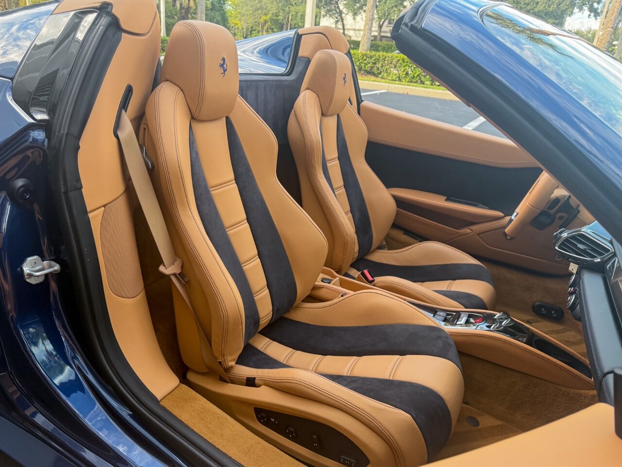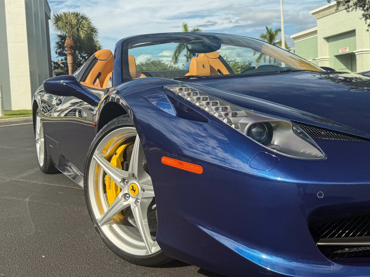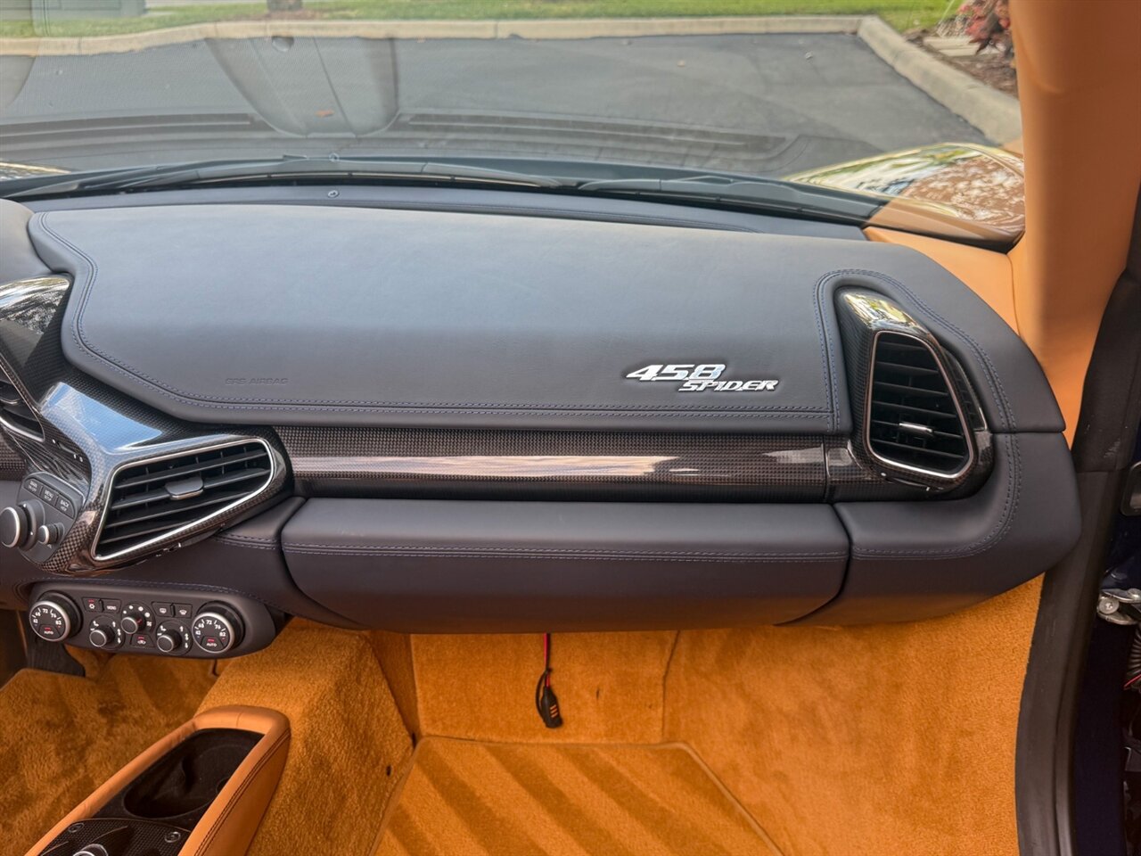 2014 Ferrari 458 Spider. Blu Tour De France Metallic Exterior with Beige Leather Interior w/ Blue Alcantara Inserts Interior. Features Include: 562 Horsepower 4.5L V8 Engine, 7 Speed Dual Clutch Transmission, 20" Forged Diamond Cut Sport Wheels, Yellow Brake Calipers, Carbon Ceramic Brakes, Scuderia Shields, Front Suspension Lifter, Powering Folding Mirrors, Parking Camera, Carbon Fiber Dash Inserts, Carbon Fiber Steering Wheel w/ L.E.D. Shift Lights, Carbon Fiber Shift Paddles, Carbon Fiber Gauge Surround, Carbon Fiber Central Bridge, Carbon Fiber B Pillars, Tan Leather Headliner, Full Electric Seats, Leather and Alcantara Interior, Horse Stitched On Headrests, Yellow Deviated Stitching, Yellow Leather Seat Piping, Full Optional Mirrors with Homelink, Satellite Radio, Navigation, Bluetooth. Priced at only $349,995.00. Financing available. We ship worldwide. We pay top dollar for lightly used sports cars! Call or text our Product Specialists today at 239-522-2262 or email us at sales@gcmworks.com.