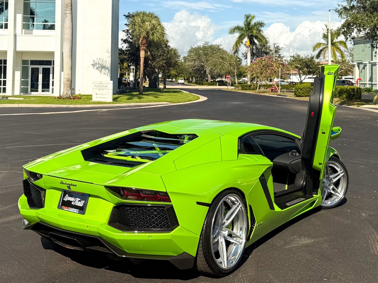 2014 Lamborghini Aventador LP700-4. Verde Ithaca Exterior with Nero Ade Leather Interior. Features Include: 691 Horsepower NA 6.5L V12 Engine, Seven-Speed ISR Automatic Transmission, 21" Front & 22" Anrky Wheels in a Brushed Finish, Carbon Ceramic Brakes, Verde Ithaca Brake Calipers, Front Lift System, Carbon Fiber Bumper Inserts, Transparent Engine Bonnet, Carbon Fiber Engine Cover Pieces, Verde Ithaca Painted Struts, IPE Test Pipes, Top Speed Pro Exhaust, Tuned by DME, Novitec Suspension, Front Nose PPF, Full Ceramic Coating, Carbon Fiber Diffuser, Projector Beam HID Headlights, LED DRLs, LED Tail Lights, Power-Folding Outside Mirrors, Keyless Access & Start, Carbon Fiber & Leather Wrapped Steering Wheel, Carbon Fiber Interior Trim, Verde Ithaca Stitching, Shift Paddles, Digital Instrument Cluster, Push Button Start, Selectable Drive Modes, Heated Fully Electric Seats, Lamborghini Crest Embroided on Headrests, Verde Ithaca Contrast Stitching Throughout Interior, Smartphone Integration, Bluetooth, Navigation, HomeLink. Priced at only $329,995.00. Financing and leasing available. We ship worldwide. We pay top dollar for lightly used sports cars, Call or text our Product Specialist today at 239-522-2262 or email at sales@gcmworks.com. Fees and Taxes: $1199.00 Doc Fee on all Purchases. Out of state buyers are responsible for all state, county, city taxes and fees, as well as title/registration fees in the state that the vehicle will be registered.