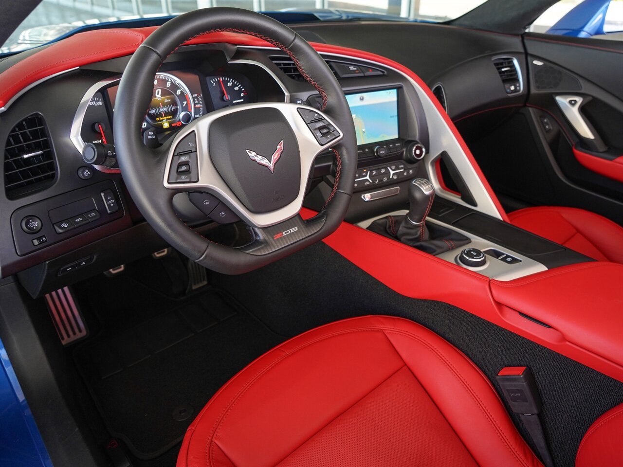 Laguna Blue Tintcoat Exterior with Adrenaline Red Leather Interior. Only 6,710 Miles! 3LZ Preferred Equipment, Z07 Performance Package, Z06 Black Aluminum Wheels, Carbon Flash Painted Ground Effects.