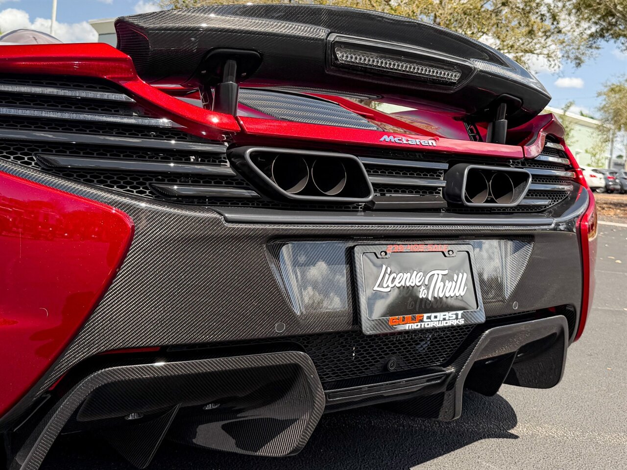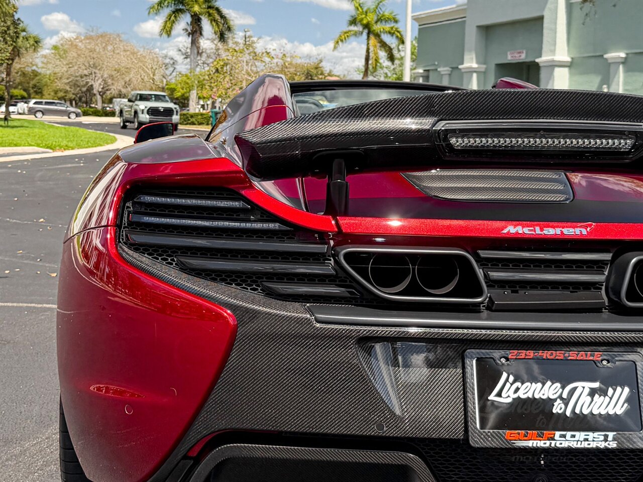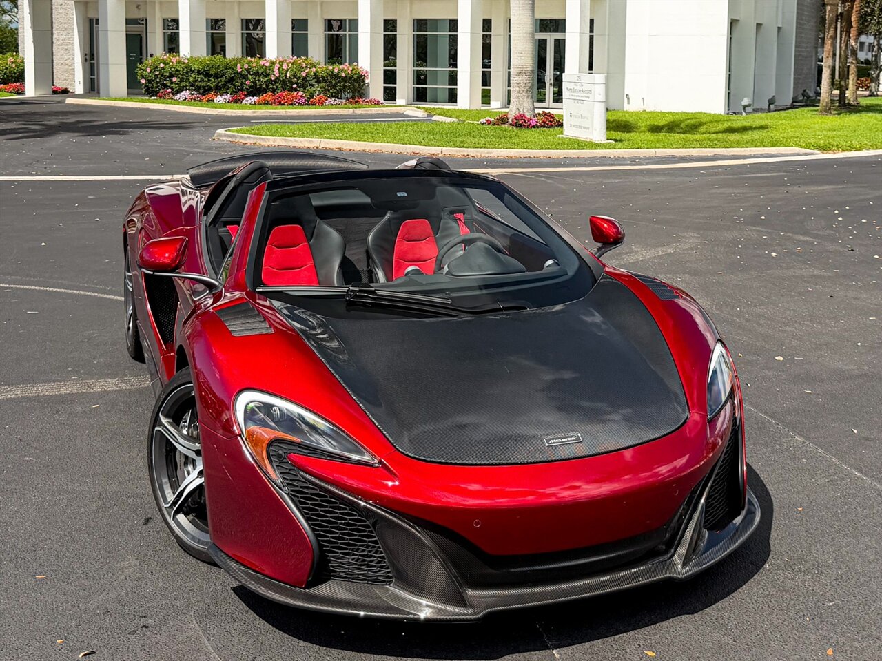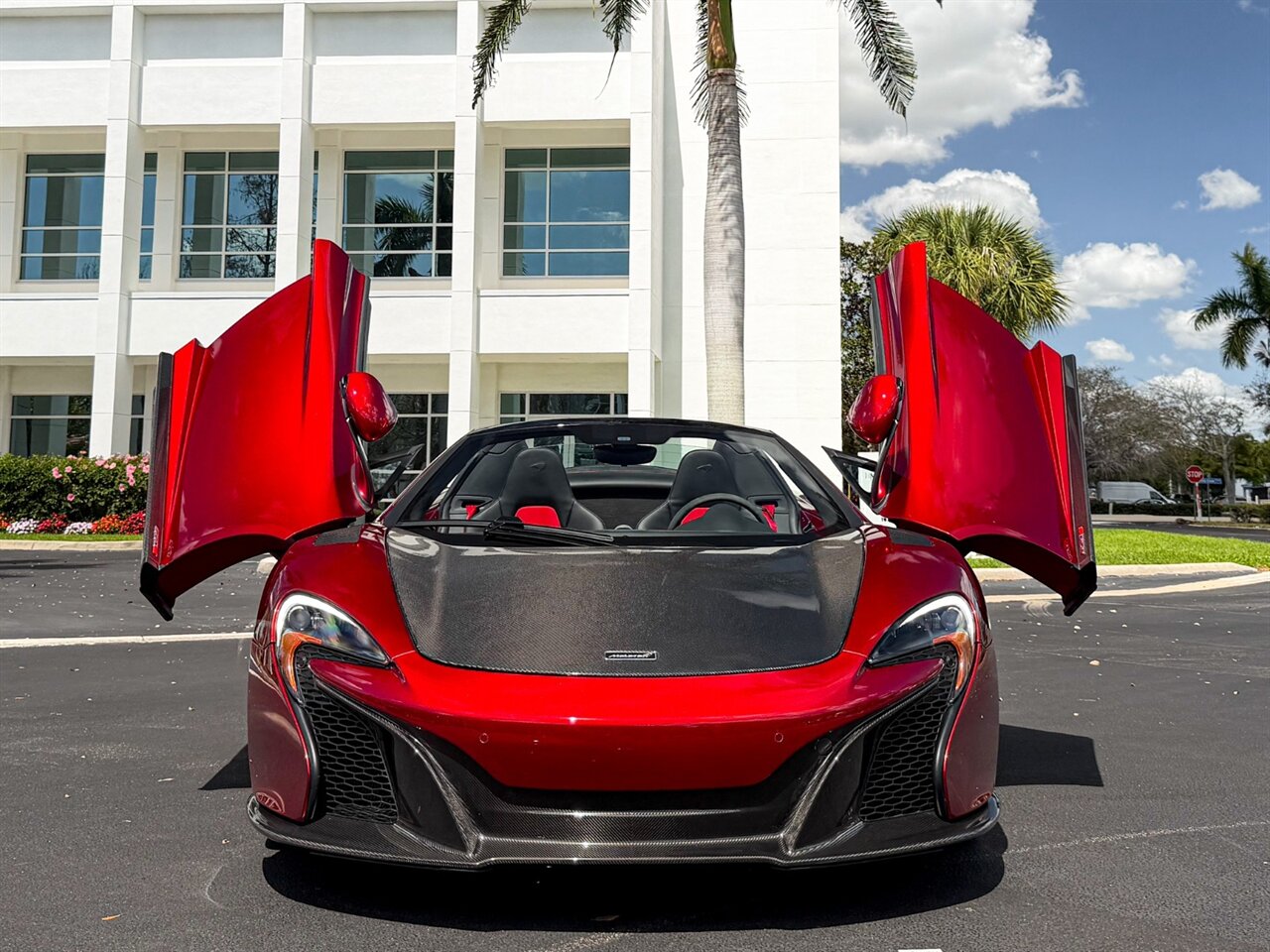 2015 McLaren 650S Spider. Volcano Red Exterior with Carbon Black Leather & Red Alcantara Interior. Features Include: 641 Horsepower Twin Turbo 3.8L V8 Engine, Seven-Speed Dual Clutch Seamless Shift Automatic Transmission, McLaren ProActive Chassis Control, Carbon Ceramic Brakes, Brake Calipers in Silver, 19" Front & 20" Rear Five-Split-Spoke Forged Lightweight Wheels, Carbon Fiber Active McLaren Airbrake Rear Spoiler, Carbon Fiber Bonnet, Carbon Fiber Fender Vents, Carbon Fiber Rear Bumper/Diffuser, Exhaust, Downpipes, Carbon Fiber Front Air Dam, Power Folding Convertible Hard Top, Full LED Headlamps, LED Tail Lights, LED DRLs, Power Folding Side Mirrors, Single-Hinge Mounted Dihedral Doors, Black Alcantara Wrapped Steering Wheel, Shift Paddles, Selectable Drive Modes, Selectable Suspension Settings, Launch Control, Power Adjust Bucket Seats w/Memory, Red Seatbelts, Red Alcantara Seat Centers, Red Accent Stitching, Alcantara Dashboard w/ Leather Trim, Carbon Fiber Interior Components, Carbon Fiber Door Blades, Touchscreen Infotainment with Upgraded Meridian Surround Sound System, SiriusXM, Navigation, Smartphone Integration, Bluetooth, Dual Zone Automatic Climate Control with Dedicated Controls for Passenger. Priced at only $149,995. Financing available. We ship worldwide. We pay top dollar for lightly used sports cars! Call or text our Product Specialists today at 239-522-2262 or email us at sales@gcmworks.com. Fees and Taxes: $1199.00 Doc Fee on all Purchases. Out of state buyers are responsible for all state, county, city taxes and fees, as well as title/registration fees in the state that the vehicle will be registered.