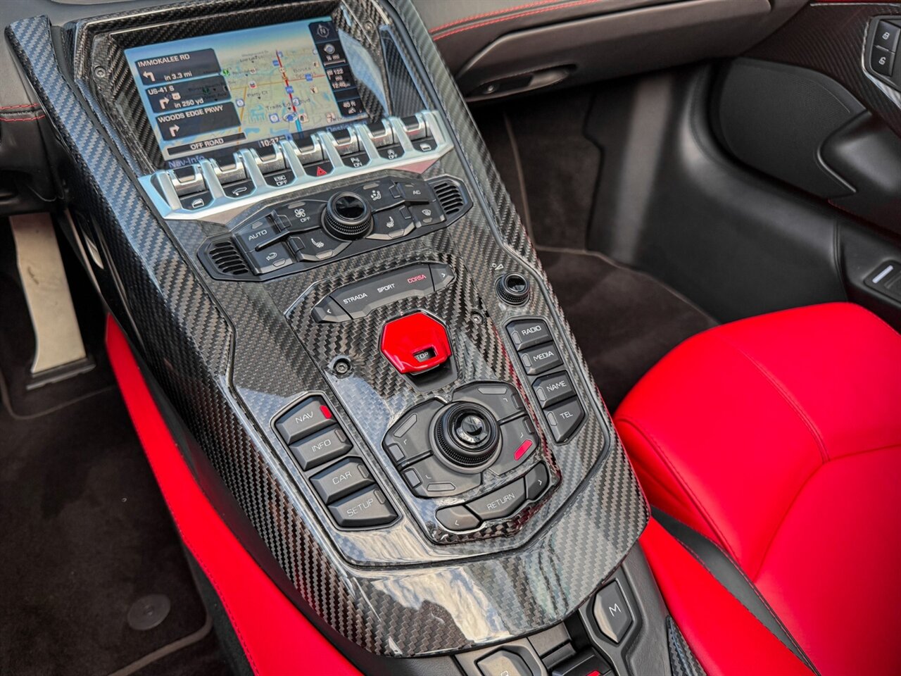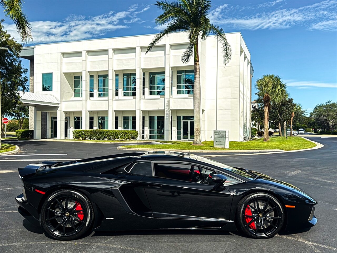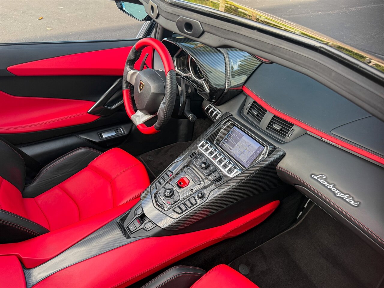 2016 Lamborghini Aventador LP700-4 Roadster. Nero Aldebaran Exterior with Nero Ade & Rosso Leather Interior. Features Include: 691 Horsepower NA 6.5L V12 Engine, Seven-Speed ISR Automatic Transmission, 20" Front & 21" 10-Spoke Wheels in Gloss Black, Carbon Ceramic Brakes, Red Brake Calipers, Front Lift System, Carbon Fiber Front Lip, Transparent Engine Bonnet, Carbon Fiber Engine Cover, Front & Rear Parking Sensors, Rear View Camera, Black Removable Roof Panels, Projector Beam HID Headlights, LED DRLs, LED Tail Lights, Power-Folding Outside Mirrors, Keyless Access & Start, Leather Wrapped Multifunction Steering Wheel, Shift Paddles, Digital Instrument Cluster, Push Button Start, Selectable Drive Modes, Heated Fully Electric Seats, Lamborghini Crest Embroided on Headrests, Red Contrast Stitching Throughout Interior, Sensonum Audio System, Smartphone Integration, Bluetooth, Navigation, HomeLink. Priced at only $399,995.00. Financing and leasing available. We ship worldwide. We pay top dollar for lightly used sports cars, Call or text our Product Specialist today at 239-522-2262 or email at sales@gcmworks.com.