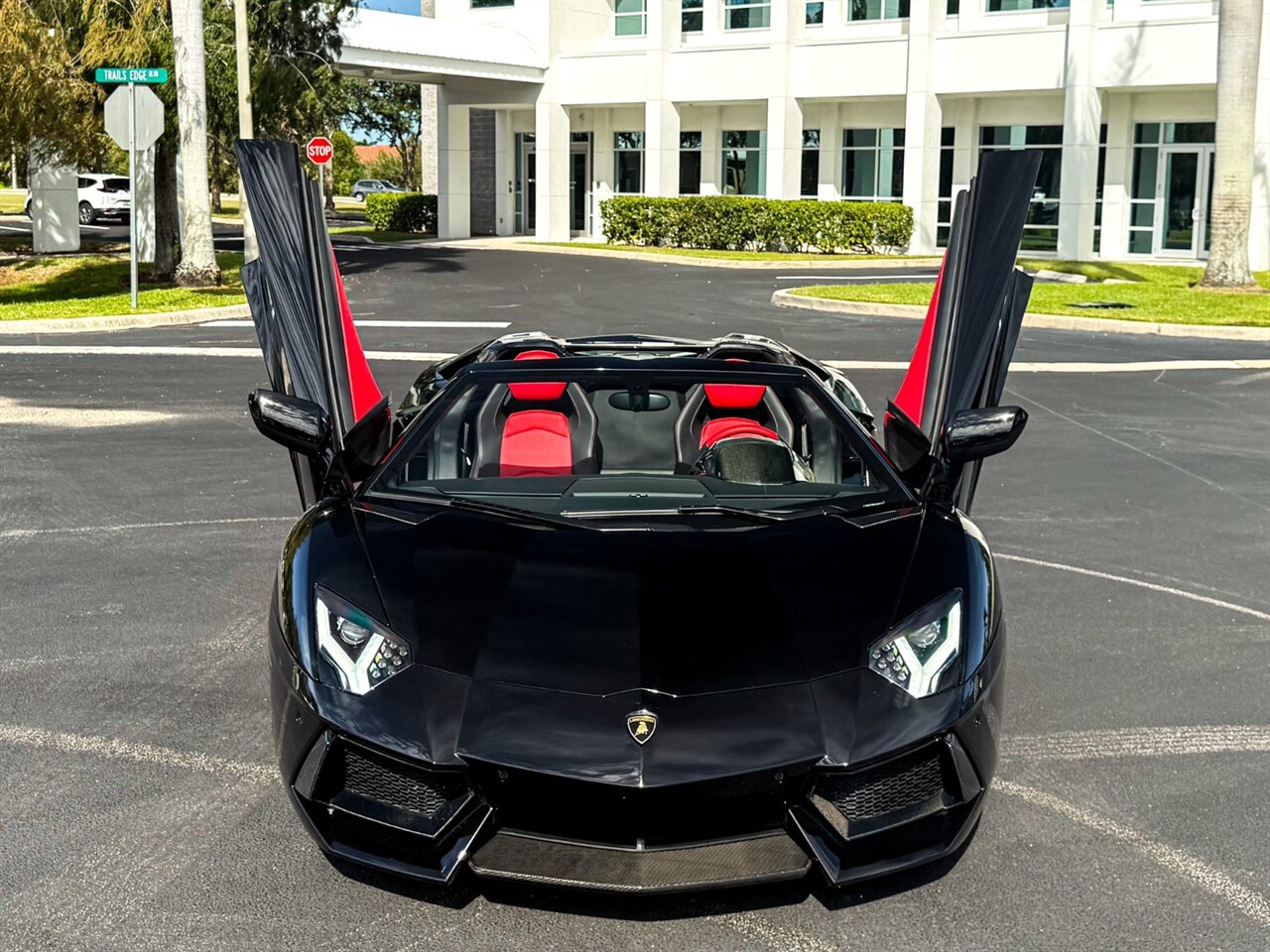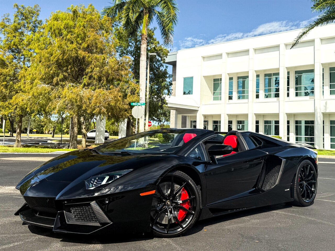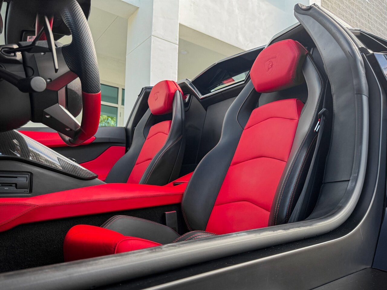 2016 Lamborghini Aventador LP700-4 Roadster. Nero Aldebaran Exterior with Nero Ade & Rosso Leather Interior. Features Include: 691 Horsepower NA 6.5L V12 Engine, Seven-Speed ISR Automatic Transmission, 20" Front & 21" 10-Spoke Wheels in Gloss Black, Carbon Ceramic Brakes, Red Brake Calipers, Front Lift System, Carbon Fiber Front Lip, Transparent Engine Bonnet, Carbon Fiber Engine Cover, Front & Rear Parking Sensors, Rear View Camera, Black Removable Roof Panels, Projector Beam HID Headlights, LED DRLs, LED Tail Lights, Power-Folding Outside Mirrors, Keyless Access & Start, Leather Wrapped Multifunction Steering Wheel, Shift Paddles, Digital Instrument Cluster, Push Button Start, Selectable Drive Modes, Heated Fully Electric Seats, Lamborghini Crest Embroided on Headrests, Red Contrast Stitching Throughout Interior, Sensonum Audio System, Smartphone Integration, Bluetooth, Navigation, HomeLink. Priced at only $399,995.00. Financing and leasing available. We ship worldwide. We pay top dollar for lightly used sports cars, Call or text our Product Specialist today at 239-522-2262 or email at sales@gcmworks.com.