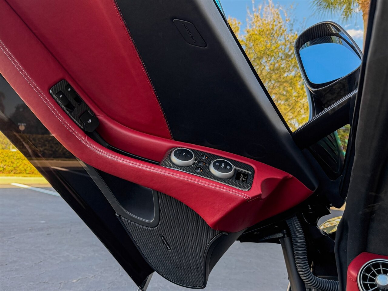 Onyx Black Exterior with Red Leather Interior. Only 14,700 Miles! Carbon Fiber Rockers, Carbon Fiber Side Air Intake, Vossen Wheels, Carbon Fiber Interior Components, Meridian Audio System