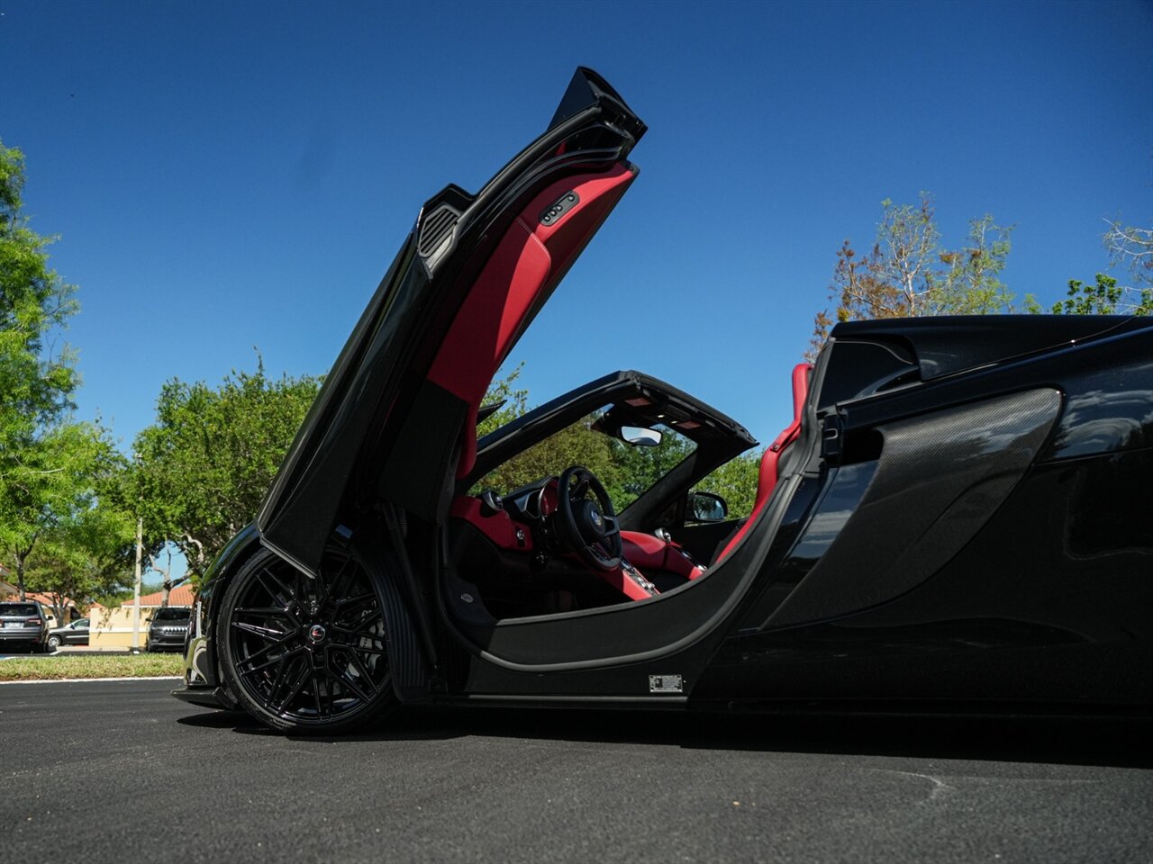 2016 McLaren 650S Spider. Onyx Black Exterior with Red Leather Interior. Features Include: 641 Horsepower Twin Turbo 3.8L V8 Engine, Seven-Speed Dual Clutch Seamless Shift Automatic Transmission, McLaren ProActive Chassis Control, Carbon Ceramic Brakes, Brake Calipers in Silver, 20" Front & 21" Rear Multi-Spoke Vossen Wheels in Gloss Black, Active McLaren Airbrake Rear Spoiler, Sports Exhaust, Carbon Fiber Front Air Dam, Carbon Fiber Rear Bumper, Carbon Fiber Rockers, Carbon Fiber Side Air Intake, Power Folding Convertible Hard Top, Full LED Headlamps, LED Tail Lights, LED DRLs, Power Folding Side Mirrors, Single-Hinge Mounted Dihedral Doors, Black Leather Wrapped Steering Wheel, Shift Paddles, Selectable Drive Modes, Selectable Suspension Settings, Launch Control, Leather Dashboard, Carbon Fiber Interior Components, Touchscreen Infotainment with Meridian Surround Sound System, SiriusXM, Navigation, Smartphone Integration, Bluetooth, Dual Zone Automatic Climate Control with Dedicated Controls for Passenger. Priced at only $139,995. Financing and leasing available. We ship worldwide. We pay top dollar for lightly used sports cars, Call or text our Product Specialist today at 239-522-2262 or email us at sales@gcmworks.com.