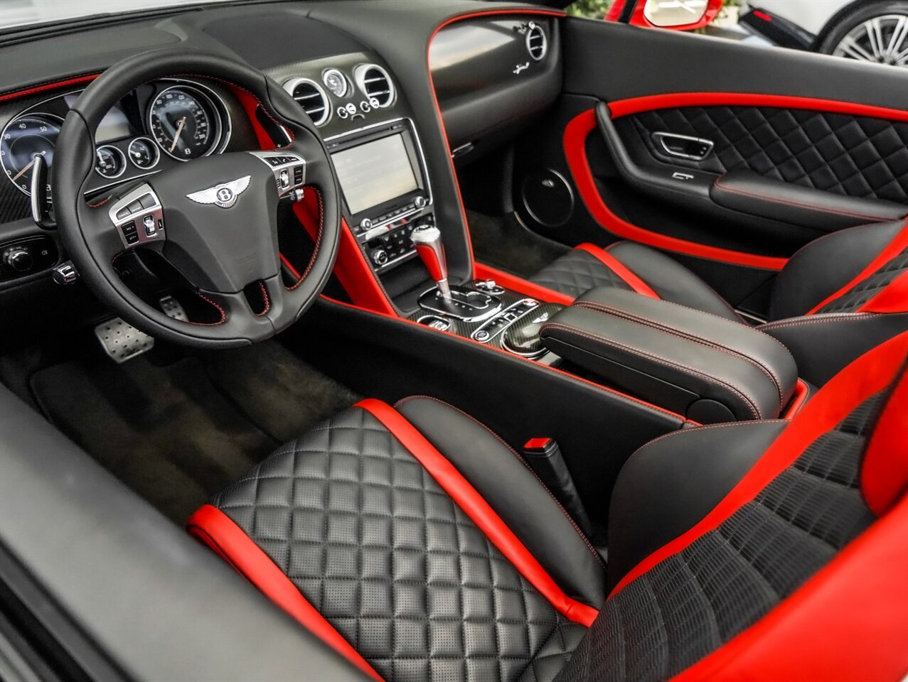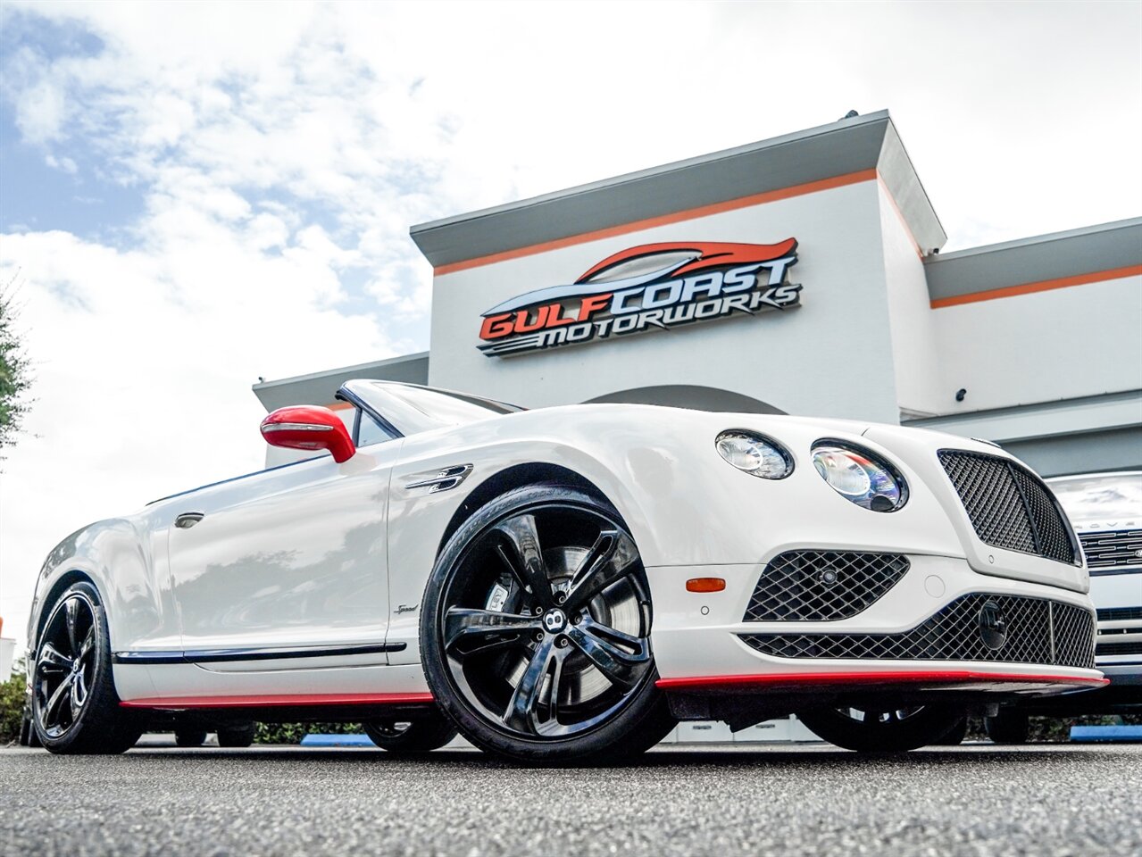 Glacier White Solid Exterior with Beluga & St. James Red Accent Leather Interior. Only 9,863 Miles! Black Edition w/St. James Red Accents, Carbon Fiber Interior Components, Naim For Bentley Audio.