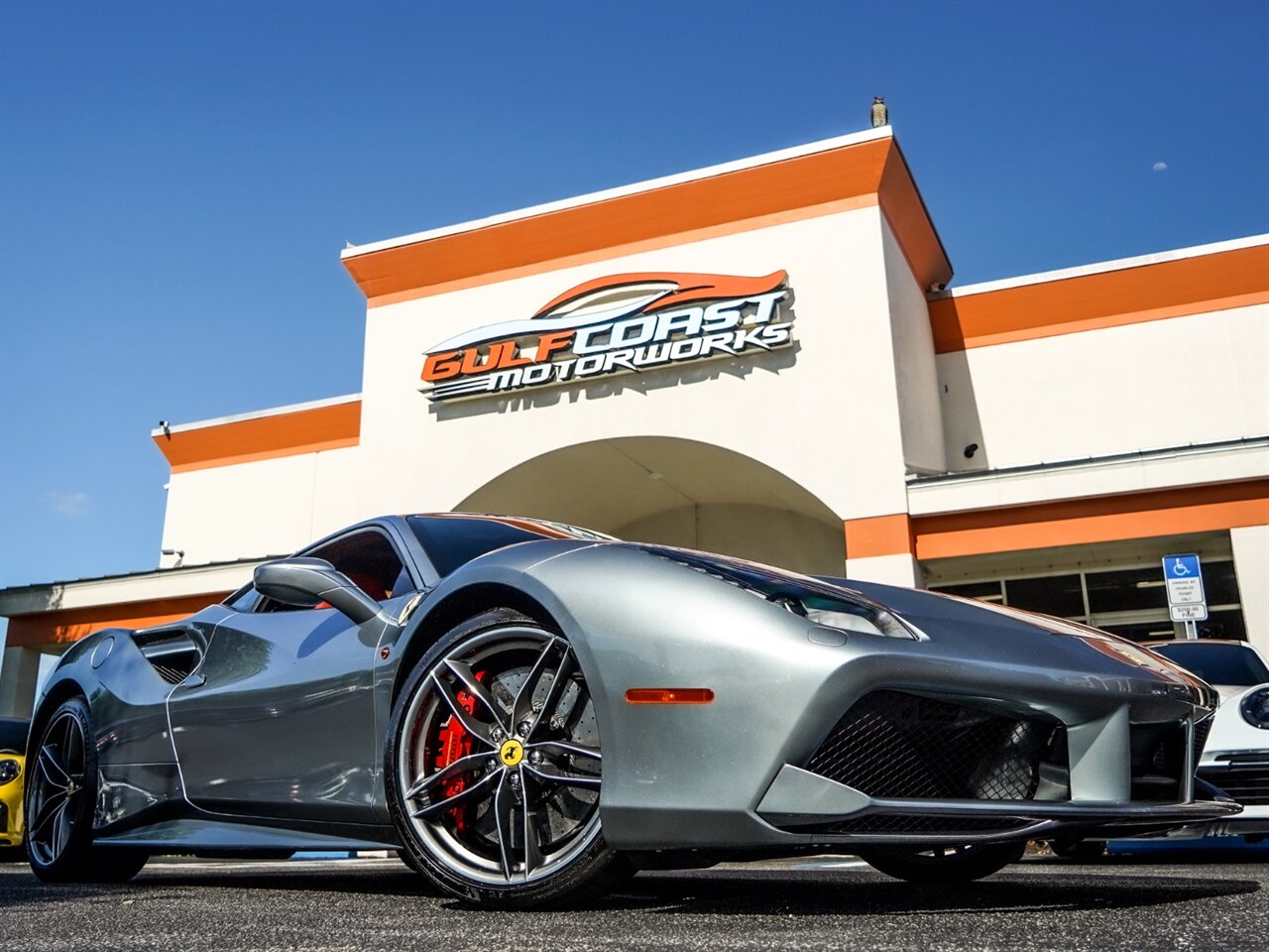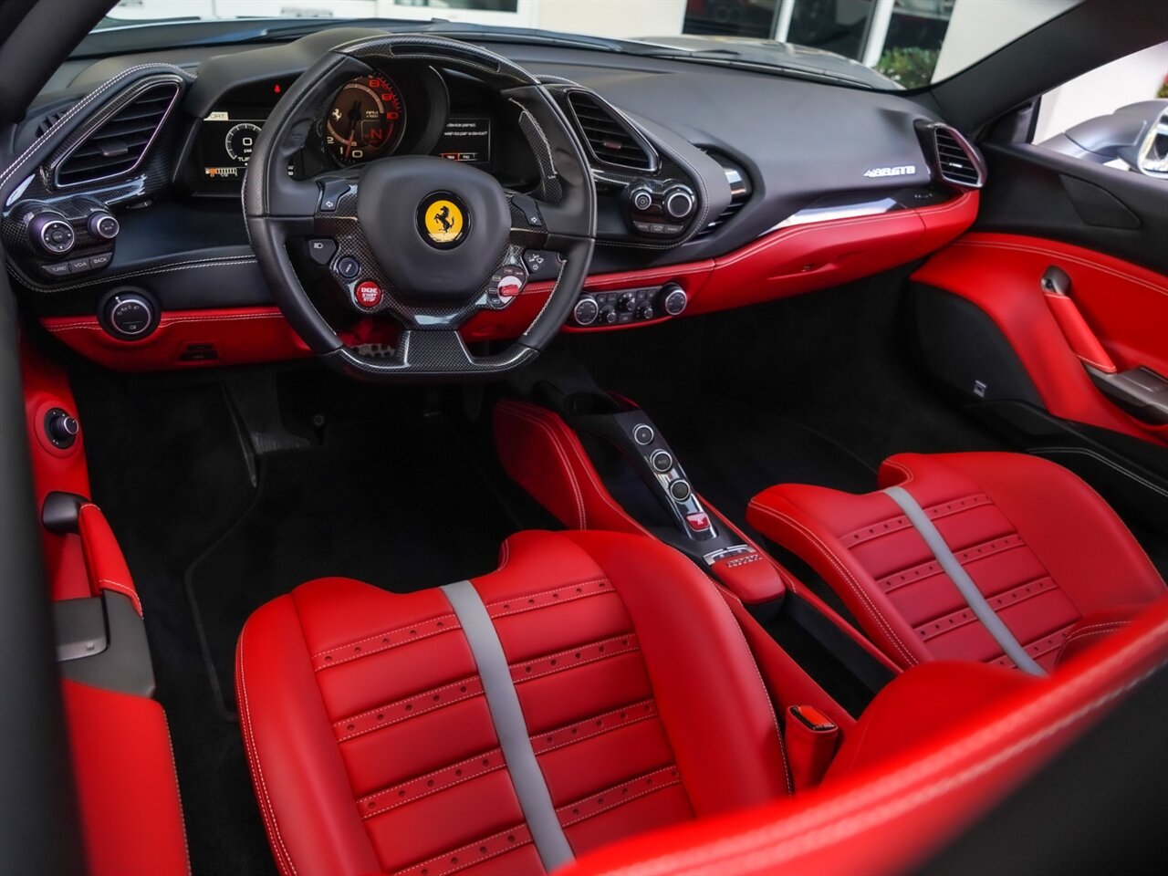 Grigio Titanio Metallic Exterior with Rosso Ferrari Interior. Only 3,859 Miles! Carbon Ceramic Brakes, Magnetic Suspension, Carbon Fiber Daytona Style Race Seats, Carbon Fiber Interior Trim, JBL Audio