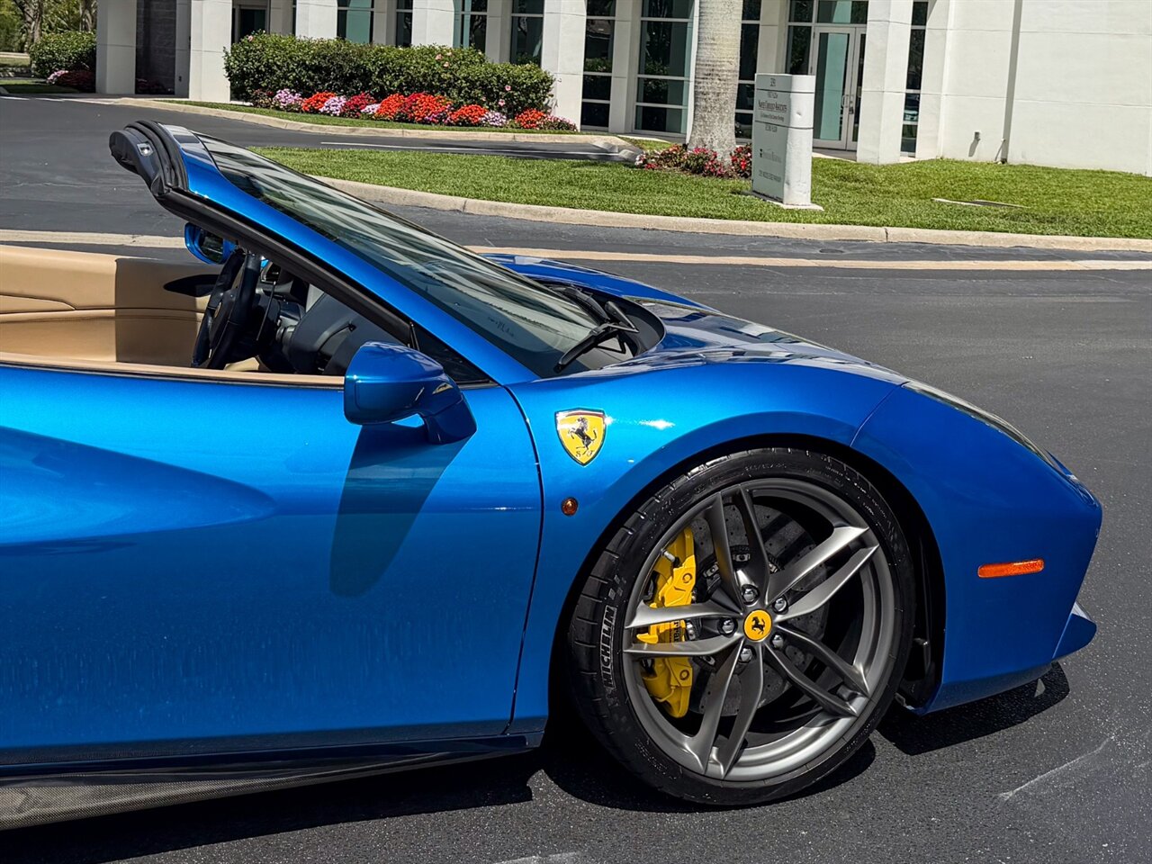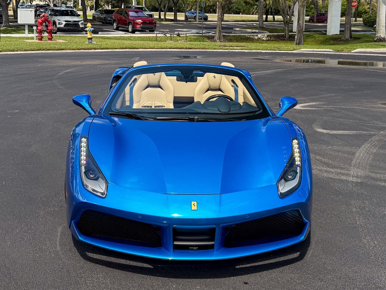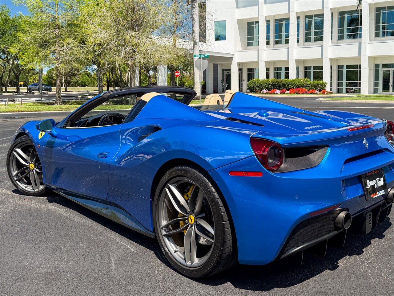 2017 Ferrari 488 Spider. Blu Corsa Exterior with Crema Leather Interior. Features Include: 800 Horsepower Twin Turbo 3.9L V8 Engine, Seven-Speed Dual Clutch Automatic Transmission, Magnetic Suspension Damping, 21" Front 22" Rear Wheels in Silver, Carbon Ceramic Brakes, Yellow Brake Calipers, 'Scuderia Ferrari' Shields, Fabspeed Downpipes, Fabspeed Tune, Pure Turbos, Novitec Suspension, Carbon Fiber Rear Air-Ducts, Carbon Fiber Side Air Splitter, Power Folding Convertible Hard Top, Projector Beam AFS Headlights, LED DRLs, LED Tail Lights, Front & Rear Parking Sensors, Parking Camera, Power Folding Outside Mirrors, Keyless Access & Start, Yellow Rev. Counter, Instrument Cluster with Two TFT Screens, Carbon Fiber Central Bridge, Colored Safety Belts, Daytona Style Seats, Colored Upper Dashboard, Electric Seats, Cavallino Stitched On Headrest, Carbon Fiber Steering Wheel + LEDS, Inner Color Rear Leather Trim, Leather Perforated, Colored Steering Wheel,Selectable Drive Modes, Dual Zone Automatic Climate Control, Smartphone Integration, Bluetooth, Navigation, HomeLink. Priced at only $289,995.00. Financing available. We ship worldwide. We pay top dollar for lightly used sports cars! Call or text our Product Specialists today at 239-522-2262 or email us at sales@gcmworks.com. Fees and Taxes: $1199.00 Doc Fee on all Purchases. Out of state buyers are responsible for all state, county, city taxes and fees, as well as title/registration fees in the state that the vehicle will be registered.