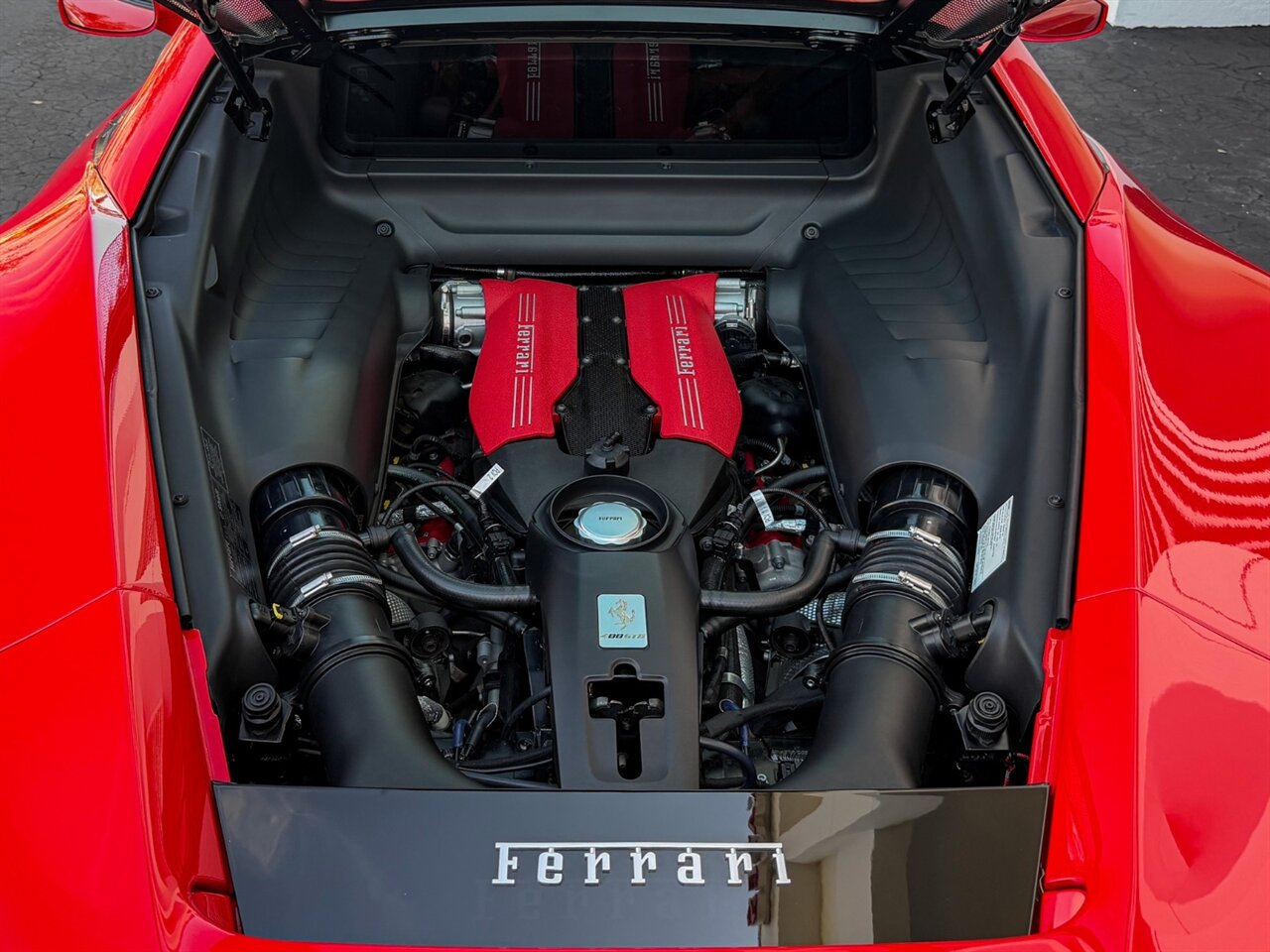 Rosso Corsa Exterior with Cuoio Leather Interior. Only 10,180 Miles! Suspension Lifter, Carbon Fiber Front Spoiler, Scuderia Ferrari Shields, Molded Rear Wing.