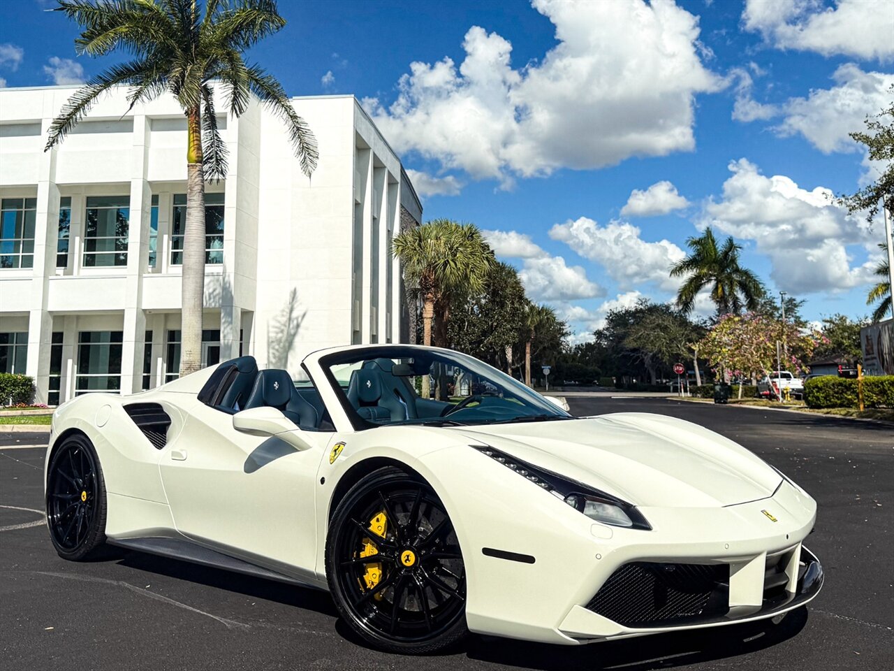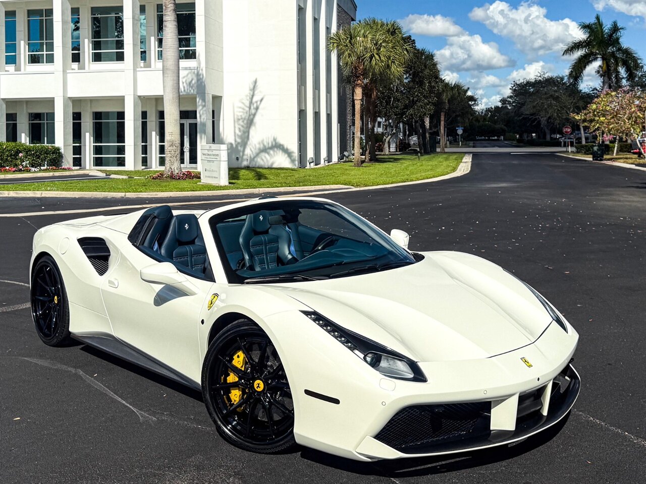 2018 Ferrari 488 Spider. Bianco Avus Exterior with Blu Medio Leather Interior. Features Include: 661 Horsepower 3.9L Twin Turbo V8 Engine, 7-Speed Dual Clutch F1 Transmission, 21"/22" 5 Dual-Spoke Wheels in Black, Yellow Brake Calipers, Carbon Ceramic Brakes, Suspension Lifter, Scuderia Shields, Carbon Fiber Rear Air Ducts, Carbon Fiber Side Air Splitter, Outer Carbon Fiber B-Post Trim, Carbon Fiber Front Spoiler, Carbon Fiber Underdoor Cover, Carbon Fiber Driver Zone with LEDs, Carbon Fiber Central Bridge, Exterior Sill Kick in Carbon, Daytona Carbon Fiber Racing Seats, Yellow Rev Counter, Front and Rear Parking Sensors, Front and Rear Parking Cameras, Blu Colored Safety Belts, Dash Inserts in Carbon Fiber, Colored Upper Dashboard, Leather Lower Dashboard, Lower Part of Center Console in Leather, Center Console in Leather, Adaptive Frontlight System, JL Audio Amp and Two Subwoofers, Colored Mats with Logo, Upper Part in Colored Leather, Inner Color Rear Leather Trim, Colored Steering Wheel, Bianco Special Stitching. Priced at only $289,995. Financing and leasing available. We ship worldwide. We pay top dollar for lightly used sports cars, Call or text Our Product Specialists today at 239-522-2262 or email at sales@gcmworks.com. Fees and Taxes: $1199.00 Doc Fee on all Purchases. Out of state buyers are responsible for all state, county, city taxes and fees, as well as title/registration fees in the state that the vehicle will be registered.