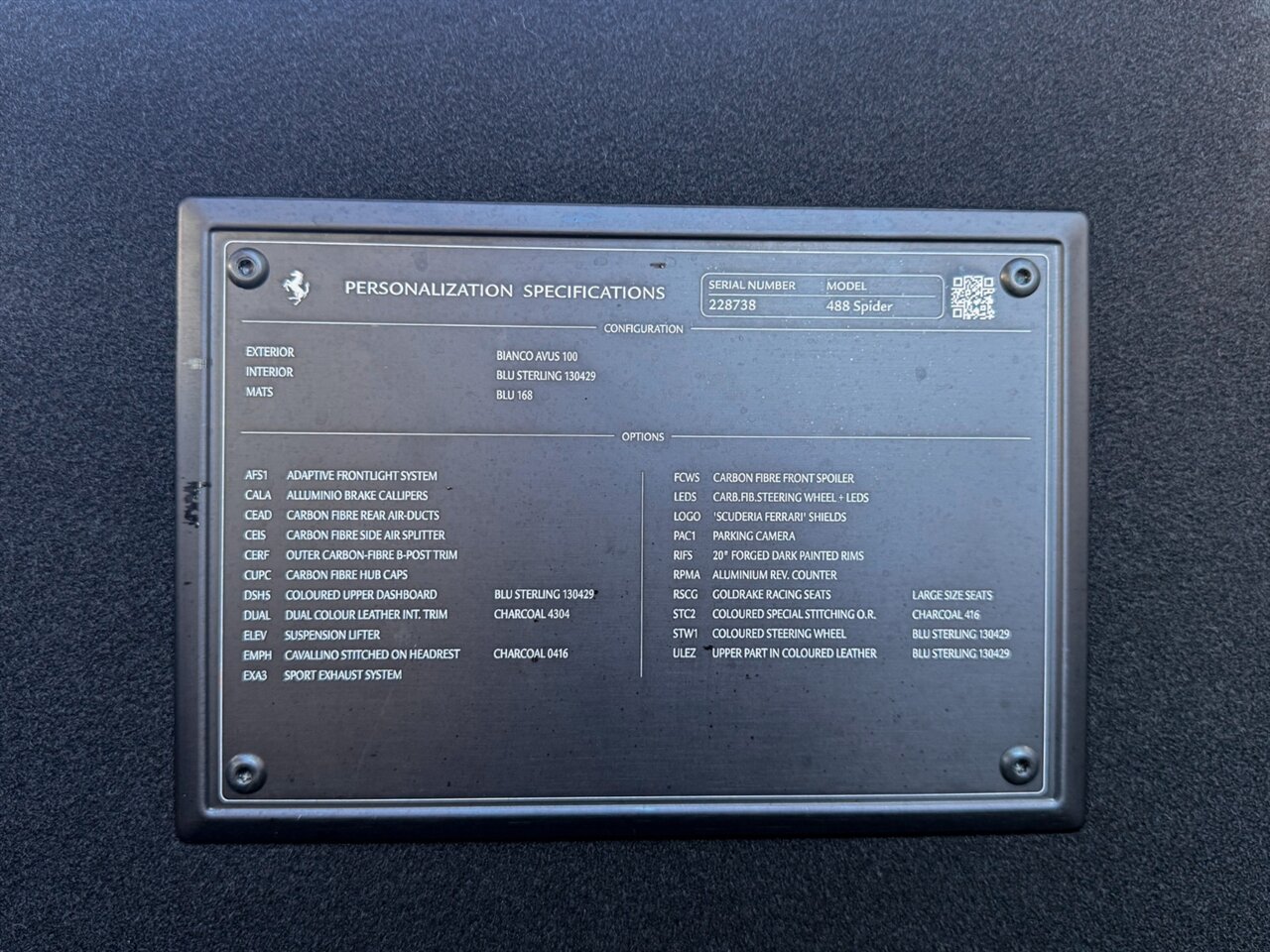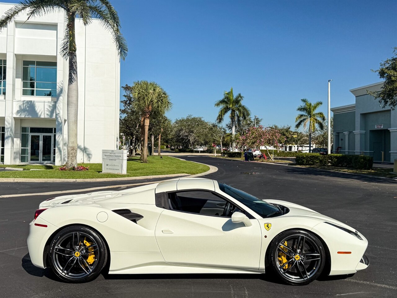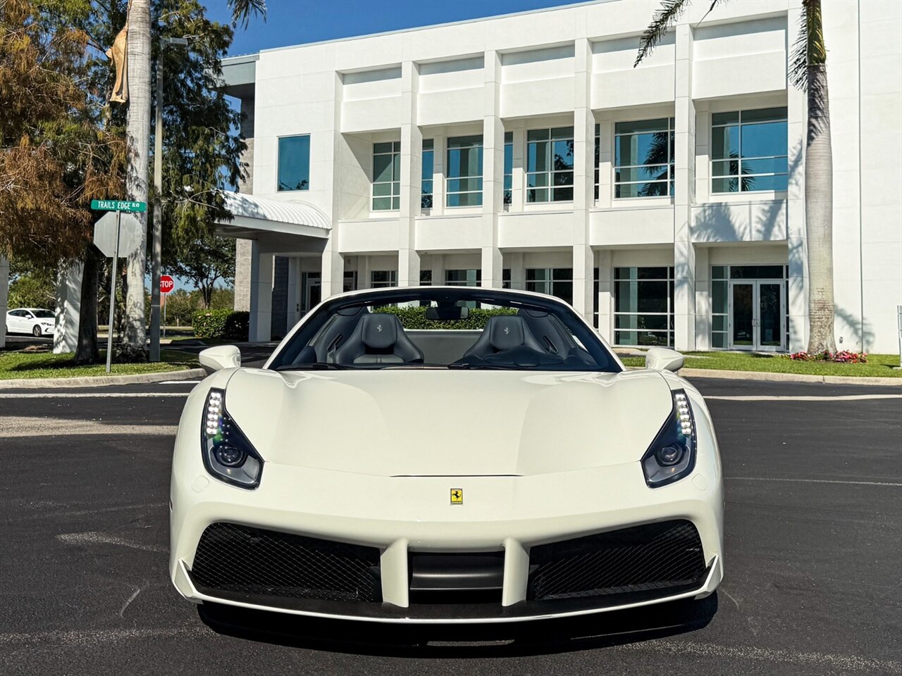 2018 Ferrari 488 Spider. Bianco Avus Exterior with Blu Sterling Leather Interior. Features Include: 661 Horsepower Twin Turbo 3.9L V8 Engine, Seven-Speed Dual Clutch Automatic Transmission, Magnetic Suspension Damping, 20" Forged Dark Painted Wheels, Carbon Ceramic Brakes with Yellow Calipers, 'Scuderia Ferrari' Shields, Carbon Fiber Rear Air Ducts, Adaptive Frontlight System, Carbon Fiber Side Air Splitter, Outer Carbon Fiber B-Post Trim, Sport Exhaust System, Carbon Fiber Front Spoiler, Suspension Lifter, Power Folding Convertible Hard Top, Projector Beam AFS Headlights, LED DRLs, LED Tail Lights, Front & Rear Parking Sensors, Parking Camera, Power Folding Outside Mirrors, Keyless Access & Start, Instrument Cluster with Two TFT Screens, GoldRake Racing Seats, Cavallino stitched on Head Rest, Colored Upper Dashboard, Dual Color Leather Interior Trim, Carbon Fiber Steering Wheel+ LEDS, Aluminum Rev Counter, Colored Special Stitching, Colored Steering Wheel, Upper Part In Colored Leather, Selectable Drive Modes, Dual Zone Automatic Climate Control, Smartphone Integration, JBL HiFi Sound System, Bluetooth, Navigation, HomeLink. Priced at only $299,995.00. Financing available. We ship worldwide. We pay top dollar for lightly used sports cars! Call or text our Product Specialists today at 239-522-2262 or email us at sales@gcmworks.com. Fees and Taxes: $1199.00 Doc Fee on all Purchases. Out of state buyers are responsible for all state, county, city taxes and fees, as well as title/registration fees in the state that the vehicle will be registered.