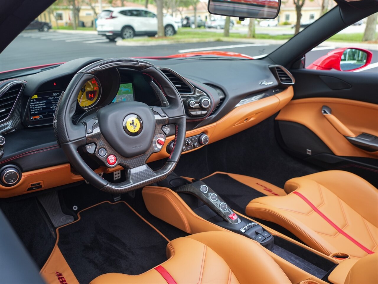 Rosso Corsa Exterior with Beige Tradizone Leather Interior. Only 6,659 Miles! Power Retractable Hardtop, 21" Front & 22" Rear Vossen Wheels, Carbon Fiber Goldrake Racing Seats, JBL Audio.