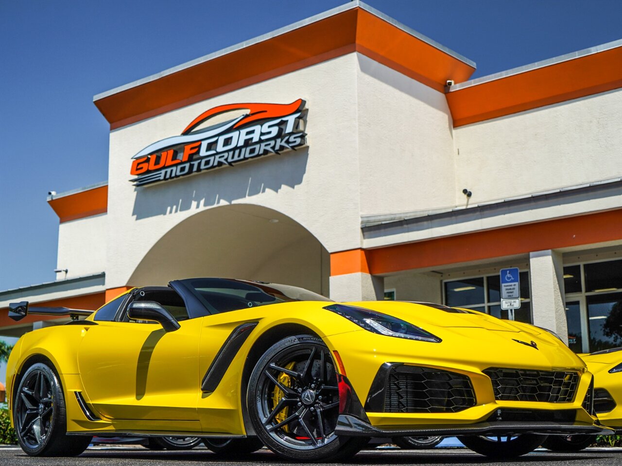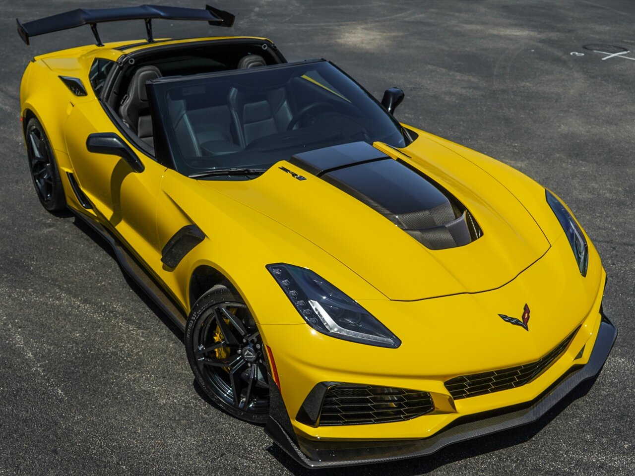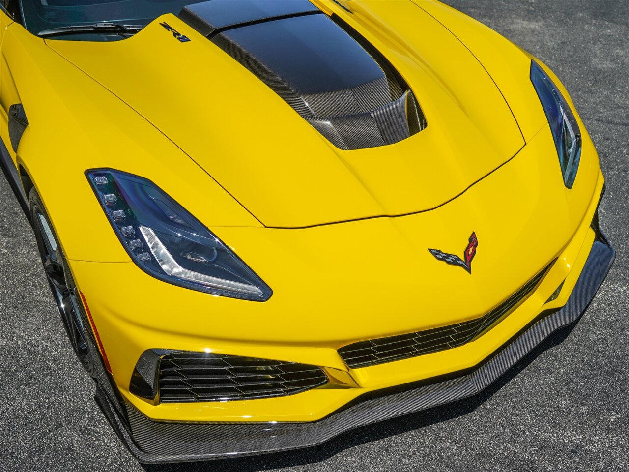 Yellow Exterior With Jet Black Leather Interior. Only 3,444 Miles! ZR1 Performance Package, Loaded with Carbon Fiber, yellow Calipers, KeyLess Open And Start, Black Seat Belts, Carbon Ceramic Brakes.