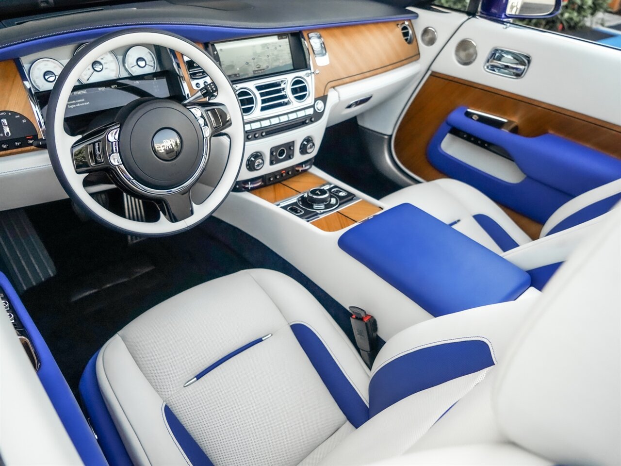 Salamanca Blue Exterior with Seashell & Navy Blue Leather Interior. Only 5,380 Miles! Power Folding Cloth Top, 21" Forged Wheels, Power Assist Soft Close Doors, Full Canadel Panelling-$23k Option.