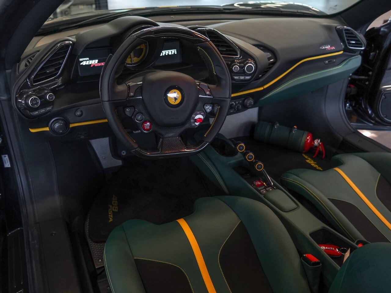 Nero Daytona exterior with Verde leather interior. Only 382 miles! Two-tone Racing stripe, Suspension lifter, Carbon fiber racing seats, Loaded w/carbon fiber!