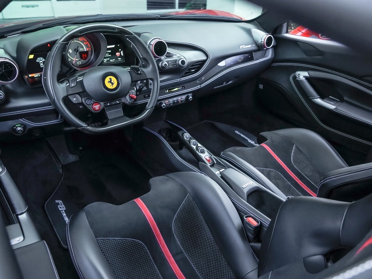 Rosso Scuderia Exterior with Nero Leather Interior. Only 5,696 Miles! Font Lift, Carbon Ceramic Brakes, 21"/22" Vossen Wheels, Carbon Fiber Trim In & Out, Race Seats, Alcantara Interior Trim.