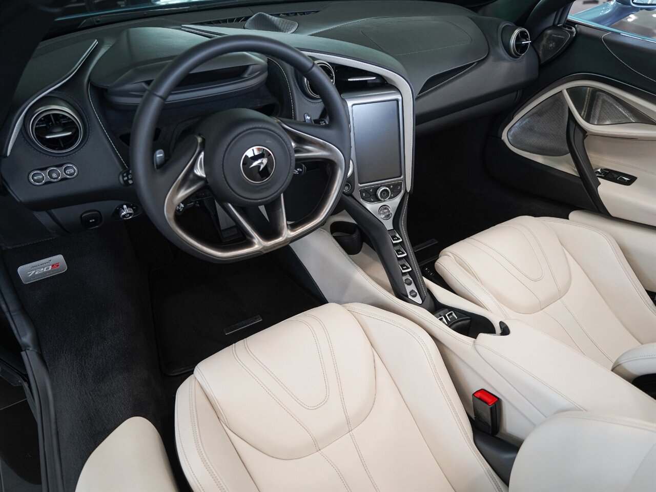 Belize Blue Elite Exterior with Almond White Leather Interior. Only 2,265 Miles! 720S Luxury Package, 5 Twin-Spoke Sport Cast Stealth Finish Wheels, Voodoo Autosports Exhaust, Bowers & Wilkins Audio.