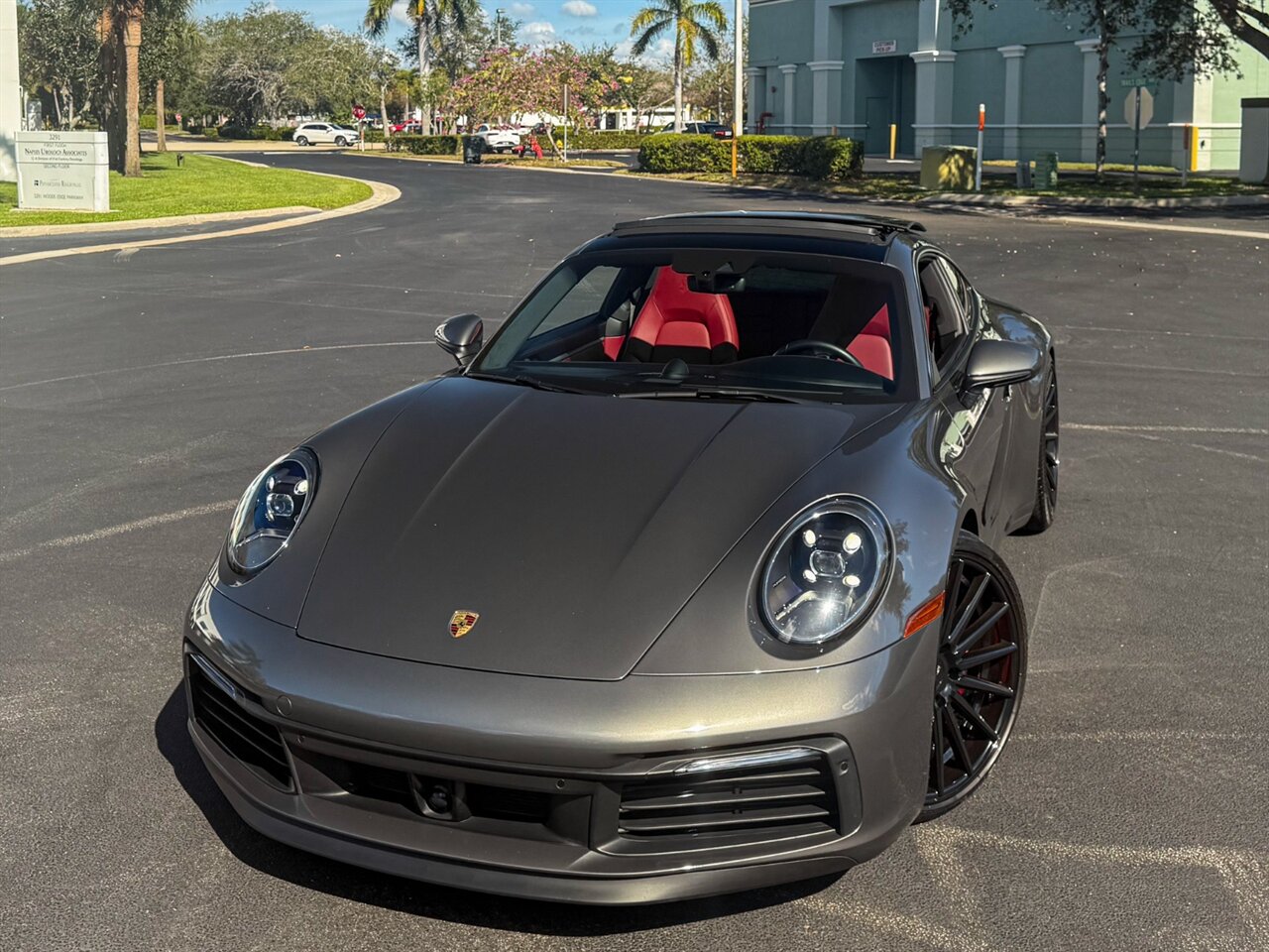 2020 Porsche 911 Carrera S. Agate Grey Metallic Exterior with Black/Bordeaux Red Leather Interior. Features Include: 443 Horsepower Twin Turbo 3.0L H6 Engine, Eight-Speed PDK Transmission, 21" Front & 22" Rear Vossen Wheels in a Black Finish, Drilled Brake Rotors, Brake Calipers in Red, Sports Exhaust System, Tailpipes In Silver, Sport Chrono Package, PASM Sport Suspension, Electric Slide/Tilt Sunroof in Glass, LED Matrix Design Headlights w/ PDLS+, LED DRLs, Electric Tilt & Slide Glass Sunroof, Power Folding Outside Mirrors, Keyless Entry & Start, 911 Carrera S Door-Sill Guards, Leather Wrapped Multifunction GT Sport Steering Wheel, Shift Paddles, Seat Ventilation, Adaptive Cruise Control, Lane Keep Assist, Power Sport Seats (14 Way) with Memory Package, Porsche Crest on Headrest, Digital Gauges, Selectable Drive Modes, Heated & Ventilated Power Adjust Adaptive Sport Plus Front Seats with Memory, Touchscreen Infotainment, Bose Sound System, Surround View Camera System, Navigation, Smartphone Integration, Bluetooth, HomeLink. Priced at only $149,995. Financing and leasing available. We ship worldwide. We pay top dollar for lightly used sports cars, Call or text our Product Specialist today at 239-522-2262 or email at sales@gcmworks.com. Fees and Taxes: $1199.00 Doc Fee on all Purchases. Out of state buyers are responsible for all state, county, city taxes and fees, as well as title/registration fees in the state that the vehicle will be registered.
