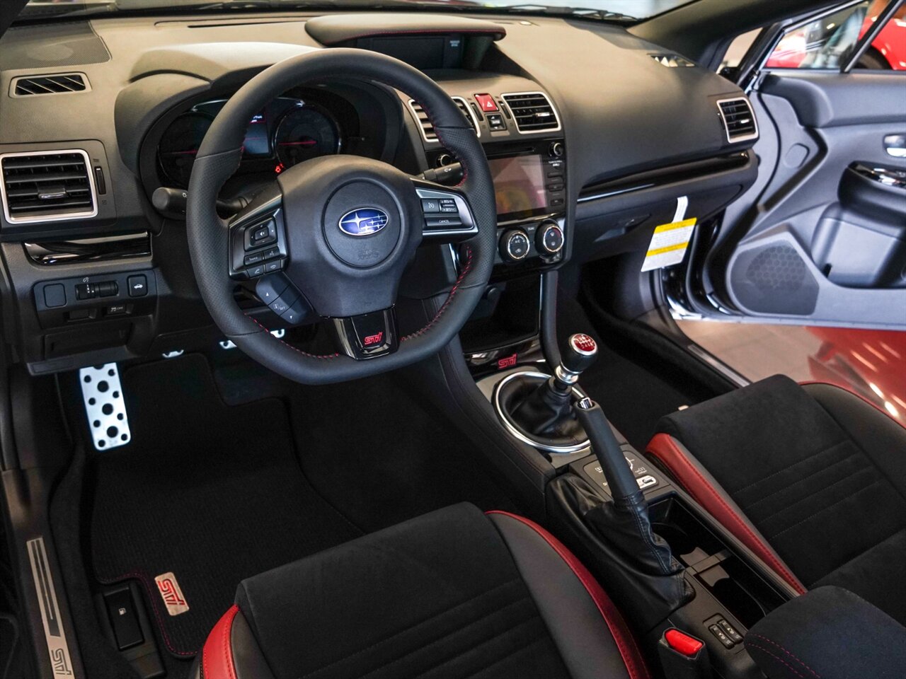 Crystal Black Silica Exterior with Black Alcantara / Black Carbon Fiber Interior. Only 1,214 Miles! 6-Speed Manual Transmission, Red Seat Belts, Carbon Fiber front and rear lip, STI Performance seats.