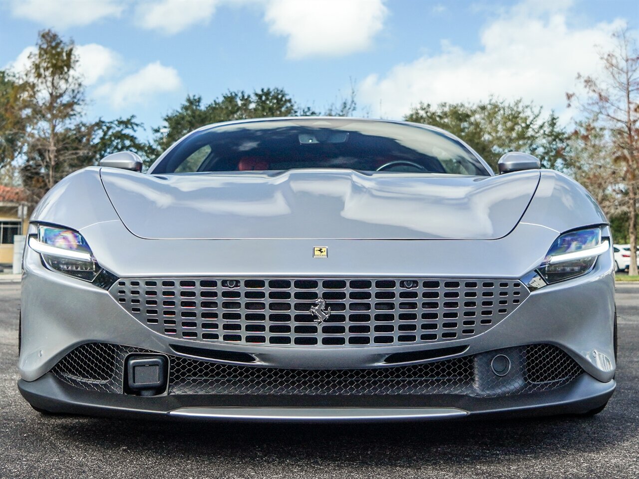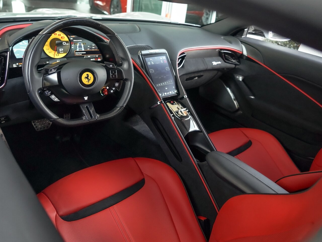 Argento Nurburgring Exterior with Rosso Ferrari Leather Interior. Only 4,579 Miles! Magneride Suspension, Carbon Ceramic Brakes, Full ADAS Pack, Carbon Fiber Interior Trim, Digital Instrumentation.