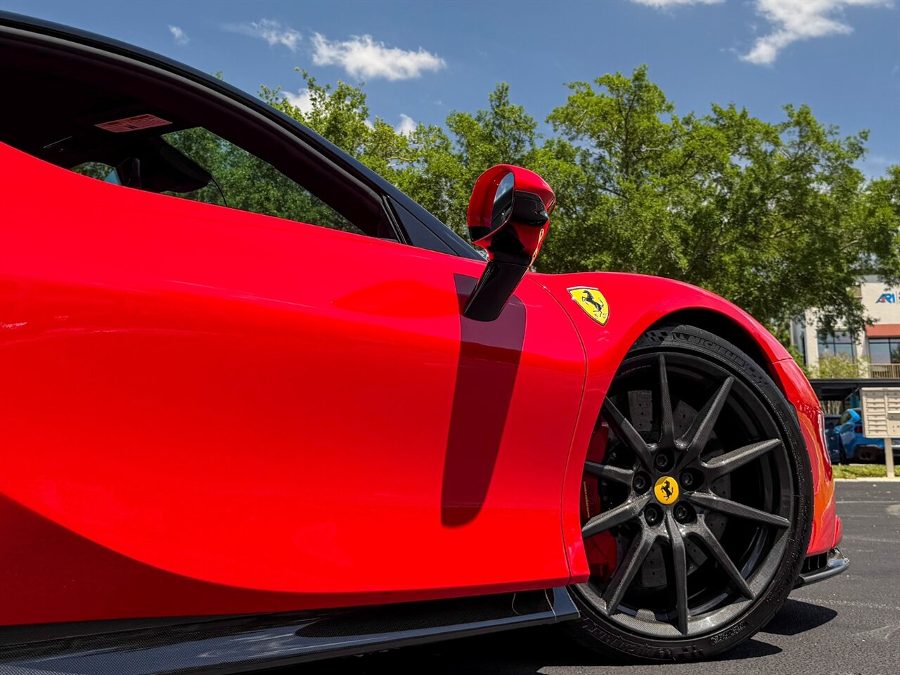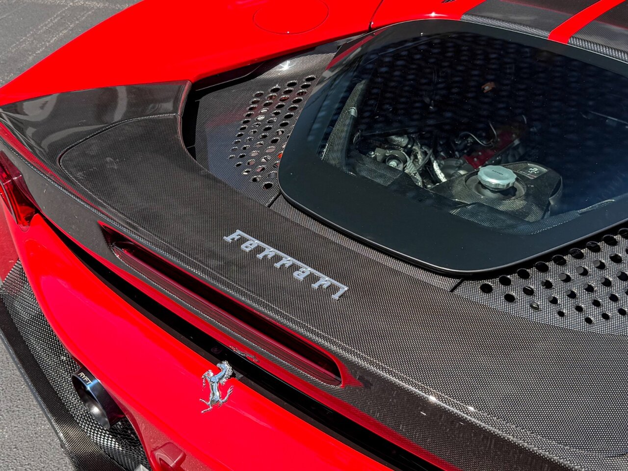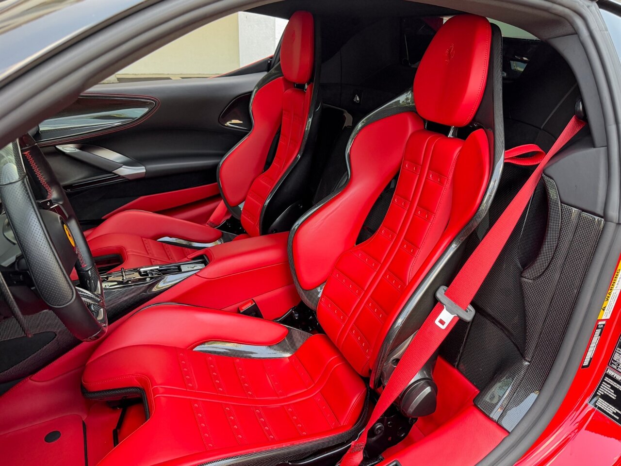 Rosso Corsa Exterior with Rosso Ferrari Interior. Only 2,605 Miles! CCM-Carbon Ceramic Brake System, Carbon Fiber Front & Rear Bumpers, Carbon Fiber Side Air Splitter, JBL Premium Hi-Fi Sound System