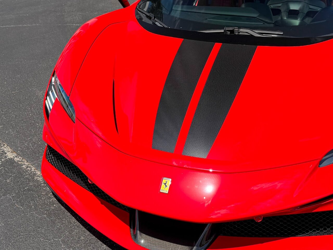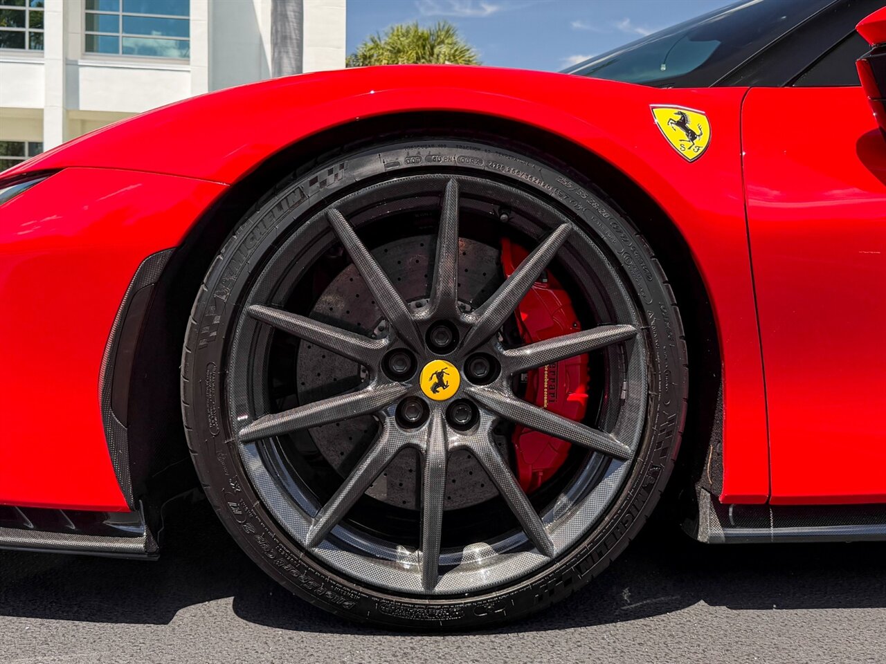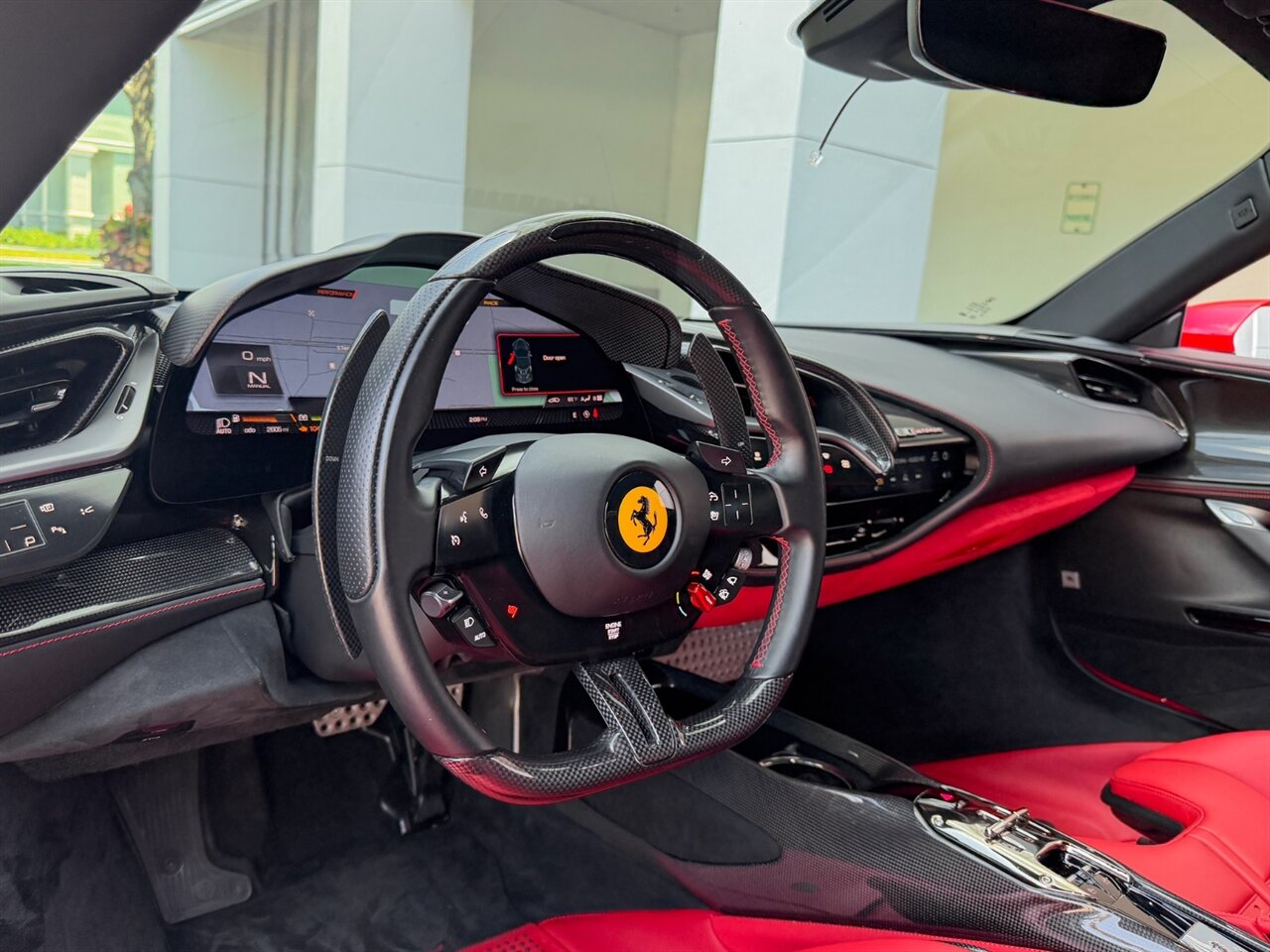 Rosso Corsa Exterior with Rosso Ferrari Interior. Only 2,605 Miles! CCM-Carbon Ceramic Brake System, Carbon Fiber Front & Rear Bumpers, Carbon Fiber Side Air Splitter, JBL Premium Hi-Fi Sound System