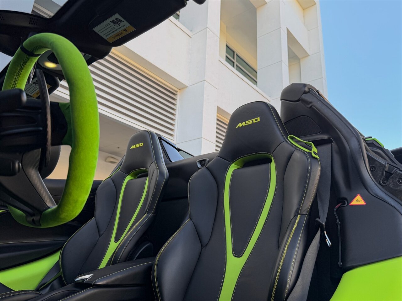 2021 McLaren 720S Spider Performance. MSO Napier Green Exterior with Black/ MSO Napier Green Interior. Features Include: 720 Horsepower Twin Turbo 4.0L V8 Engine, 7 Speed Dual Clutch Automatic Transmission, Carbon Ceramic Brakes, Brake Calipers in Green, 19" Front & 20" Rear 10-Spoke Forged Lightweight Wheels in a Stealth Finish, Active Rear Spoiler, Carbon Fiber Exterior Pack 1, Sports Exhaust, Stealth Pack, Carbon Fiber Hood Air Intake, Performance Plus Pack, Visible Body Structure in Carbon Fiber, MSO Brake Calipers, Rear Fender Intakes in Carbon Fiber, LED Headlights & Tail Lights, LED DRLs, Front & Rear Parking Sensors, Carbon Fiber Power Folding Outside Mirrors, Soft Close Door Latching, Electric Steering Wheel Column, Digital Instrument Cluster, Selectable Drive Modes, Launch Control, Green Alcantara Wrapped Multifunctional Steering Wheel, MSO Defined Paddle Shifters, Electric and Heated Memory Seats, Primary Interior Components in Carbon Fiber, Secondary Interior Components in Carbon Fiber, MSO Bespoke Interior, MSO Contrast Stitch, MSO 12 O'Clock Steering Wheel Marker, MSO Headrest Embroidery, Touchscreen Infotainment with Bowers & Wilkins Audio System, Dual Zone Automatic Climate Control, Smartphone Integration, Navigation, Bluetooth. Priced at only $299,995. Financing and leasing available. We ship worldwide. We pay top dollar for lightly used sports cars, Call or text our Product Specialist today at 239-522-2262 or email us at sales@gcmworks.com. Fees and Taxes: $1199.00 Doc Fee on all Purchases. Out of state buyers are responsible for all state, county, city taxes and fees, as well as title/registration fees in the state that the vehicle will be registered.