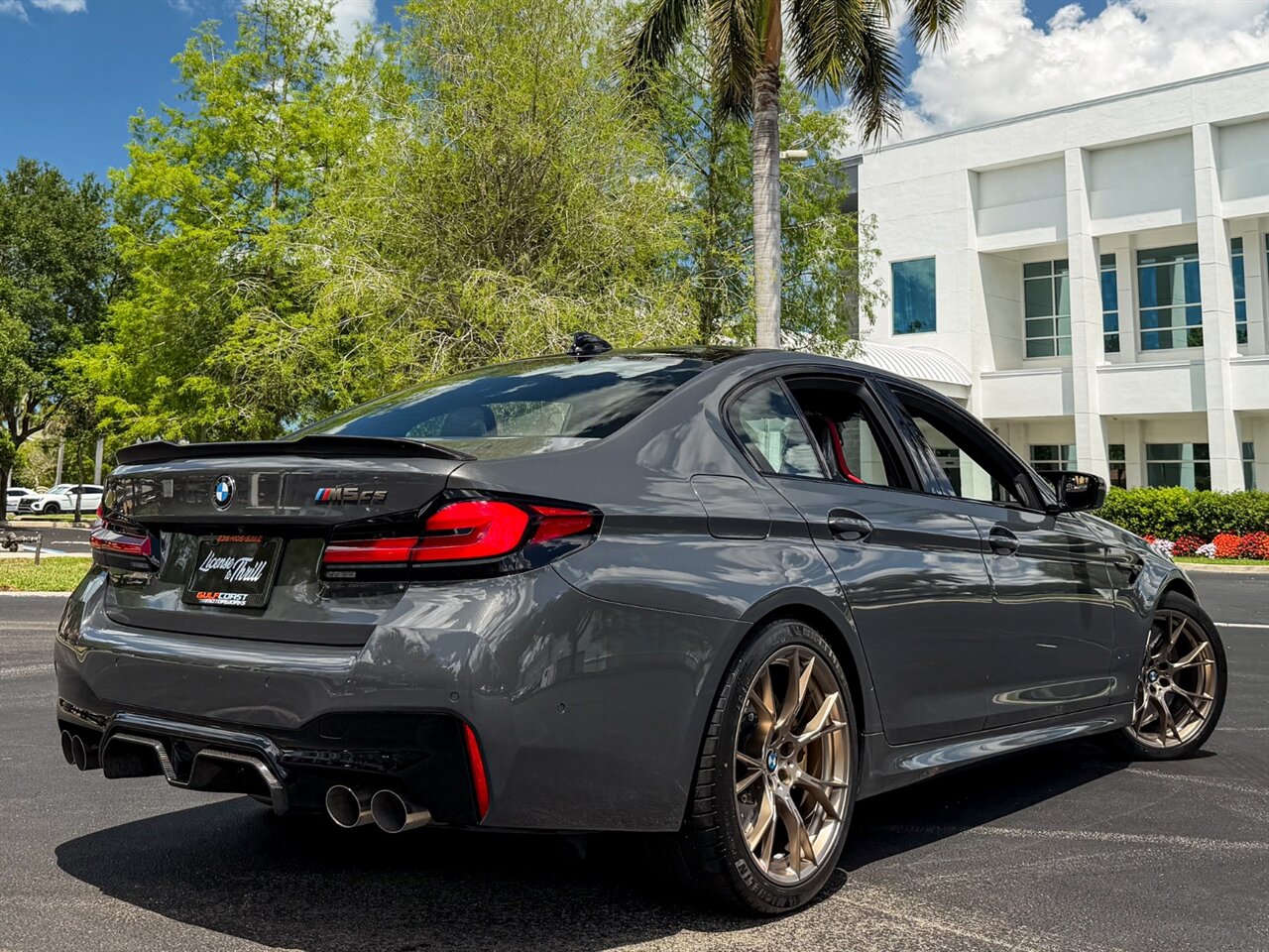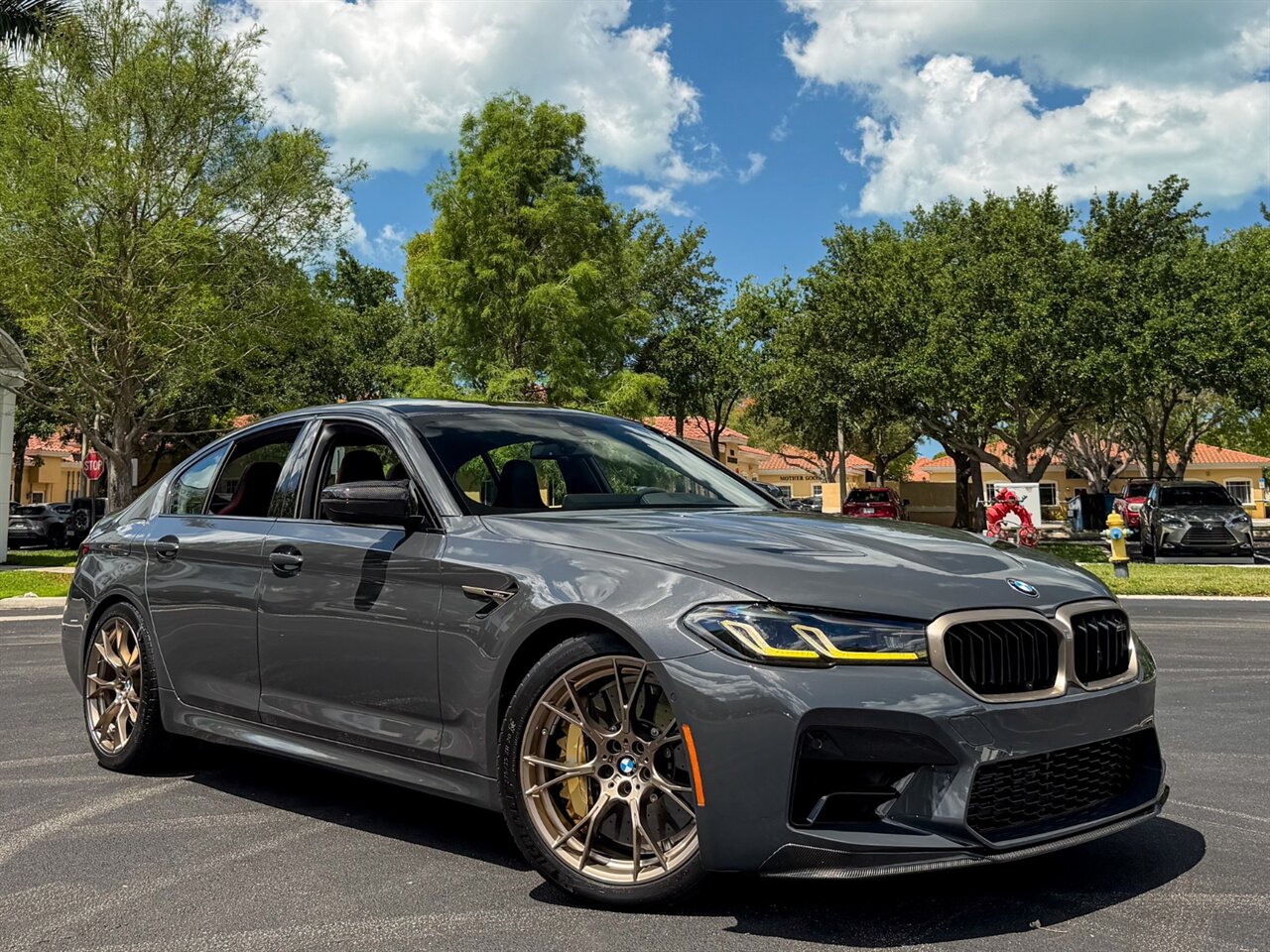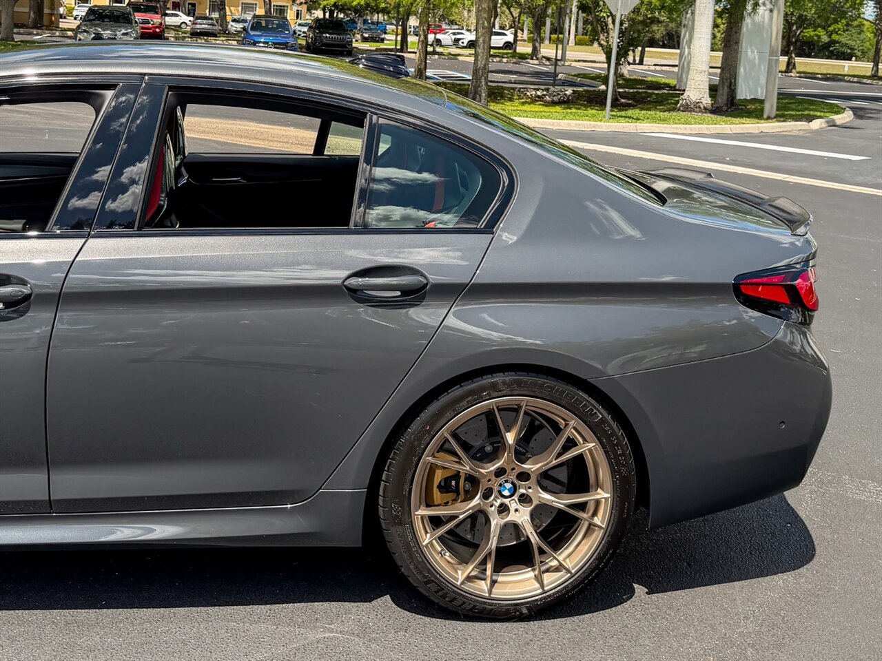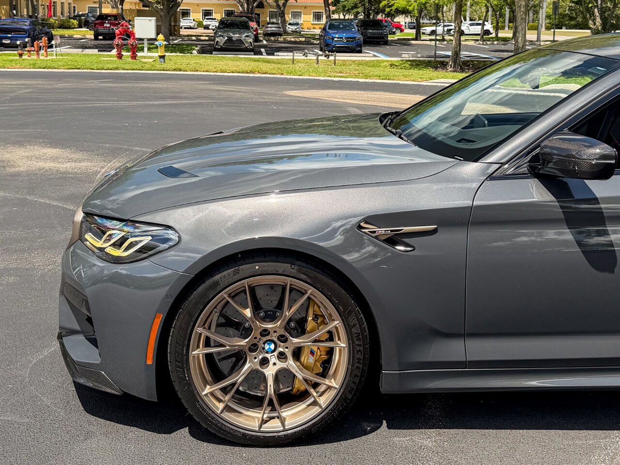 2022 BMW M5 CS. Brands Hatch Gray Metallic Exterior with Black Leather & Mugello Red Stitched Interior. Features Include: 627 Horsepower Twin Turbo 4.4L V8 Engine, Eight-Speed ZF Automatic Transmission, xDrive Four-Wheel Drive with 4WD Sport & Two-Wheel Drive Modes, Sport Tuned Adaptive Damping Suspension, 20" M Design Wheels in Gold, Carbon Ceramic Brakes, Brake Calipers in Gold, Power Folding Carbon Fiber Exterior Mirrors, Carbon Fiber Hood, Carbon Fiber Roof, Carbon Fiber Splitter, Carbon Fiber Spoiler, Carbon Fiber Diffuser, Gold Bronze Grille Frame, Exclusive Yellow Adaptive LED Headlights, LED Brakelights, Back-Up Camera, Front & Rear Parking Sensors, M5 CS Illuminated Door Sill Guards, Digital Instrument Cluster, Alcantara Wrapped Multifunction M Steering Wheel, Carbon Fiber Shift Paddles, Selectable Drive Modes, Selectable Suspension Settings, Selectable Transmission Settings, Carbon Fiber Dashboard Trim, Heated Power Adjust Carbon Fiber Front Seats, Carbon Fiber Rear Seats, M Stripe Seat Belts, Touchscreen Infotainment, Navigation, Harman/Kardon Sound System, Smart Device Interface, Bluetooth, HomeLink. Priced at only $179,995.00. Financing and leasing available. We ship worldwide. We pay top dollar for lightly used sports cars, Call or text Our Product Specialist today at 239-522-2262 or email at sales@gcmworks.com. Fees and Taxes: $1199.00 Doc Fee on all Purchases. Out of state buyers are responsible for all state, county, city taxes and fees, as well as title/registration fees in the state that the vehicle will be registered.