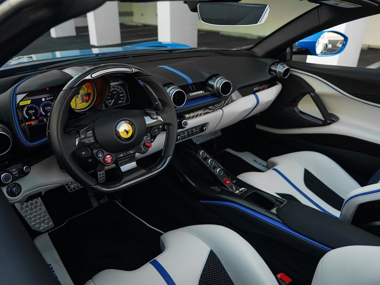 Azzurro Dino Exterior with Azzurro Santorini Leather Interior. Only 2,926 Miles! 20" Forged 10-Spoke Wheels In Silver, Carbon Fiber Rockers, Carbon Fiber Central Bridge, Carbon Fiber Racing Seats.