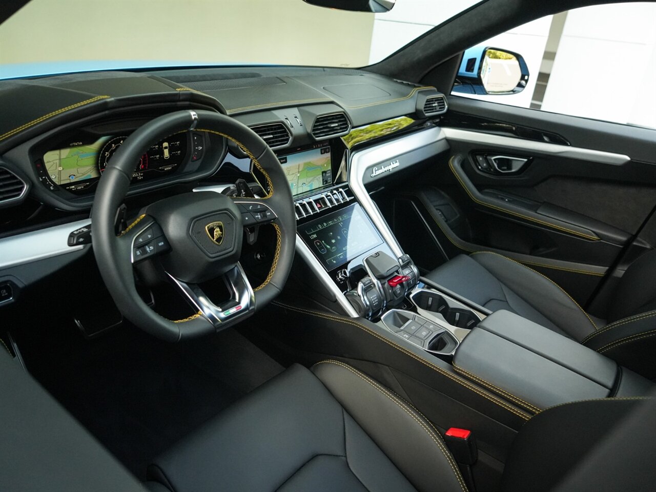 Blu Cepheus Exterior with Nero Leather Interior. Only 854 Miles! Carbon Ceramic Brakes, Yellow Brake Calipers, Active Damping Air Suspension, Alcantara Interior Trim, Touchscreen Infotainment