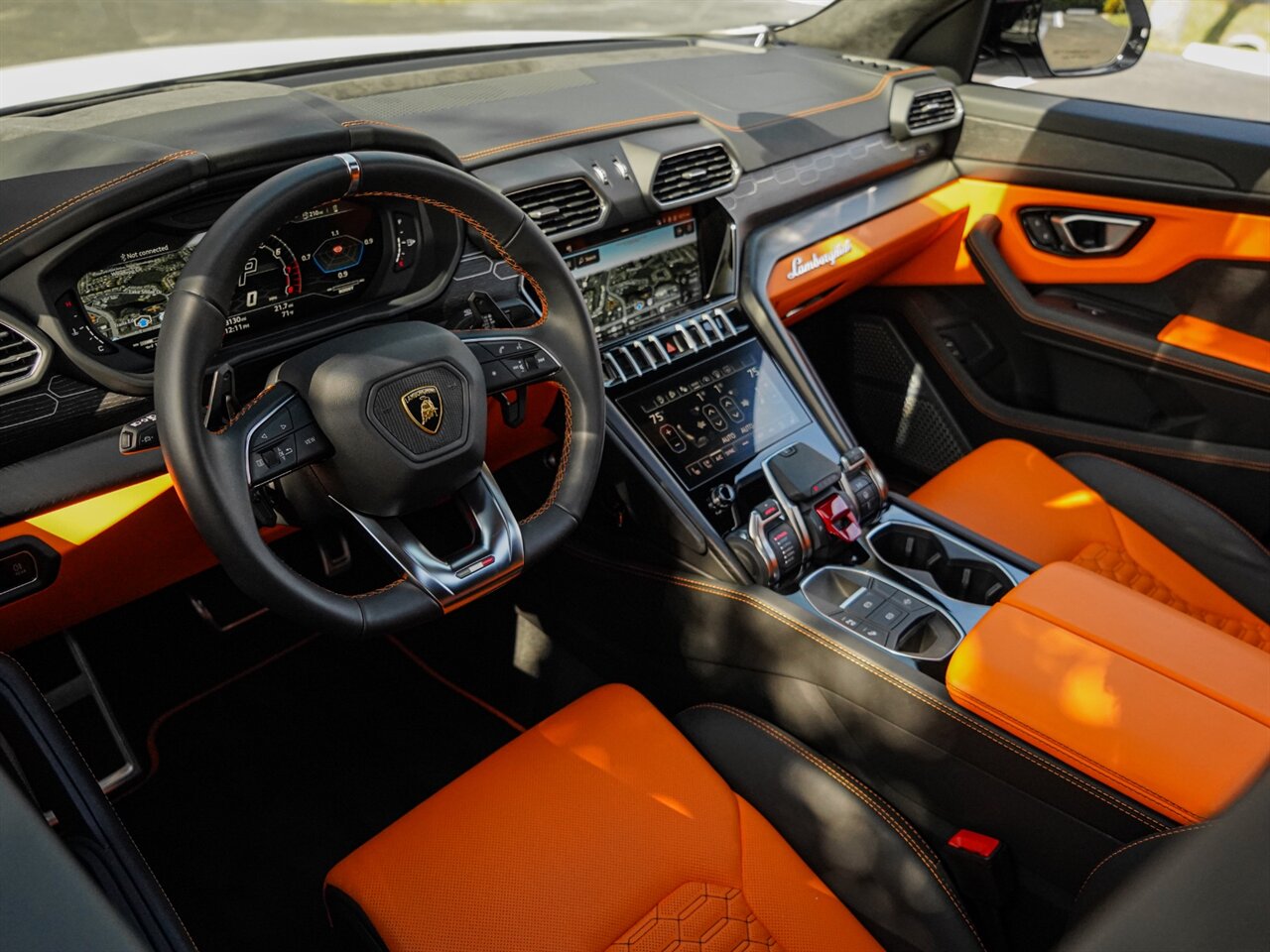 Bianco Monocerus Exterior with Nero Ade w/Arancio Leonis Leather Interior. Only 8,130 Miles! 23" Rims, Carbon Ceramic Brakes, Active Damping Air Suspension, Panoramic Sunroof, Bang & Olufsen Audio.