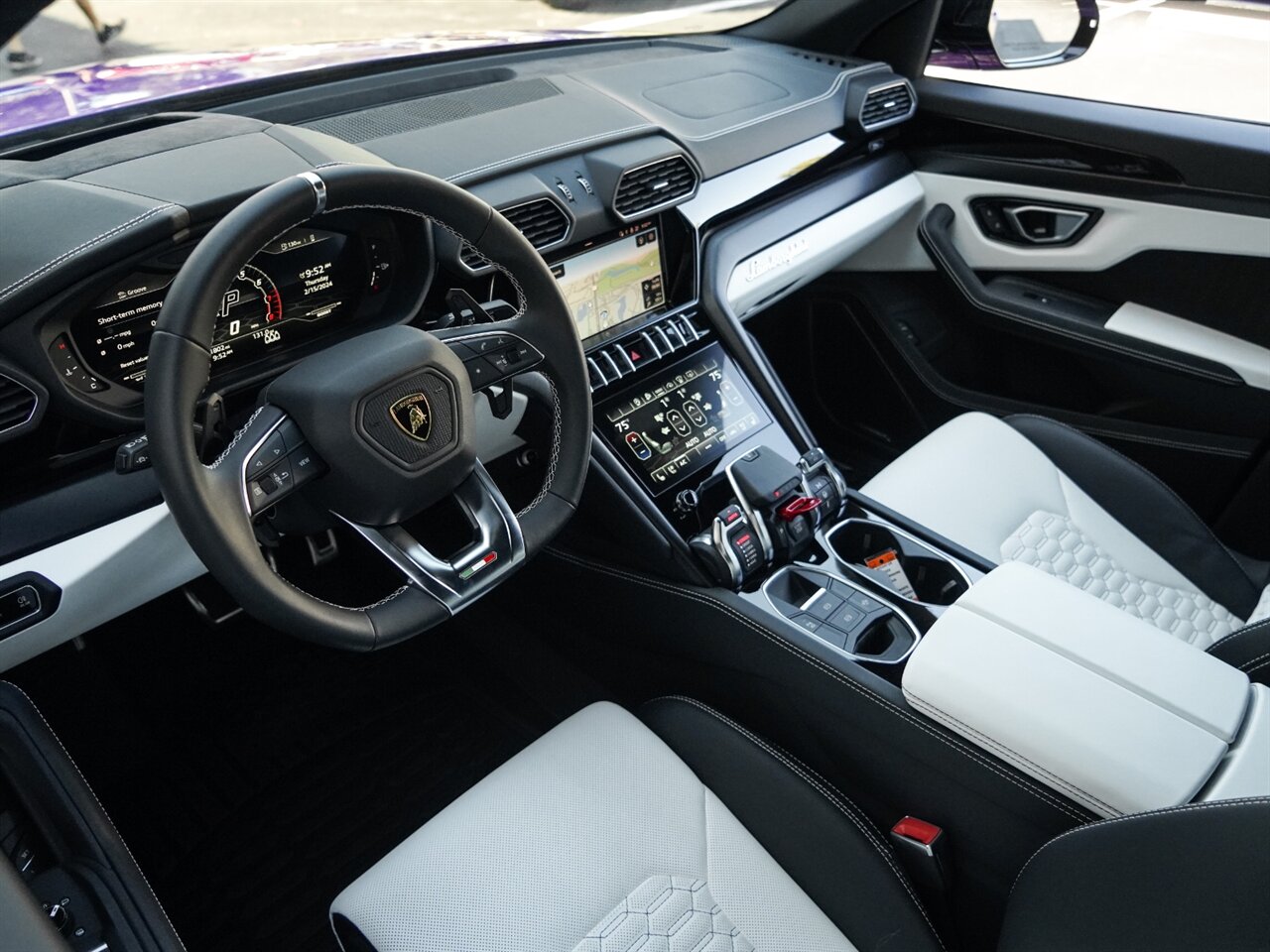 Viola Pasifea Exterior with Nero Ade & Bianco Leather Interior. Only 2,444 Miles! Carbon Ceramic Brakes, 23" Taigete Wheels, Active Exhaust, Q-Citura Stitching, Leather Headliner, Sensonum Audio.