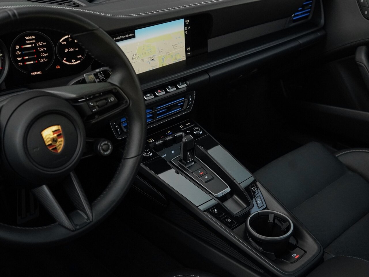 Shark Blue Exterior with Black Leather Interior. Only 745 Miles! PASM Sport Suspension, Fixed Rear Wing, Front Lift, Active Exhaust, Heated & Ventilated Front Seats, Bose Surround Audio.