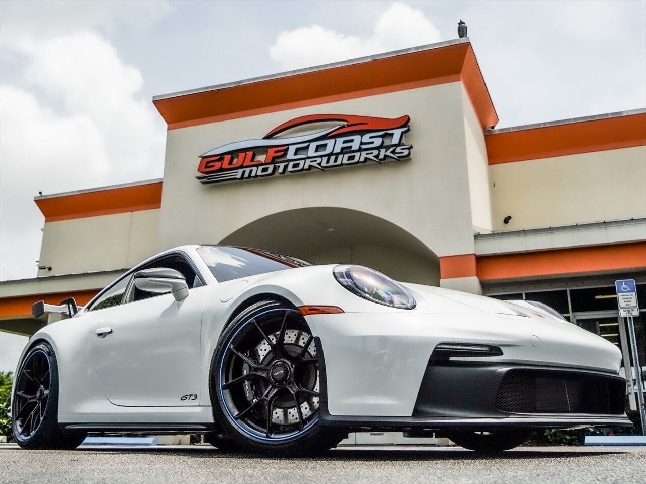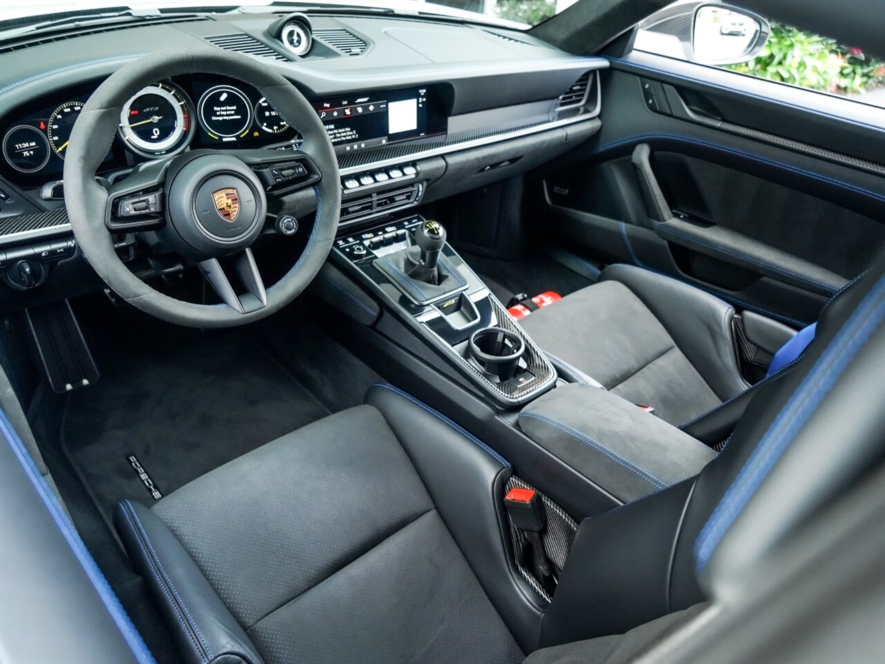 White Exterior with Black Leather/Race-Tex w/Shark Blue Stitching Interior. Only 1,119 Miles! Six-Speed Manual, Front Lift, Fabspeed Exhaust, Carbon Fiber Full Bucket Race Seats, Bose Audio.