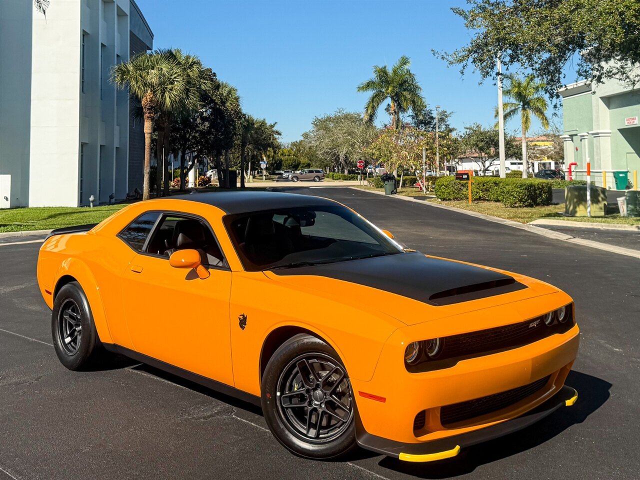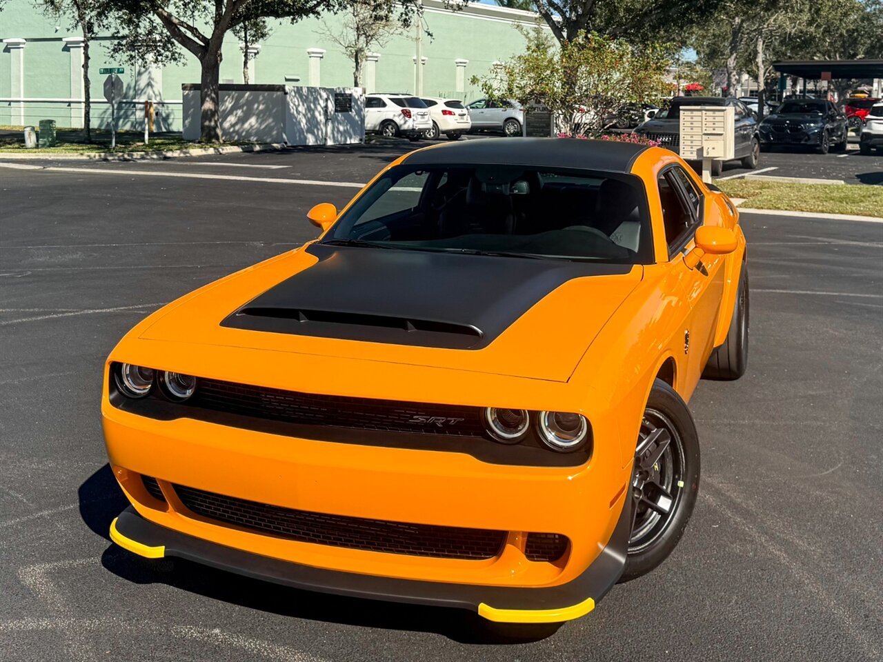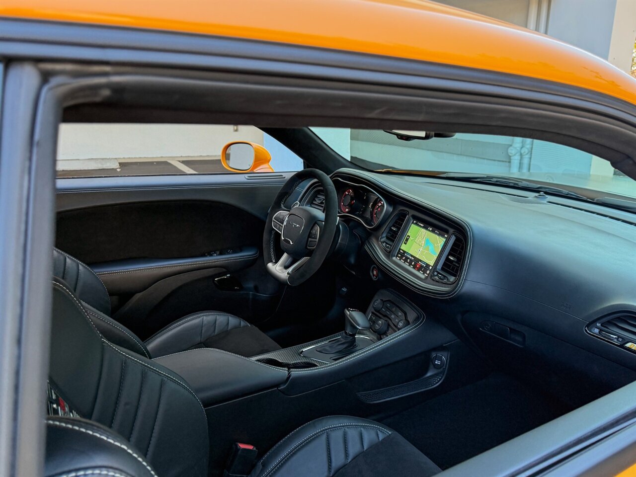 Cream Sickle Exterior Paint with Black Alcantara and Laguna170 interior. Only 28 Miles! SRT Rear Widebody, 170 Satin Black Hood / Roof / Decklid Graphic, Real Carbon Fiber Interior Accents.