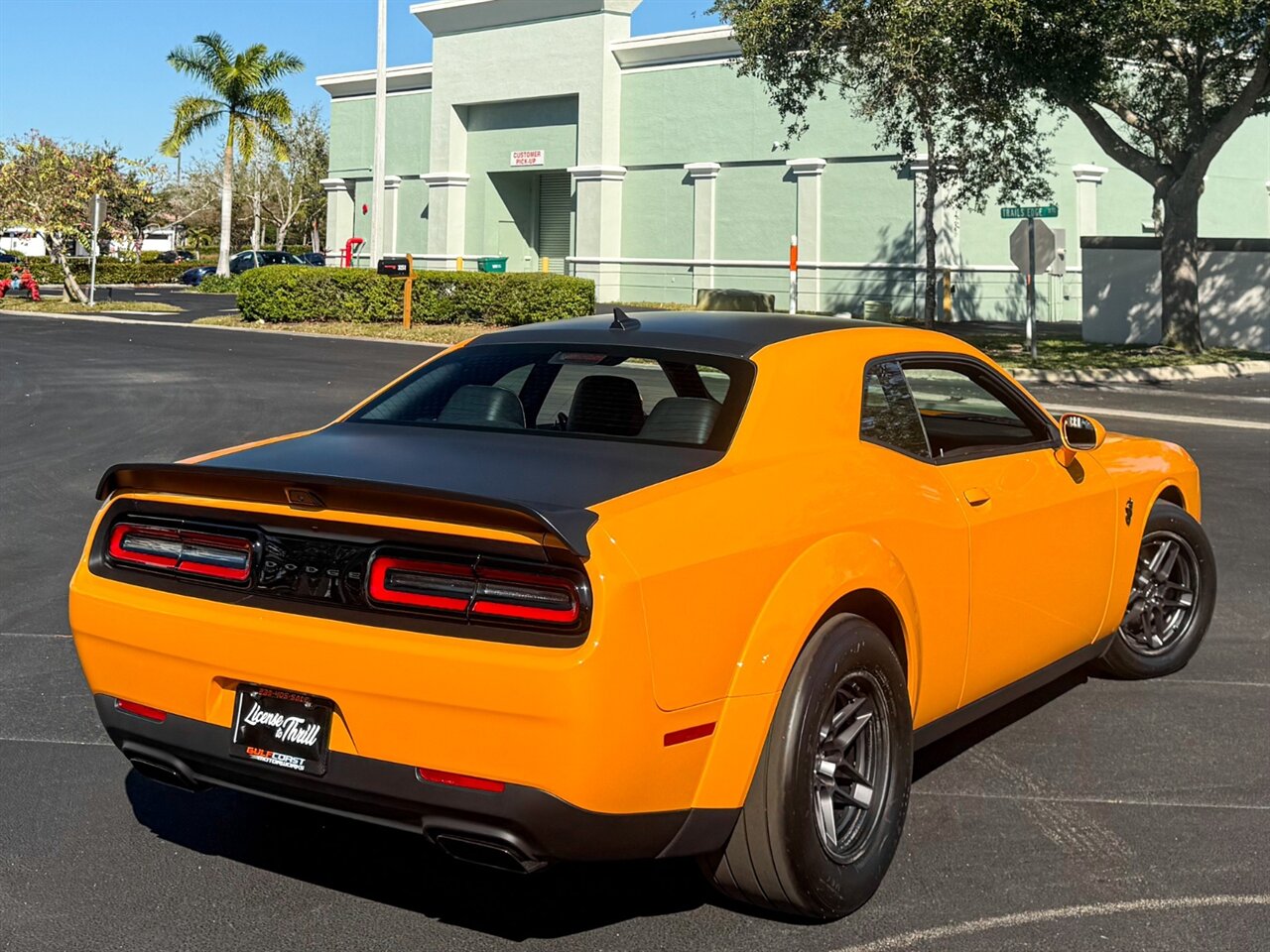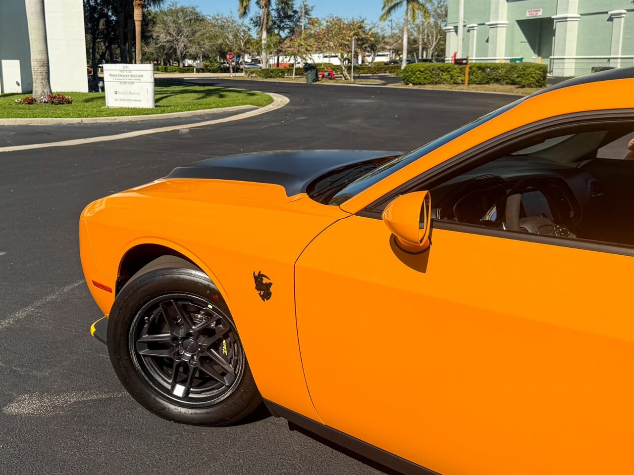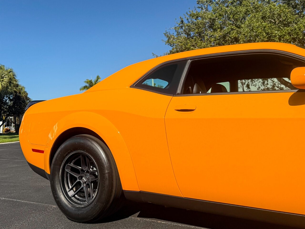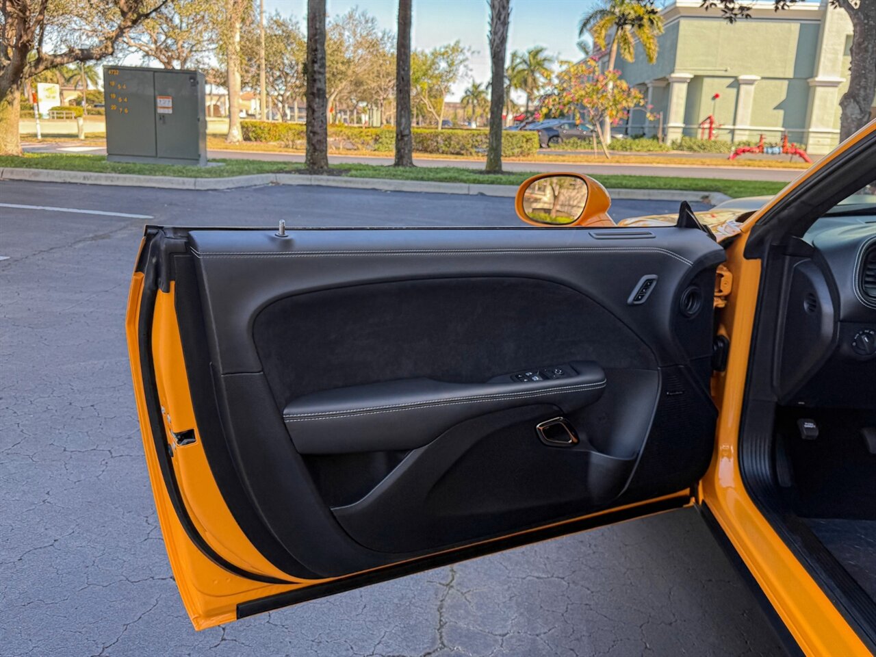 Cream Sickle Exterior Paint with Black Alcantara and Laguna170 interior. Only 28 Miles! SRT Rear Widebody, 170 Satin Black Hood / Roof / Decklid Graphic, Real Carbon Fiber Interior Accents.