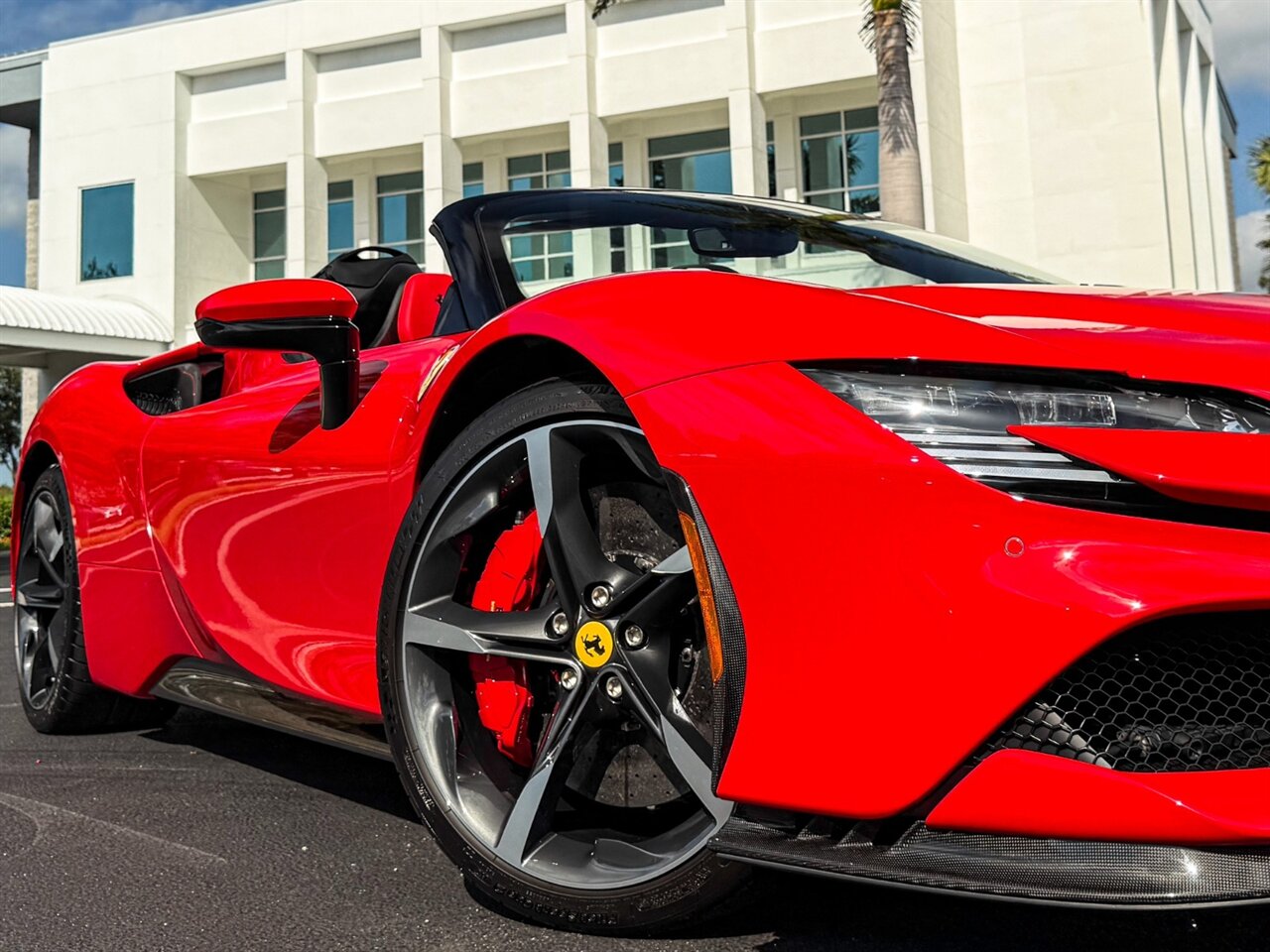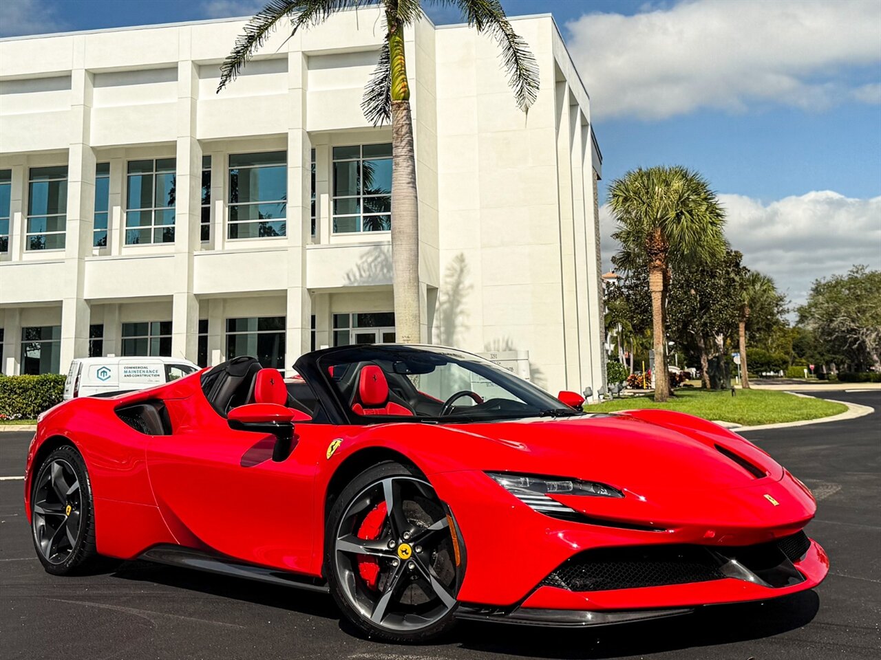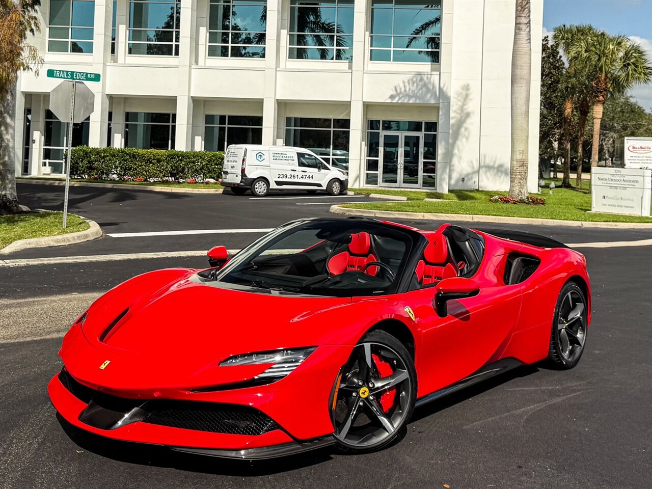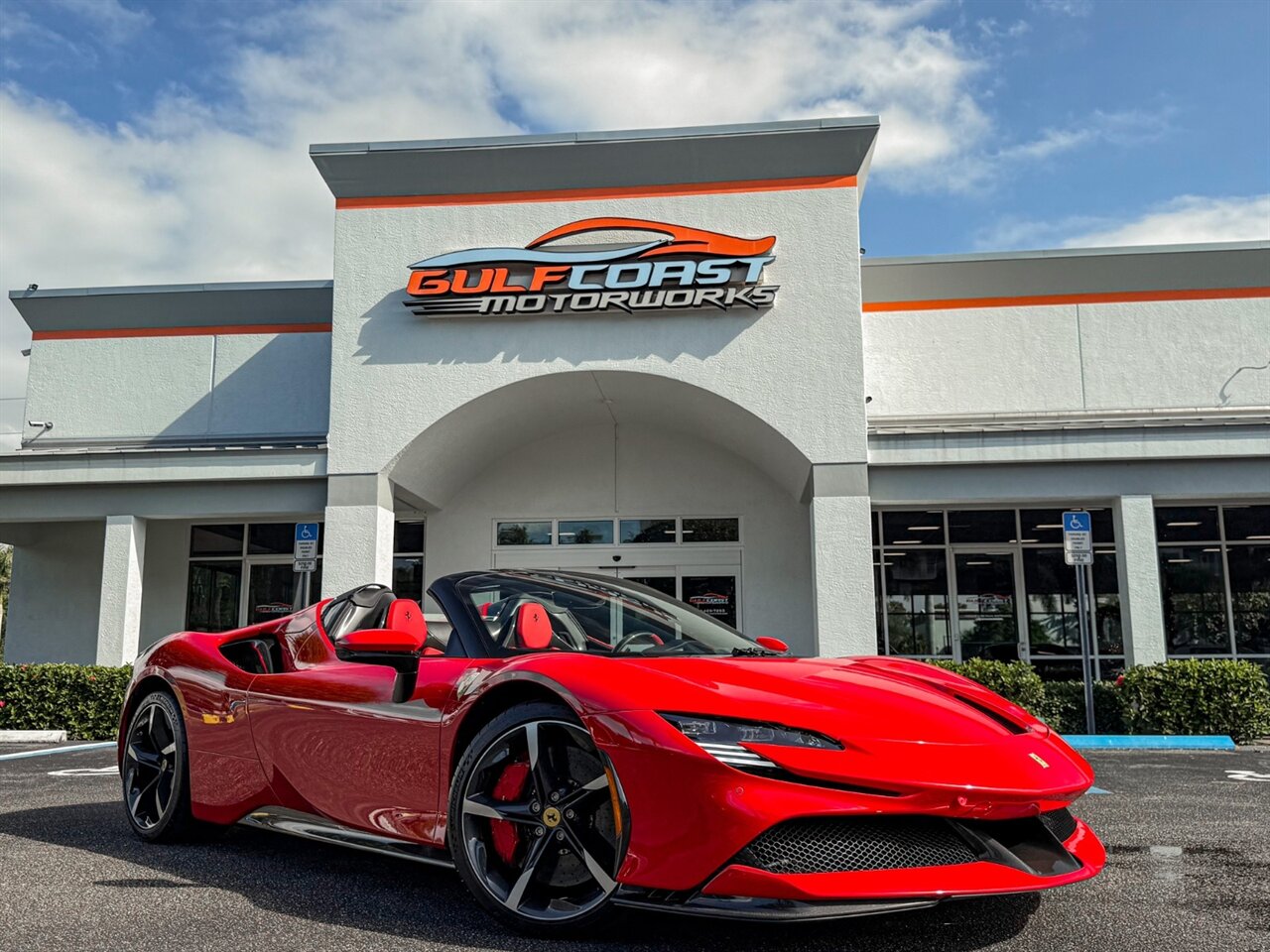 2023 Ferrari SF90 Spider. Rosso Corsa Exterior with Rosso Interior. Features Include: 986 Horsepower Combined Output Twin Turbo 3.9L V8 Engine e4WD PHEV, 7.9 kWh Lithium Ion Battery, Eight-Speed F1 Dual-Clutch Automatic Transmission, F1-TRAC Traction Control/E-Diff 3, SCME-FrS Magnetorheological Dampers, 20" Diamond Polished, Forged Wheels, CCM-Carbon Ceramic Brake System, Red Brake Calipers, 'Scuderia Ferrari' Shields, Back Radar, Carbon Fiber Side Air Splitter, Rear Diffuser In Carbon Fiber, Carbon Fiber front Spoiler, $56,240 Asseto Fiorano Package, Full LED Headlights, LED Tail Lights, LED DRLs, Front & Rear Parking Sensors, Rear Parking Camera, Advanced Front Driving Camera, Keyless Access & Ignition with Push To Start, Carbon Fiber Driver Zone + LEDs, Carbon Fiber Under Door Covers, Carbon Fiber Upper Tunnel Trim, Carbon Fiber Dashboard Inserts, Horse Stitched on Headrest, Leather Wrapped Multi-functioning Steering Wheel, Black Interior Inserts, SiriusXM Radio Capable, Smartphone Integration, Bluetooth Phone & Audio, Navigation, Dual Zone Automatic Climate Control. Priced at Only $579,995. Financing and leasing available. We ship worldwide. We pay top dollar for lightly used sports cars, Call or text Our Product Specialists today at 239-522-2262 or email at sales@gcmworks.com. Fees and Taxes: $1199.00 Doc Fee on all Purchases. Out of state buyers are responsible for all state, county, city taxes and fees, as well as title/registration fees in the state that the vehicle will be registered.