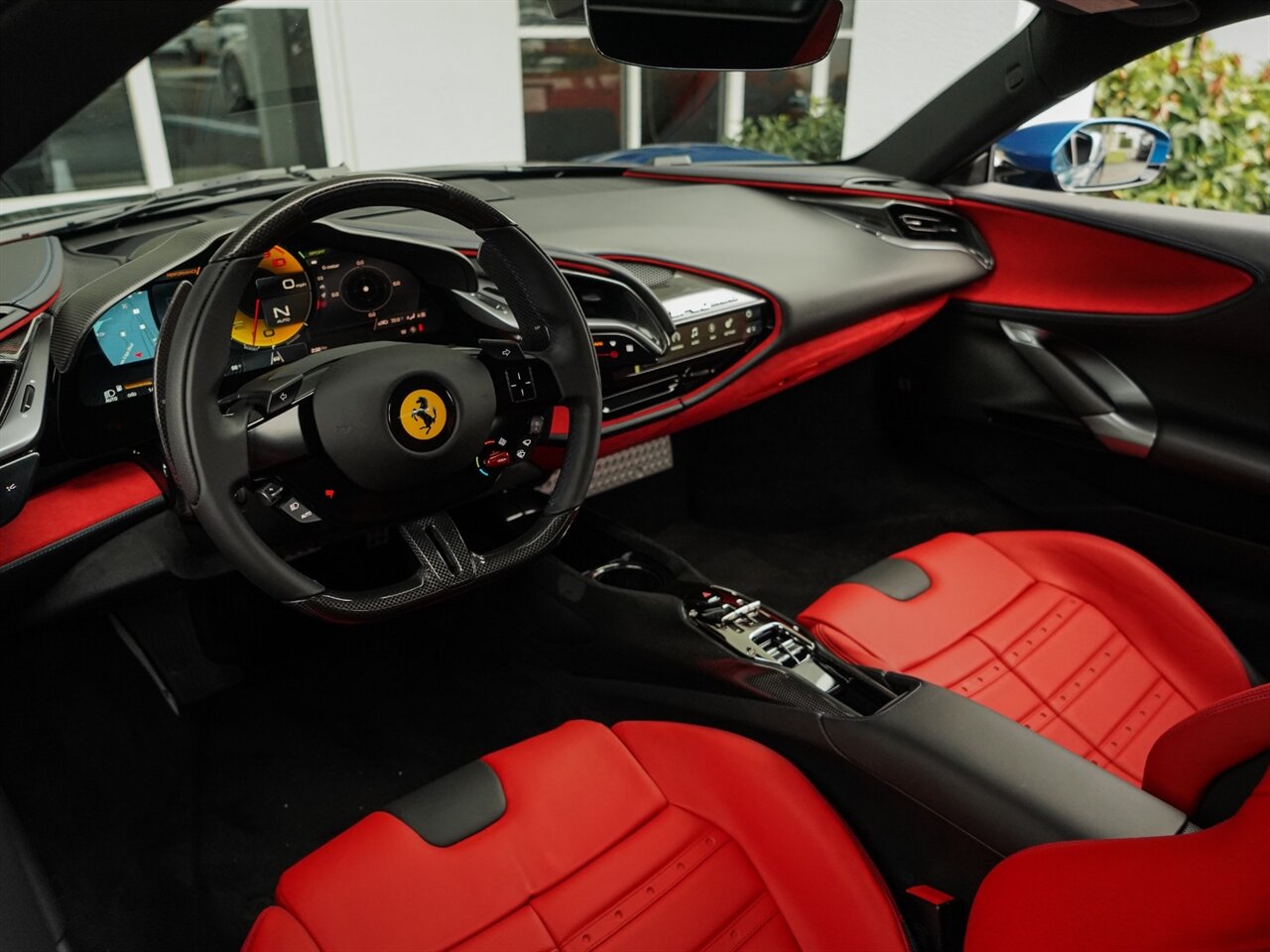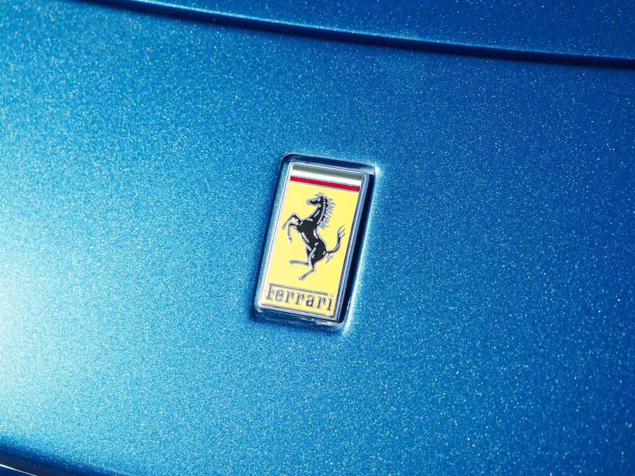 Blu Abu Dhabi Metallic Exterior with Rosso Ferrari Leather Interior. Only 146 Miles! F1-TRAC Traction Control/E-Diff 3, Carbon Fiber Front & Rear Bumpers, Carbon Fiber Driver Zone + LEDs, JBL Audio.
