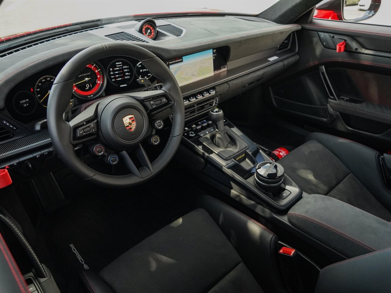 Guards Red Exterior with Black Leather & Race-Tex w/Red Stitching Interior. Only 335 Miles! Weissach Package! Carbon Ceramics, Active Aero, Carbon Fiber In & Out, Race Seats, Bose Audio.