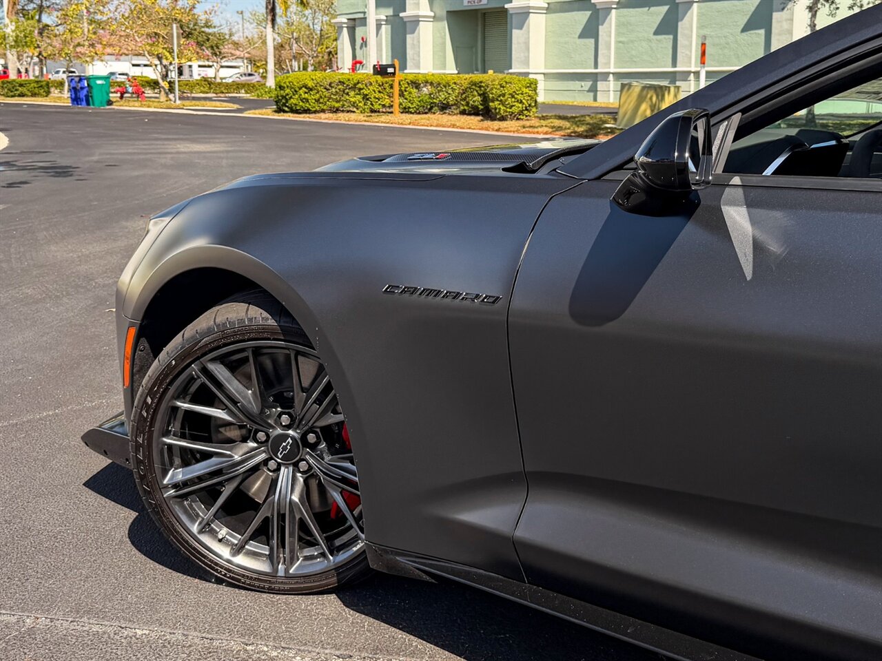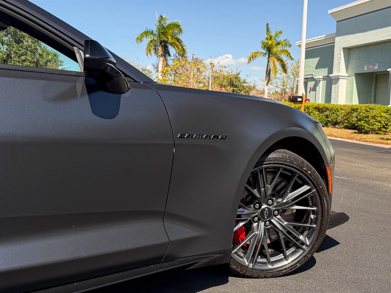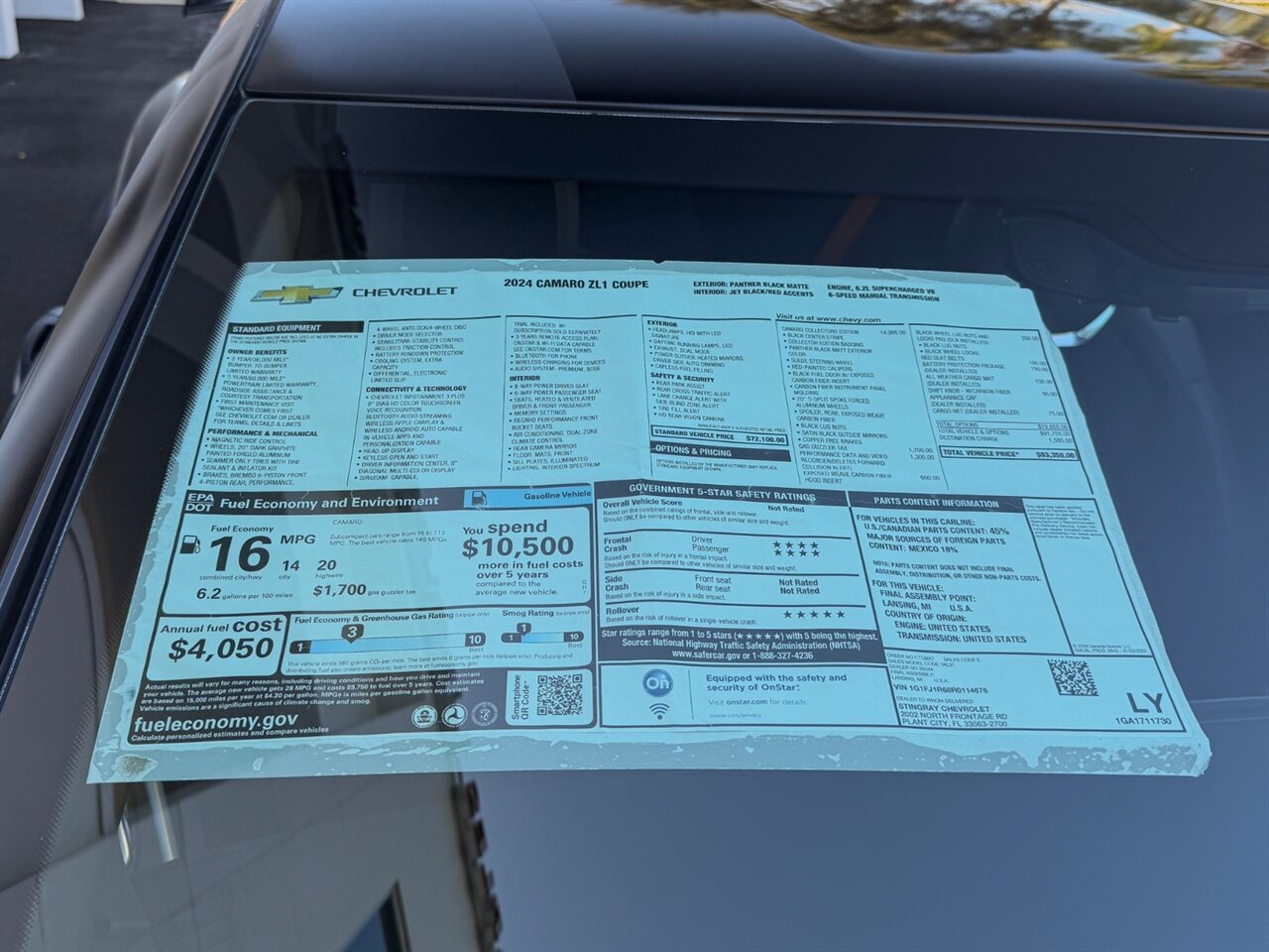 2024 Chevrolet Camaro ZL1. Panther Black Matte Exterior with Jet Black w/Red Accent Interior. Features Include: 650 Horsepower Supercharged 6.2L V8 Engine, 6 Speed Manual Transmission, Red Brake Calipers, 20" Multi-Spoke Forged Aluminum Wheels, Black Panther Collectors Edition, Black Center Stripe, Collector Edition Badging, Black Fuel Door w/Exposed Carbon Fiber Insert, Rear Spoiler in Carbon Fiber, Satin Black Outside Mirrors, Exposed Carbon Fiber Hood Insert, Dual Mode Exhaust, LED Tail Lights, HID Headlamps, LED DRLs, Keyless Open with Push Button Ignition, Illuminated Sill Plates, Recaro Performance Front Bucket Seats, Suede/Leather Interior Trim, Suede Multifunctional Steering Wheel, Carbon Fiber Instrument Panel Molding, Red Seat Belts, Shift Knob w/ Carbon Fiber, Performance Data Video Recorder, Head-Up Display, Chevrolet Infotainment 3 Premium System, 8" Touchscreen, Premium Bose Audio System, Wireless Android Auto, Wireless Apple CarPlay, Driver Mode Selector, Dual Zone Automatic Climate Control, Rear Camera Mirror, Lane Change Alert, Rear Park Assist, Rear Vision Camera, Wi-Fi Hotspot, Wireless Charging, Smartphone Integration, Bluetooth, Navigation, SiriusXM. Call For Price. Financing and leasing available. We ship worldwide. We pay top dollar for lightly used sports cars, Call or text our Product Specialist today at 239-522-2262 or email us at sales@gcmworks.com. Fees and Taxes: $1199.00 Doc Fee on all Purchases. Out of state buyers are responsible for all state, county, city taxes and fees, as well as title/registration fees in the state that the vehicle will be registered.