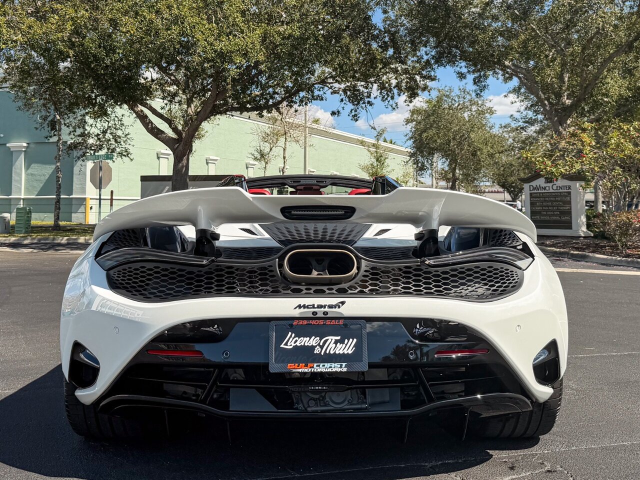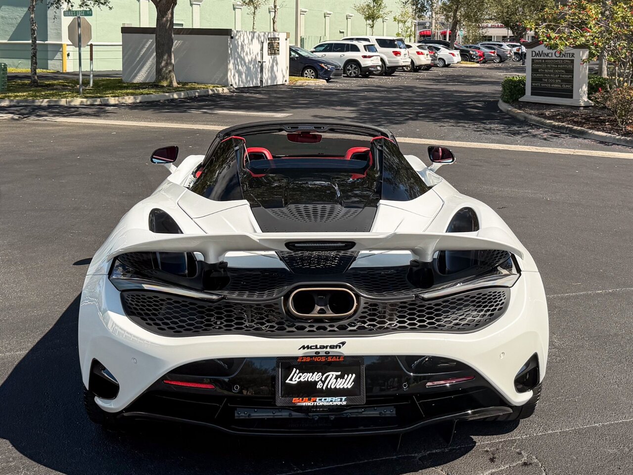 2025 McLaren 750S Spider. Silica White Exterior with Red Leather Interior. Features Include: 740 Horsepower Twin Turbo 4.0L V8 Engine, Seven-Speed Dual Clutch Seamless Shift Automatic Transmission, Carbon Ceramic Brakes, Brake Calipers in Red, 19" Front & 20" Rear 10 Spoke Wheels, MSO Bespoke Front Fender Louvers, MSO Bespoke Front LTR Exit, Front Lift, Active Rear Spoiler, Americas Accessories Pack, Gloss Black Tonneau, Sports Exhaust, Gloss Body Color Upper Part of Rear Bumper,Lower Rear Bumper in Gloss Black, Headlight Surround In Body Color, Carbon Fiber Painted in Body Color on Front Fenders and Louvers, rear Spoiler in Body Color, Black Pack, Hood in Body Color, Front Splitter in Gloss Black, LED Headlights & Tail Lights, LED DRLs, Front & Rear Parking Sensors, Power Folding Outside Mirrors, Soft Close Door Latching, Digital Instrument Cluster, Selectable Drive Modes, Launch Control, Red Seatbelts, Shift Paddles, Red Leather Steering Wheel, MSO Bespoke Interior, MSO Bespoke Contrast Stitch, Red Leather Interior Trim, Touchscreen Infotainment with Bowers & Wilkins Audio System, 360 Degree Park Assist, Dual Zone Automatic Climate Control, Smartphone Integration, Navigation, Bluetooth. Priced at Only $359,995. Financing available. We ship worldwide. We pay top dollar for lightly used sports cars! Call or text our Product Specialists today at 239-522-2262 or email us at sales@gcmworks.com. Fees and Taxes: $1199.00 Doc Fee on all Purchases. Out of state buyers are responsible for all state, county, city taxes and fees, as well as title/registration fees in the state that the vehicle will be registered.