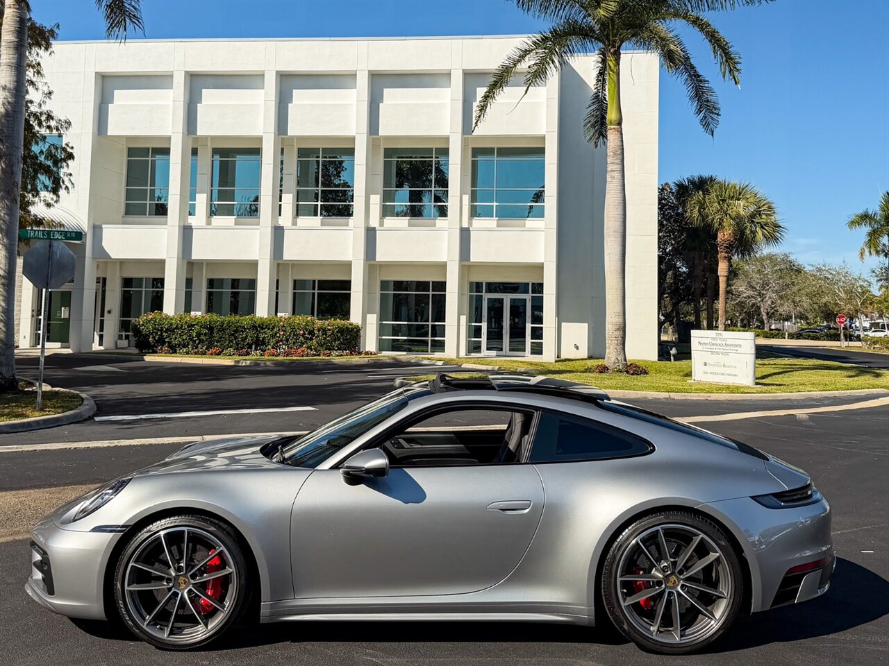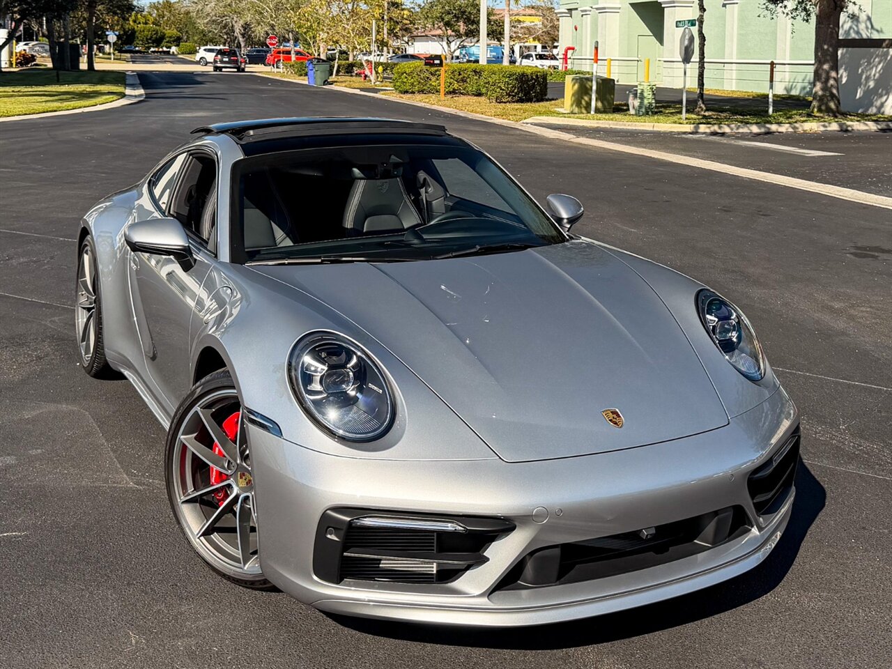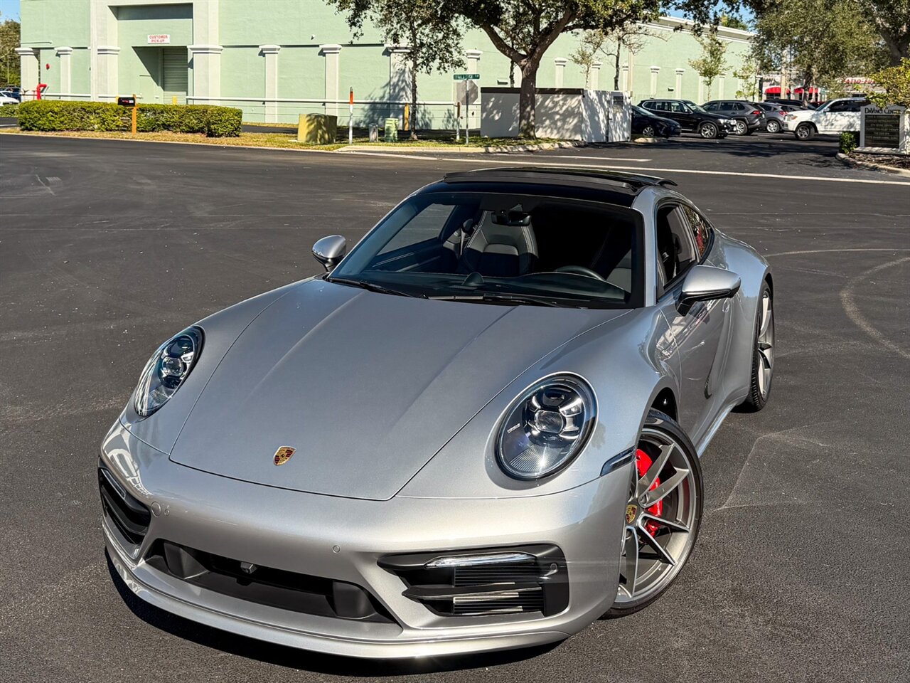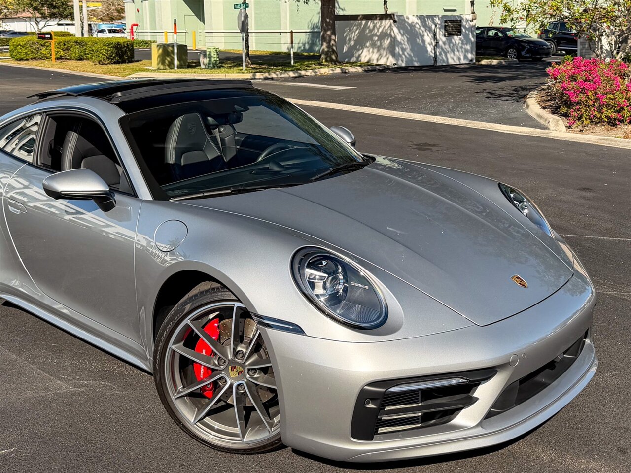 2024 Porsche 911 Carrera S. Silver Exterior with Black Interior. Features Include: 443 Horsepower Twin Turbo 3.0L H6 Engine,8-speed Porsche (PDK) dual-clutch automatic transmission, 20" Front & 21" Rear In a Silver Finish, Crossed Drilled Break Rotors, Brake Calipers in Red, Sports Exhaust System, Tailpipes In Silver, Sport Chrono Package, Front Lift, Electric Tilt & Slide Glass Sunroof, Power Folding Outside Mirrors, Keyless Entry & Start, 911 Carrera S Door-Sill Guards, Leather Wrapped Multifunctional Steering Wheel, Shift Paddles, Seat Ventilation, Power Sport Seats (14 Way) with Memory Package, Porsche Crest on Headrest, Digital Gauges, Selectable Drive Modes, Touchscreen Infotainment, Bose Sound System, Surround View Camera System, Navigation, Smartphone Integration, Bluetooth, HomeLink. Priced at only $169,995. Financing and leasing available. We ship worldwide. We pay top dollar for lightly used sports cars, Call or text our Product Specialist today at 239-522-2262 or email at sales@gcmworks.com. Fees and Taxes: $1199.00 Doc Fee on all Purchases. Out of state buyers are responsible for all state, county, city taxes and fees, as well as title/registration fees in the state that the vehicle will be registered.