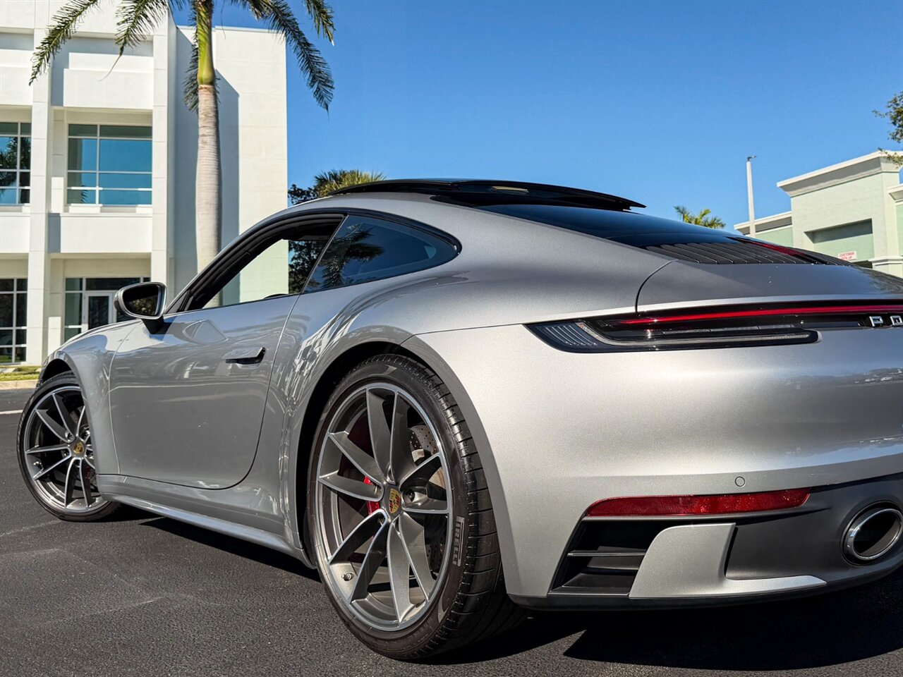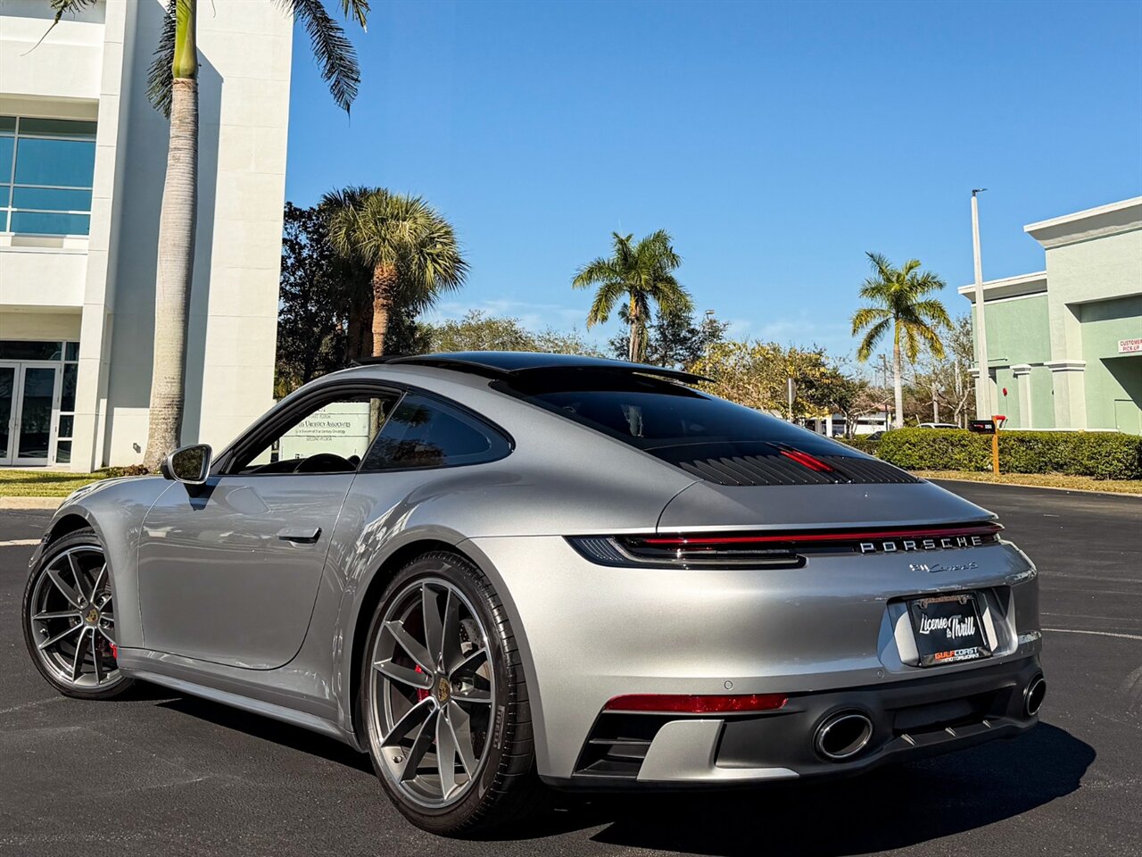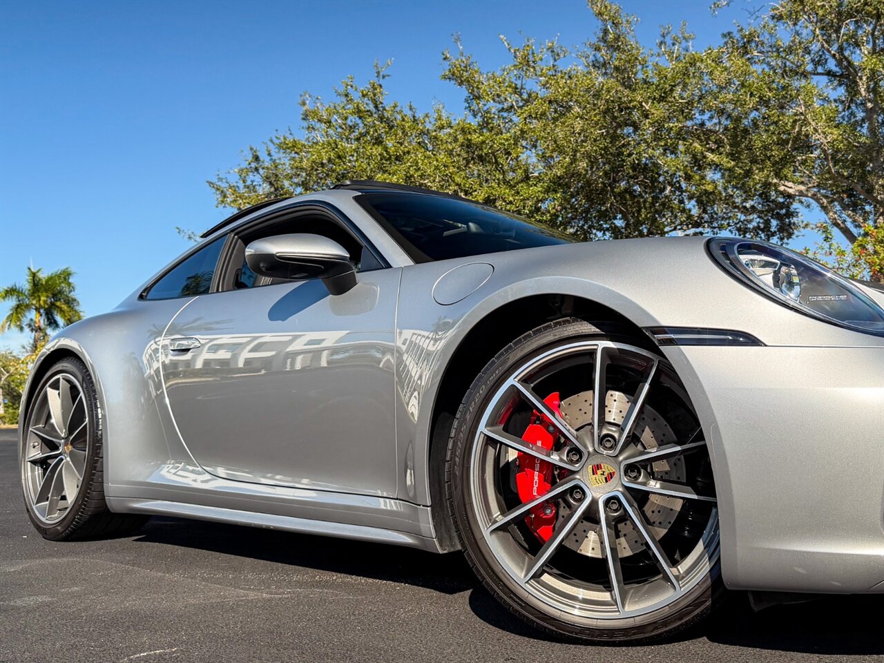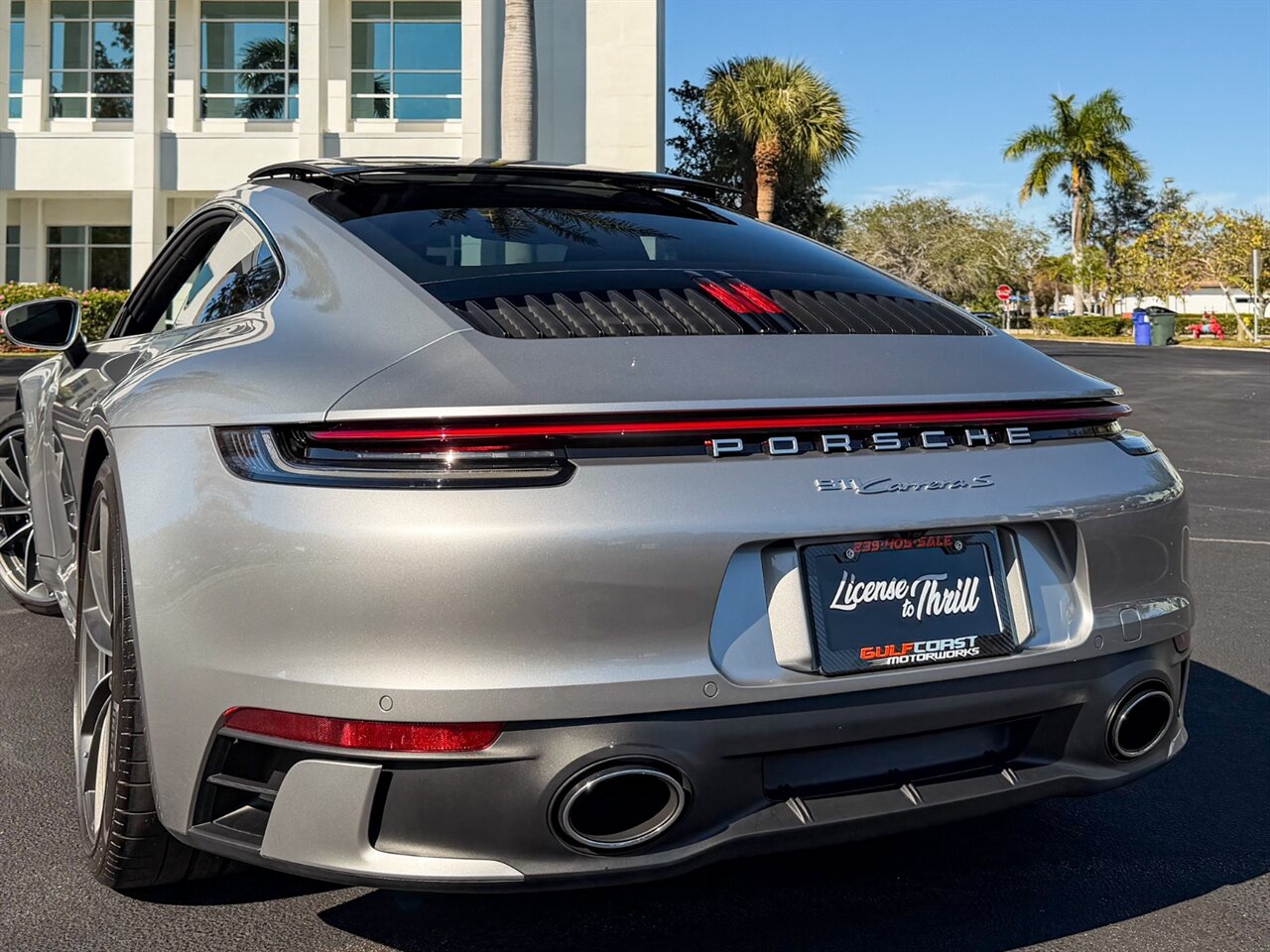 2024 Porsche 911 Carrera S. Silver Exterior with Black Interior. Features Include: 443 Horsepower Twin Turbo 3.0L H6 Engine,8-speed Porsche (PDK) dual-clutch automatic transmission, 20" Front & 21" Rear In a Silver Finish, Crossed Drilled Break Rotors, Brake Calipers in Red, Sports Exhaust System, Tailpipes In Silver, Sport Chrono Package, Front Lift, Electric Tilt & Slide Glass Sunroof, Power Folding Outside Mirrors, Keyless Entry & Start, 911 Carrera S Door-Sill Guards, Leather Wrapped Multifunctional Steering Wheel, Shift Paddles, Seat Ventilation, Power Sport Seats (14 Way) with Memory Package, Porsche Crest on Headrest, Digital Gauges, Selectable Drive Modes, Touchscreen Infotainment, Bose Sound System, Surround View Camera System, Navigation, Smartphone Integration, Bluetooth, HomeLink. Priced at only $169,995. Financing and leasing available. We ship worldwide. We pay top dollar for lightly used sports cars, Call or text our Product Specialist today at 239-522-2262 or email at sales@gcmworks.com. Fees and Taxes: $1199.00 Doc Fee on all Purchases. Out of state buyers are responsible for all state, county, city taxes and fees, as well as title/registration fees in the state that the vehicle will be registered.
