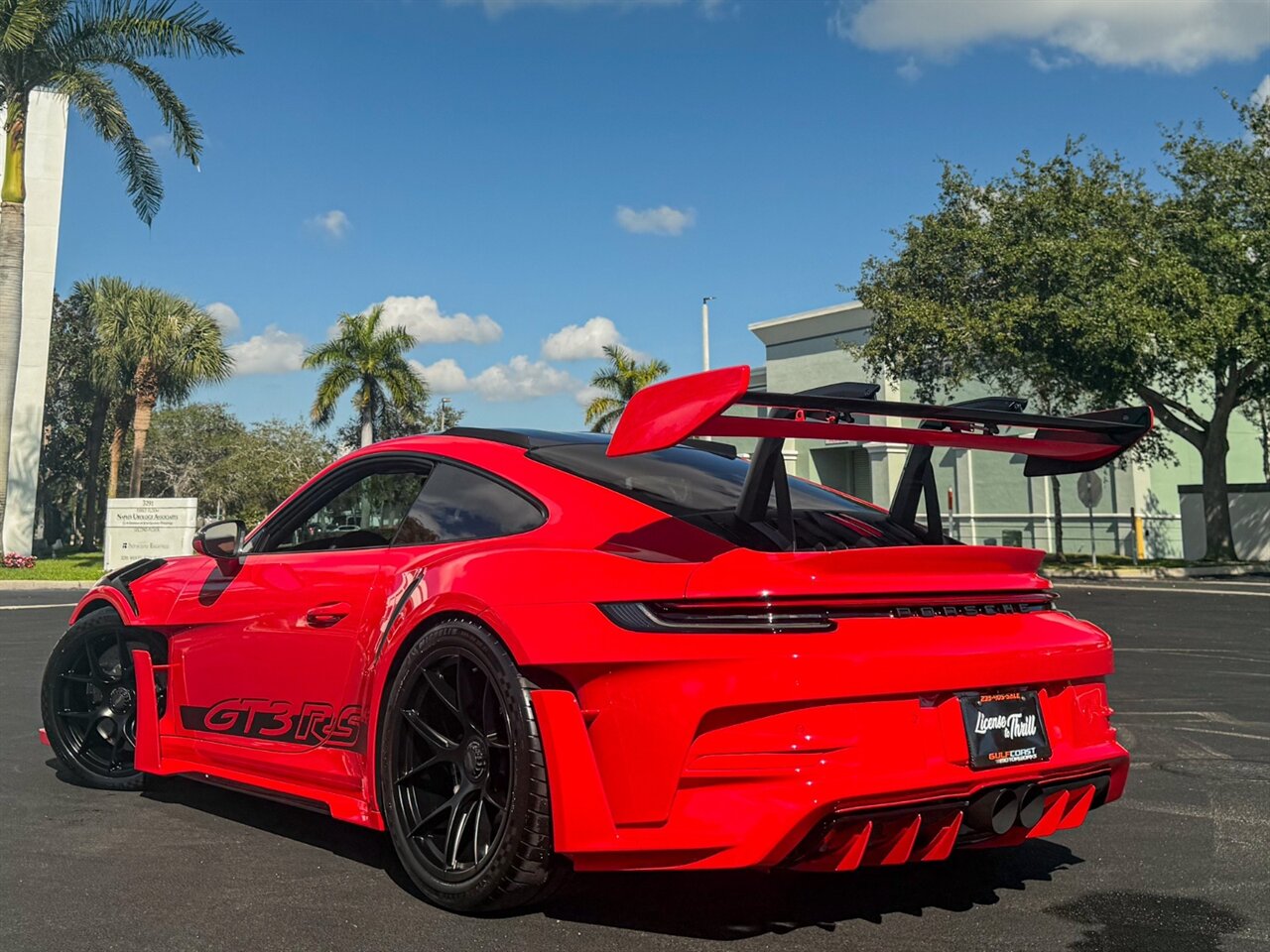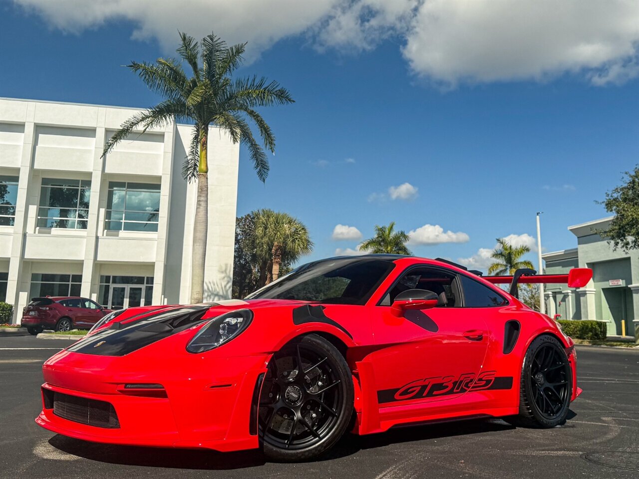 2024 Porsche 911 GT3 RS Weissach Package. Guards Red Exterior with Leather/Race-Tex Black w/ Guards Red Stitching Interior. Features Include: 518 Horsepower NA 4.0L H6 Engine, Seven-Speed Automatic Dual-Clutch Transmission, 20" Front & 21" Rear GT3 RS Forged Lightweight Magnesium Centerlock Wheels in Black, PCCB - Porsche Carbon Ceramic Brakes, Black Brake Calipers, Full Ryft Exhaust, Weissach Package, Paint Matched Exterior Plastic Pieces, Active Aero High Wing, Front Lift, LED Headlights in Black with Porsche Dynamic Light System(PDLS), Clear LED Exclusive Design Taillights, LED DRLs, Carbon Fiber Power Adjustable Outside Mirrors, Carbon Fiber Roof, Rear ParkAssist, Rear Parking Sensors & Back-Up Camera, Keyless Entry & Ignition, Illuminated Carbon Fiber GT3 RS Door-Sill Guards, Leather Wrapped Multifunction Steering Wheel, Selectable Drive Modes, Weissach RS Embroidered Headrests, Red Seat Belts, Guards Red Accent Stitching, Leather Race Tex Interior Trim, Central Tachometer in Guards Red, Chrono Stopwatch Dial in Guards Red, Touchscreen Infotainment Display, Bose Surround Sound System, Navigation, Smartphone Integration, Bluetooth. Priced at Only $409,995.00. Financing and leasing available. We ship worldwide. We pay top dollar for lightly used sports cars, Call or text our Product Specialist today at 239-522-2262 or email us at sales@gcmworks.com. Fees and Taxes: $1199.00 Doc Fee on all Purchases. Out of state buyers are responsible for all state, county, city taxes and fees, as well as title/registration fees in the state that the vehicle will be registered.