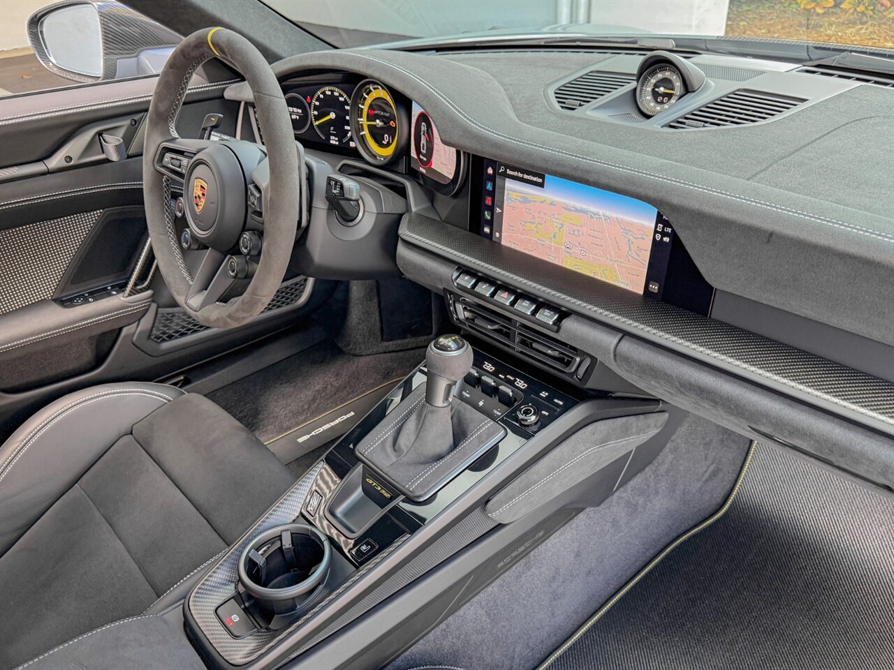 Arctic Gray Exterior with Black Leather & Race-Tex w/Silver Stitching Interior. Only 771 Miles! Porsche Carbon Ceramic Brakes, Carbon Fiber Roof,Illuminated Carbon Fiber GT3 RS Door-Sill Guards,
