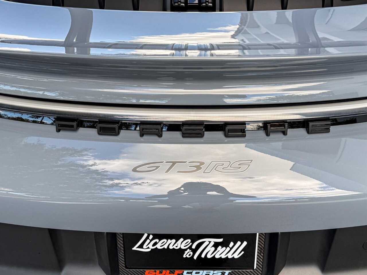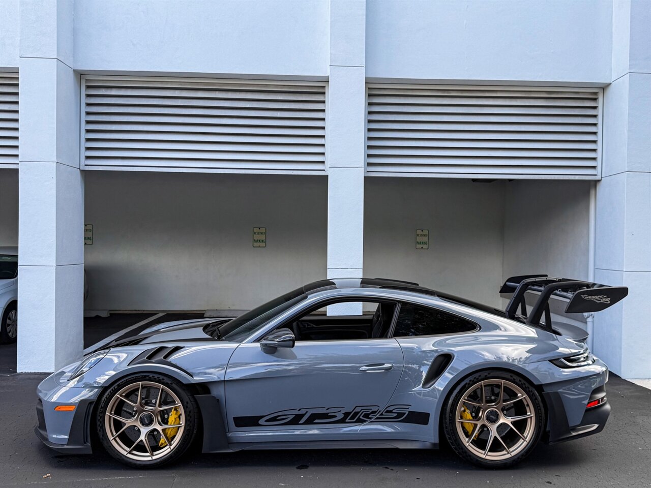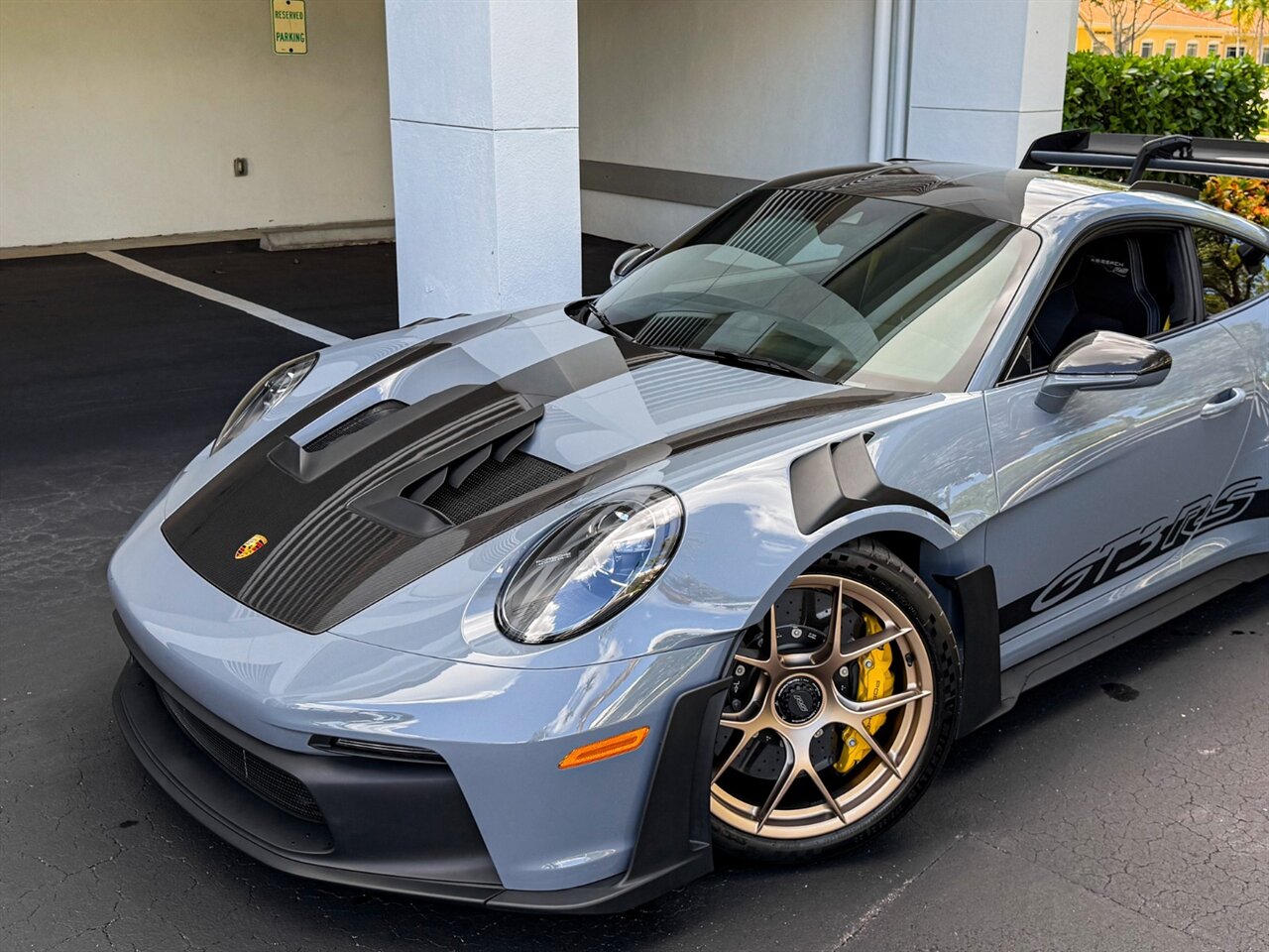 2024 Porsche 911 GT3 RS Weissach Package. Ice Grey Metallic Exterior with Black Leather & Race-Tex w/Blue Stitching Interior. Features Include: 518 Horsepower NA 4.0L H6 Engine, Seven-Speed Automatic Dual-Clutch Transmission, 20" Front & 21" Rear GT3 RS Forged Lightweight Magnesium Centerlock Wheels in Gold, PCCB - Porsche Carbon Ceramic Brakes, Yellow Brake Calipers, Central Twin-Tube Tailpipe Exhaust, Active Aero High Wing, Front Lift, LED Headlights in Black with Porsche Dynamic Light System(PDLS), Clear LED Exclusive Design Taillights, LED DRLs, Carbon Fiber Power Adjustable Outside Mirrors, Carbon Fiber Roof, Rear ParkAssist, Rear Parking Sensors & Back-Up Camera, Keyless Entry & Ignition, Illuminated Carbon Fiber GT3 RS Door-Sill Guards, Alcantara Wrapped Multifunction Steering Wheel, Selectable Drive Modes, Weissach RS Embroidered Headrests, Carbon Fiber Interior Trim, Yellow Seat Belts, Race-Tex Dashboard, Race-Tex Headliner, Race-Tex Interior Trim, Silver Accent Stitching, Fire Extinguisher, Touchscreen Infotainment Display, Bose Surround Sound System, Navigation, Smartphone Integration, Bluetooth. Priced at Only $424,995.00. Financing and leasing available. We ship worldwide. We pay top dollar for lightly used sports cars, Call or text our Product Specialist today at 239-522-2262 or email us at sales@gcmworks.com. Fees and Taxes: $1199.00 Doc Fee on all Purchases. Out of state buyers are responsible for all state, county, city taxes and fees, as well as title/registration fees in the state that the vehicle will be registered.