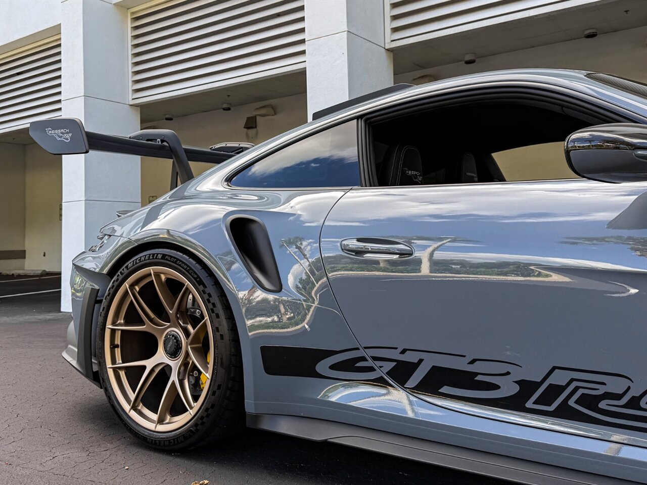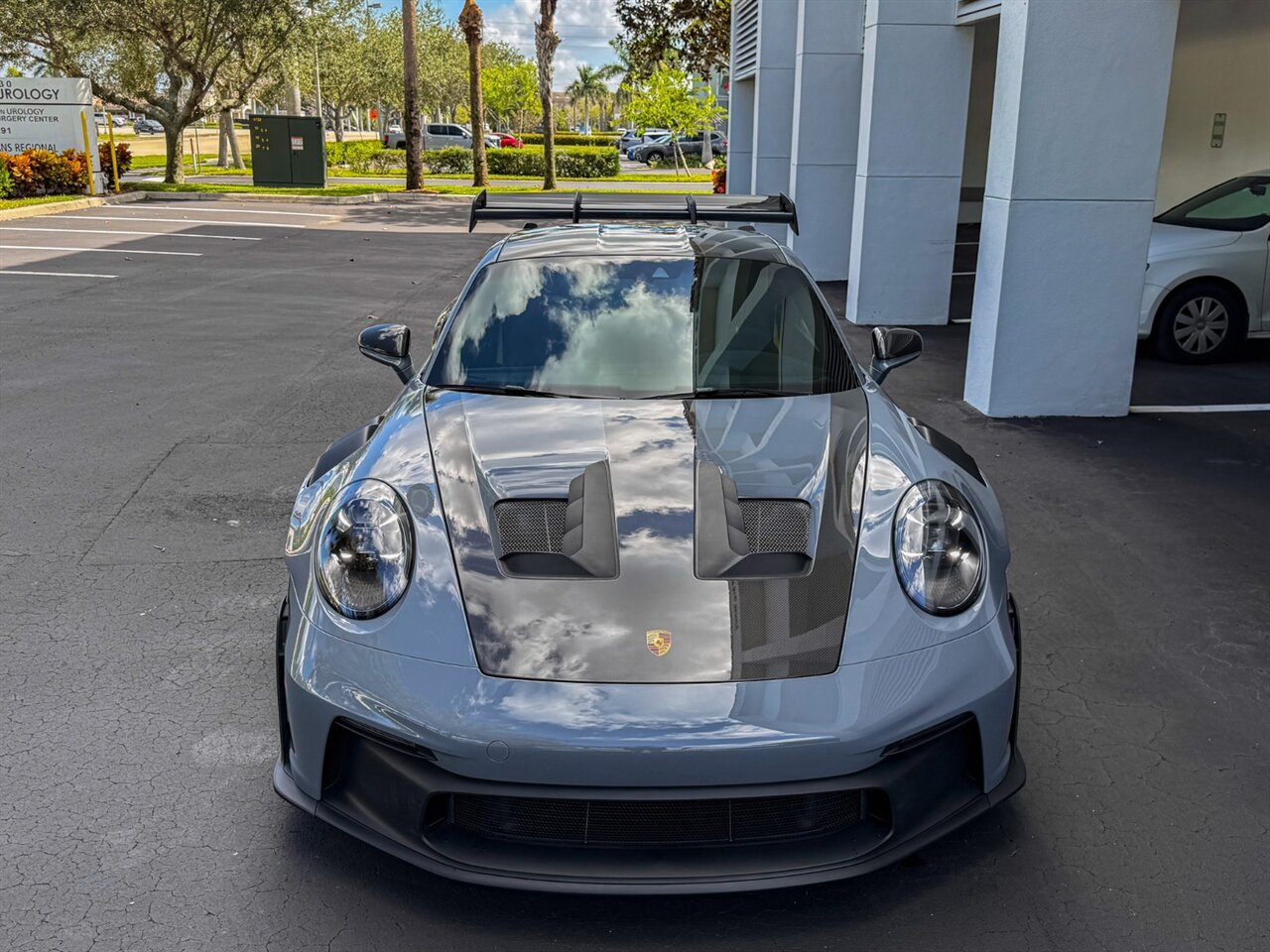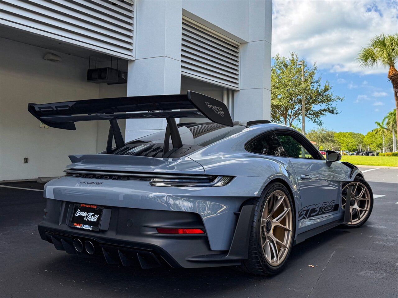 2024 Porsche 911 GT3 RS Weissach Package. Ice Grey Metallic Exterior with Black Leather & Race-Tex w/Blue Stitching Interior. Features Include: 518 Horsepower NA 4.0L H6 Engine, Seven-Speed Automatic Dual-Clutch Transmission, 20" Front & 21" Rear GT3 RS Forged Lightweight Magnesium Centerlock Wheels in Gold, PCCB - Porsche Carbon Ceramic Brakes, Yellow Brake Calipers, Central Twin-Tube Tailpipe Exhaust, Active Aero High Wing, Front Lift, LED Headlights in Black with Porsche Dynamic Light System(PDLS), Clear LED Exclusive Design Taillights, LED DRLs, Carbon Fiber Power Adjustable Outside Mirrors, Carbon Fiber Roof, Rear ParkAssist, Rear Parking Sensors & Back-Up Camera, Keyless Entry & Ignition, Illuminated Carbon Fiber GT3 RS Door-Sill Guards, Alcantara Wrapped Multifunction Steering Wheel, Selectable Drive Modes, Weissach RS Embroidered Headrests, Carbon Fiber Interior Trim, Yellow Seat Belts, Race-Tex Dashboard, Race-Tex Headliner, Race-Tex Interior Trim, Silver Accent Stitching, Fire Extinguisher, Touchscreen Infotainment Display, Bose Surround Sound System, Navigation, Smartphone Integration, Bluetooth. Priced at Only $424,995.00. Financing and leasing available. We ship worldwide. We pay top dollar for lightly used sports cars, Call or text our Product Specialist today at 239-522-2262 or email us at sales@gcmworks.com. Fees and Taxes: $1199.00 Doc Fee on all Purchases. Out of state buyers are responsible for all state, county, city taxes and fees, as well as title/registration fees in the state that the vehicle will be registered.